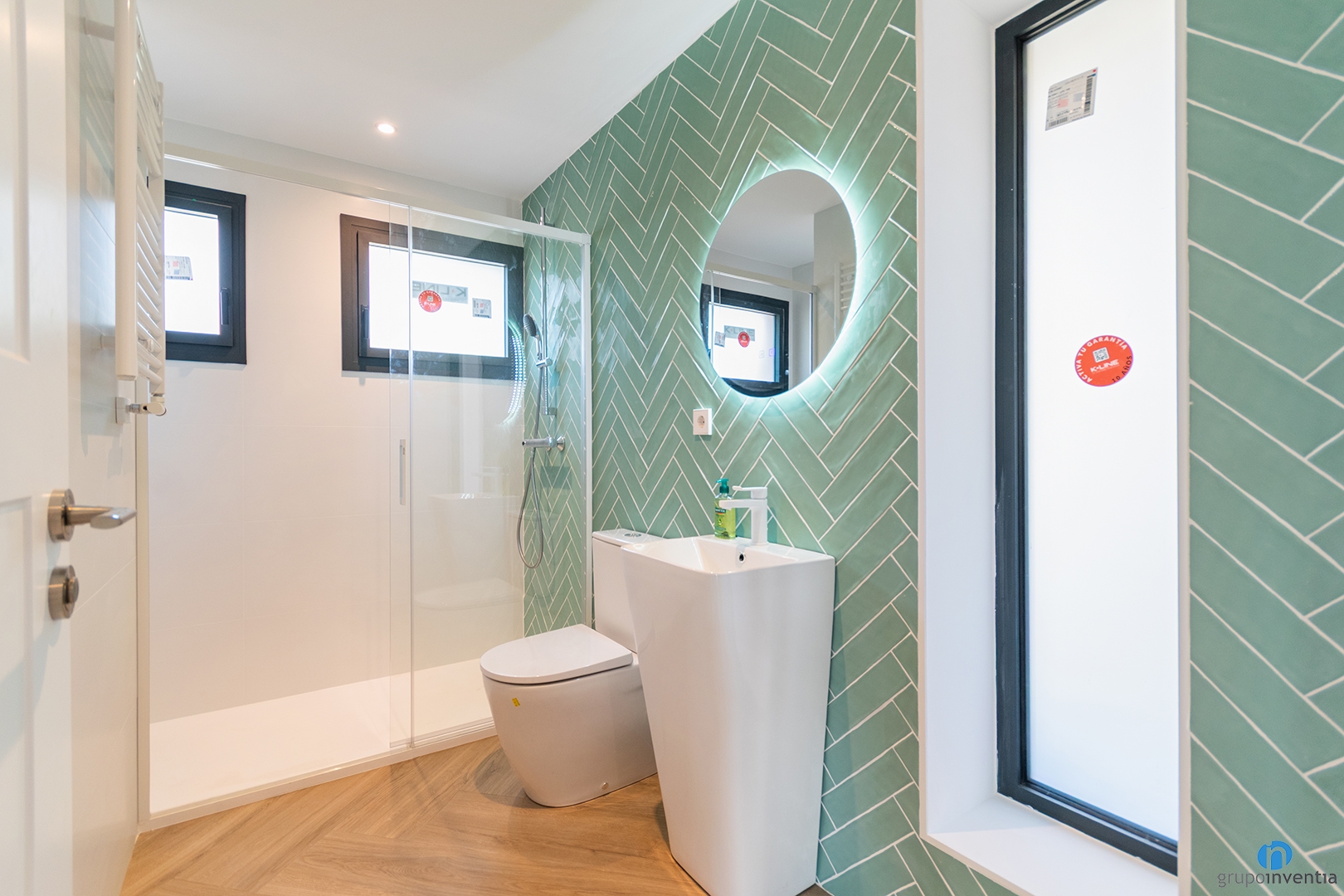 The home has three full bathrooms, each with a sink, toilet, and shower. Although they share similar equipment, they feature different designs adapted to each space. The guest bathroom stands out for its modern lines and fresh air. Its herringbone turquoise tiles bring personality and brightness. It is a perfect space to welcome visitors.