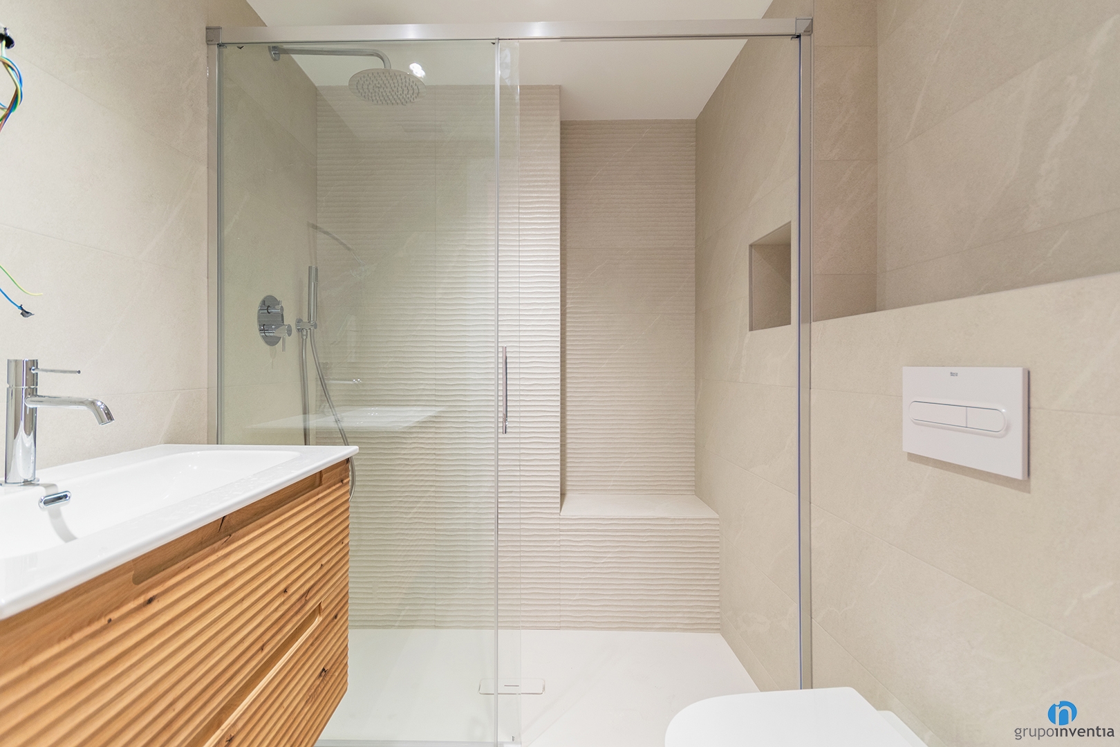 At Grupo Inventia we have completed a new full renovation in Barcelona. On this occasion, we worked on a penthouse located on Coll Street, in the La Sagrera neighborhood. We applied a contemporary design with off-white and wood finishes. The goal was to create warm, bright, and functional spaces. The result is a modern and cozy home, perfect for daily life.