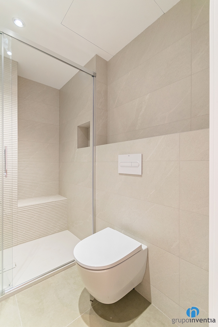 Neutral-toned tiles were used in the bathroom interior design. The flooring and walls create a sense of spaciousness and brightness. This results in a modern, relaxing bathroom in harmony with the rest of the home. This bathroom renovation is part of a very complete interior design project in Barcelona.