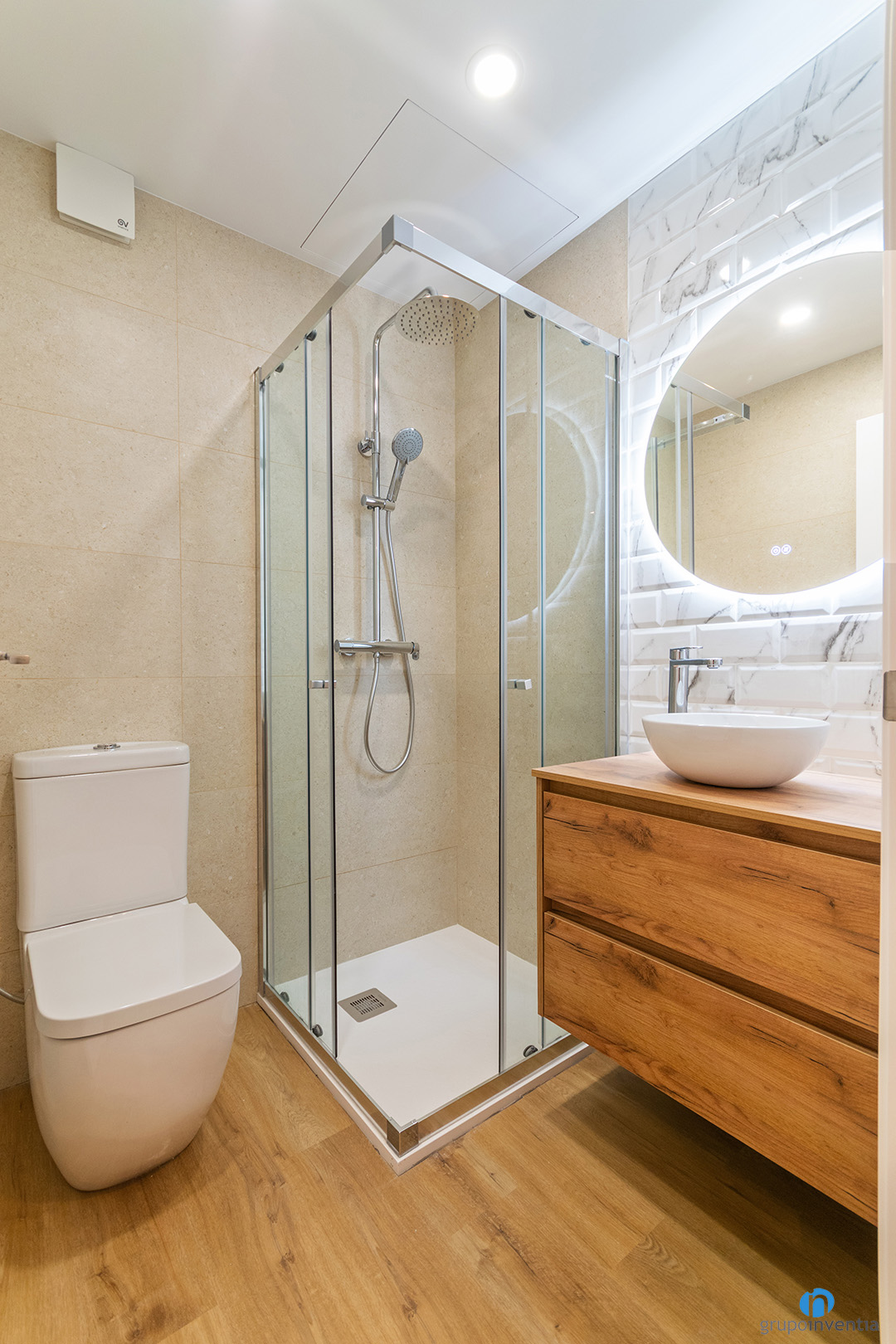 We applied a contemporary style throughout the property. Walls and ceilings were painted in neutral tones to enhance natural light. The new parquet flooring in a natural wood finish brings warmth to every room.