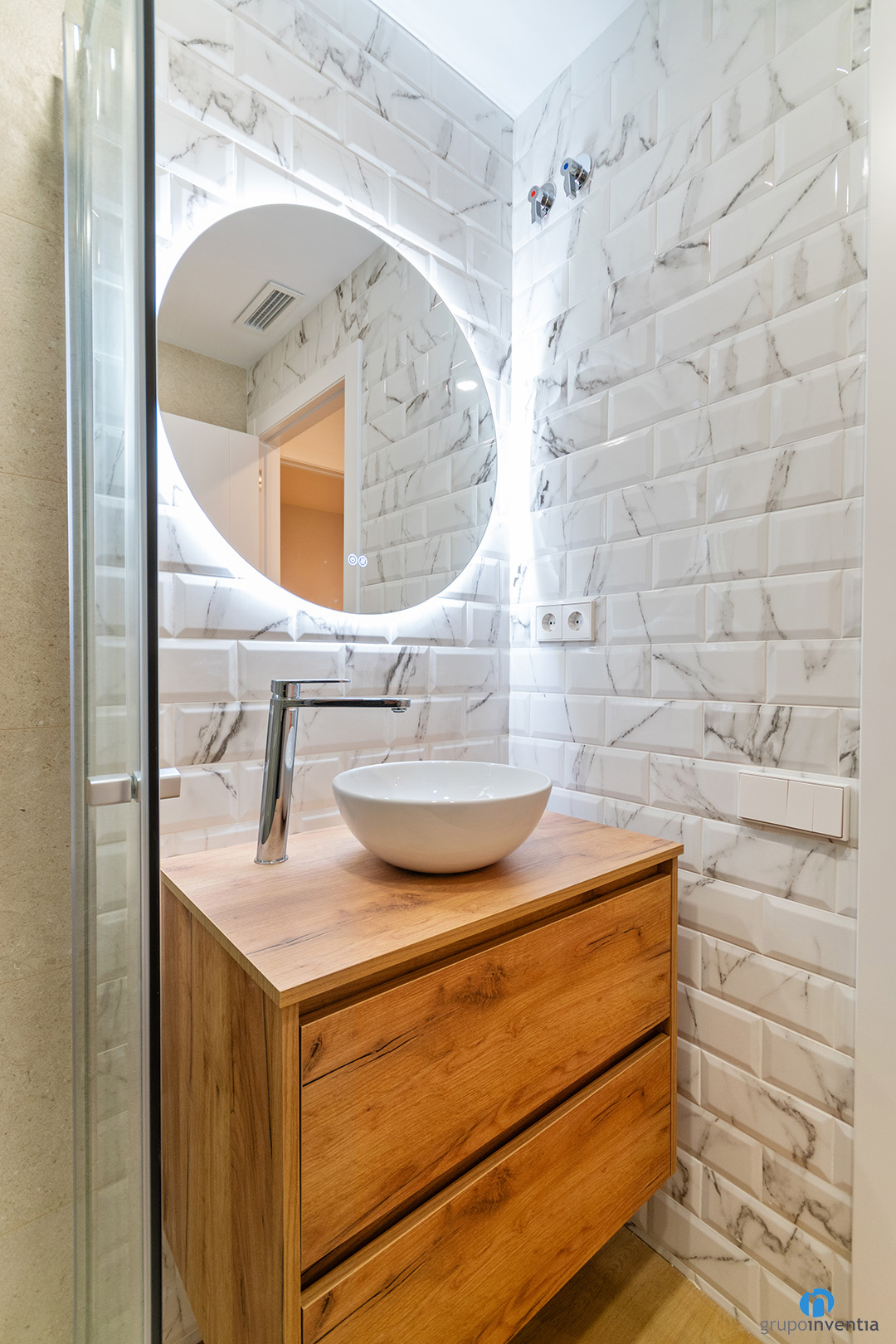 This bathroom renovation improves the home’s comfort and modern aesthetic.