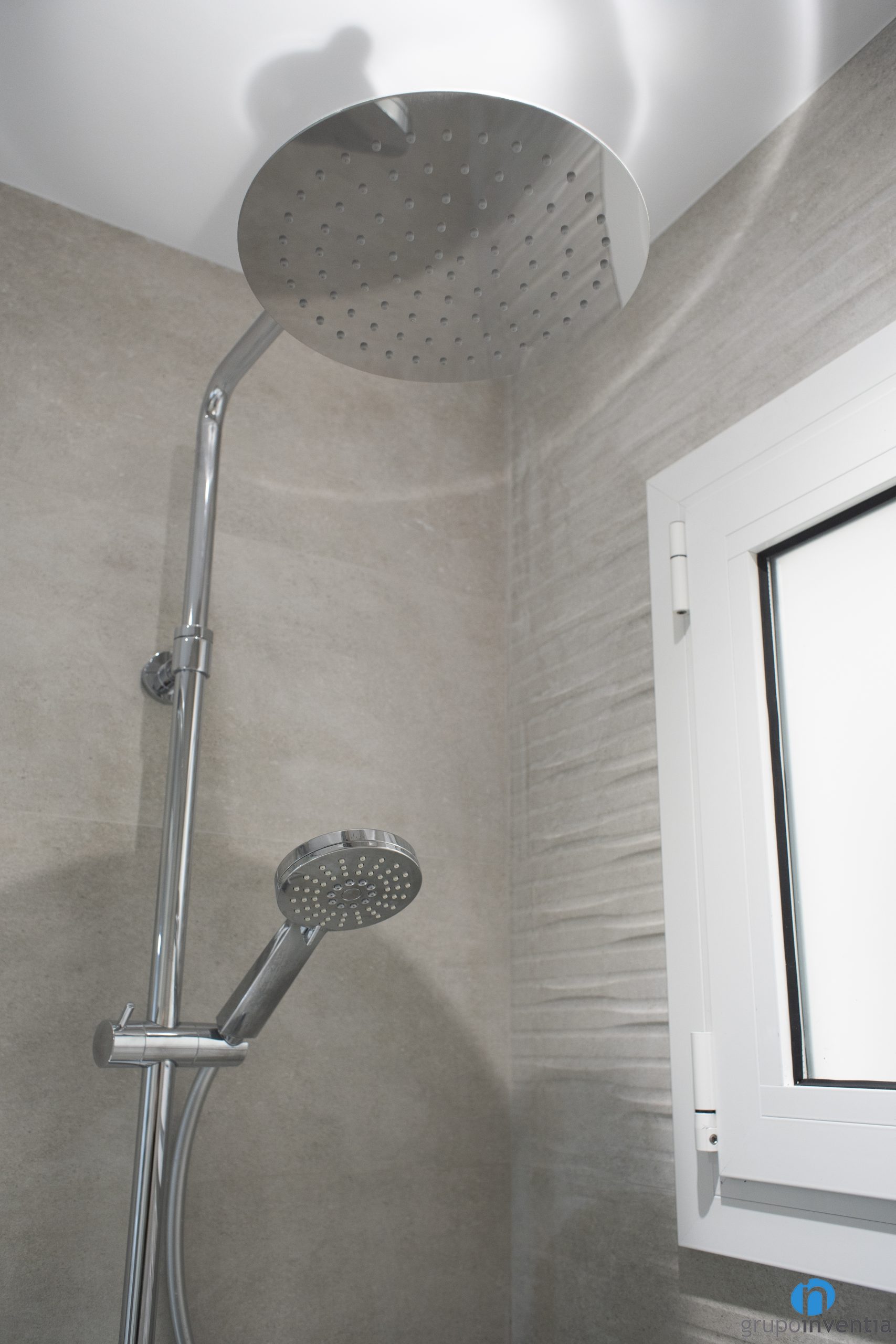 For the sanitary equipment we have installed a toilet with a piece of furniture with two drawers. We thus take advantage of the space and generate a perfect storage space. It is accompanied by a toilet with modern lines and a water area. In this we have placed a shower tray that is protected by sliding door screens.