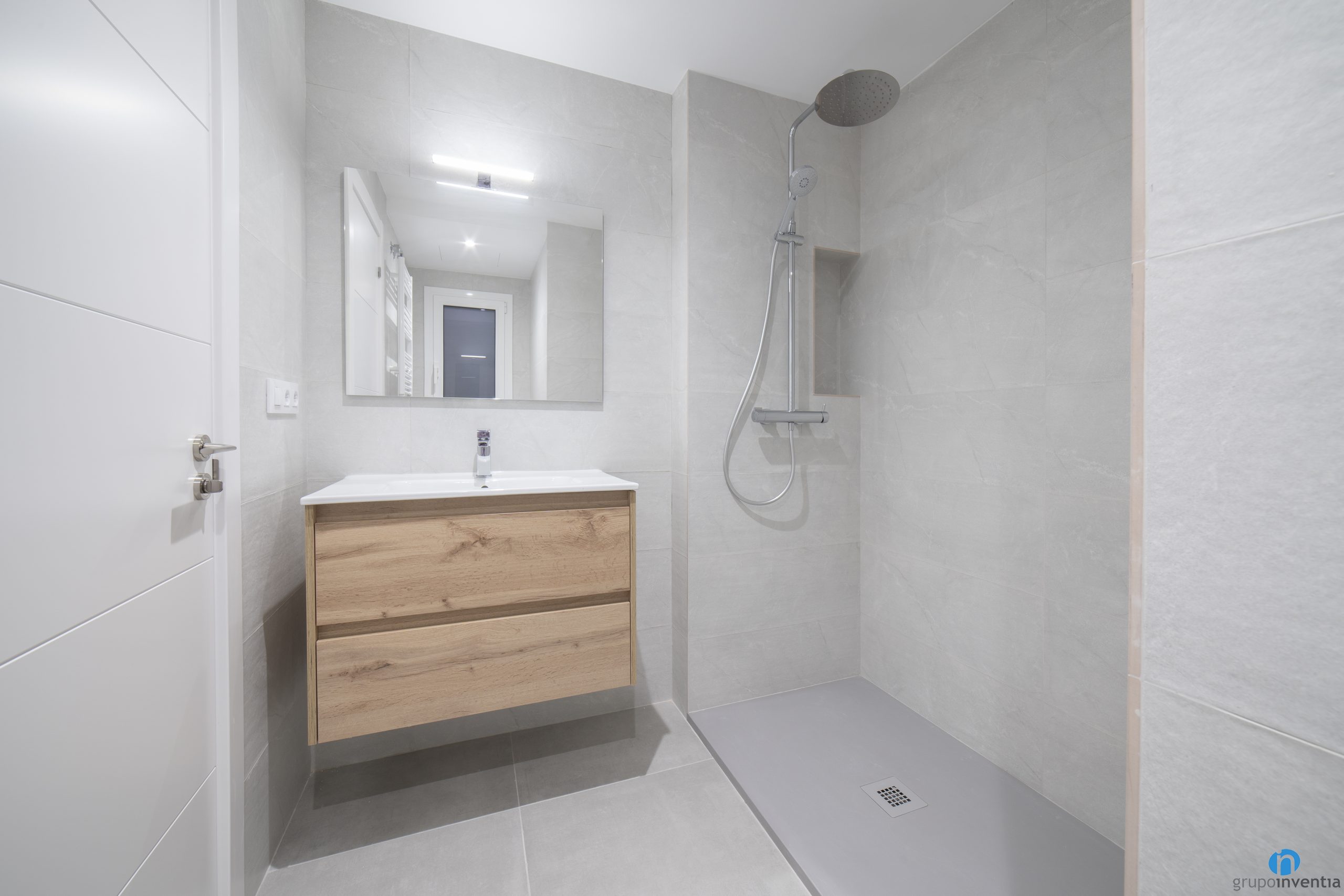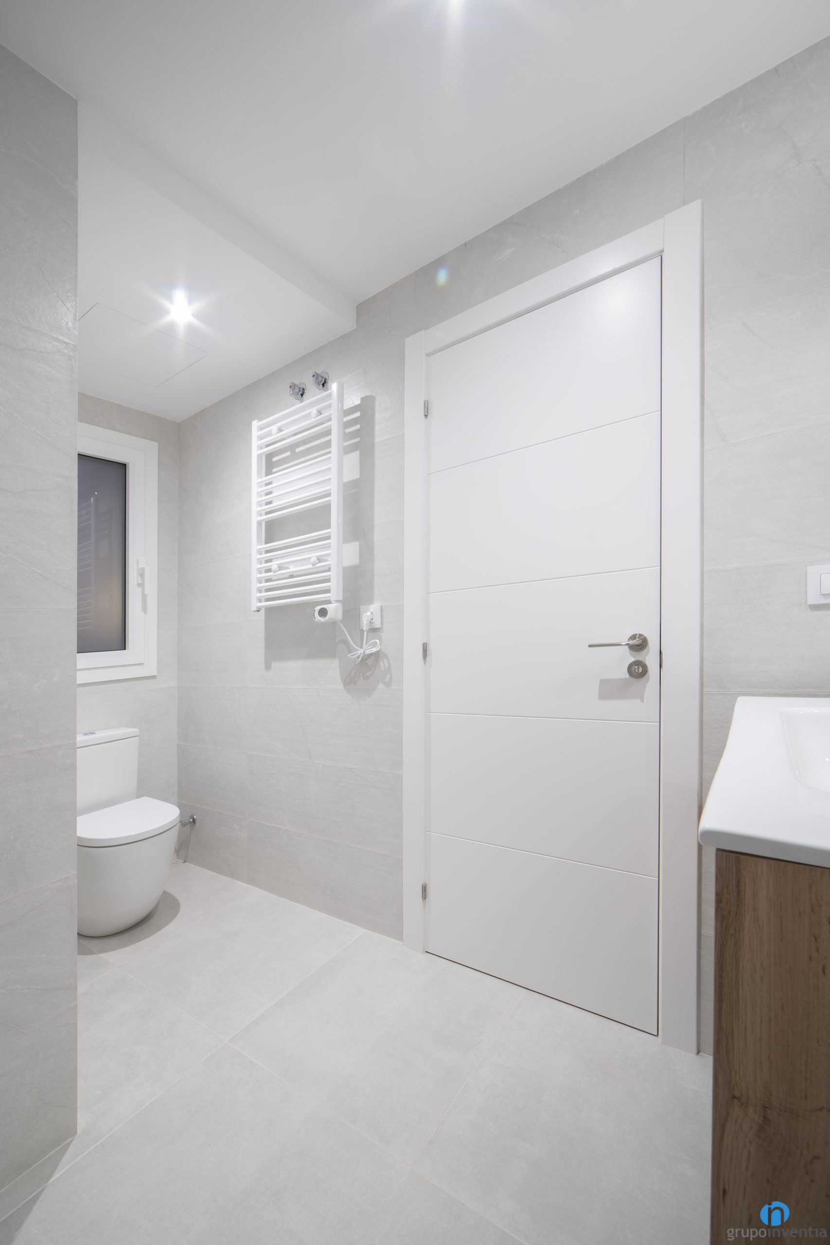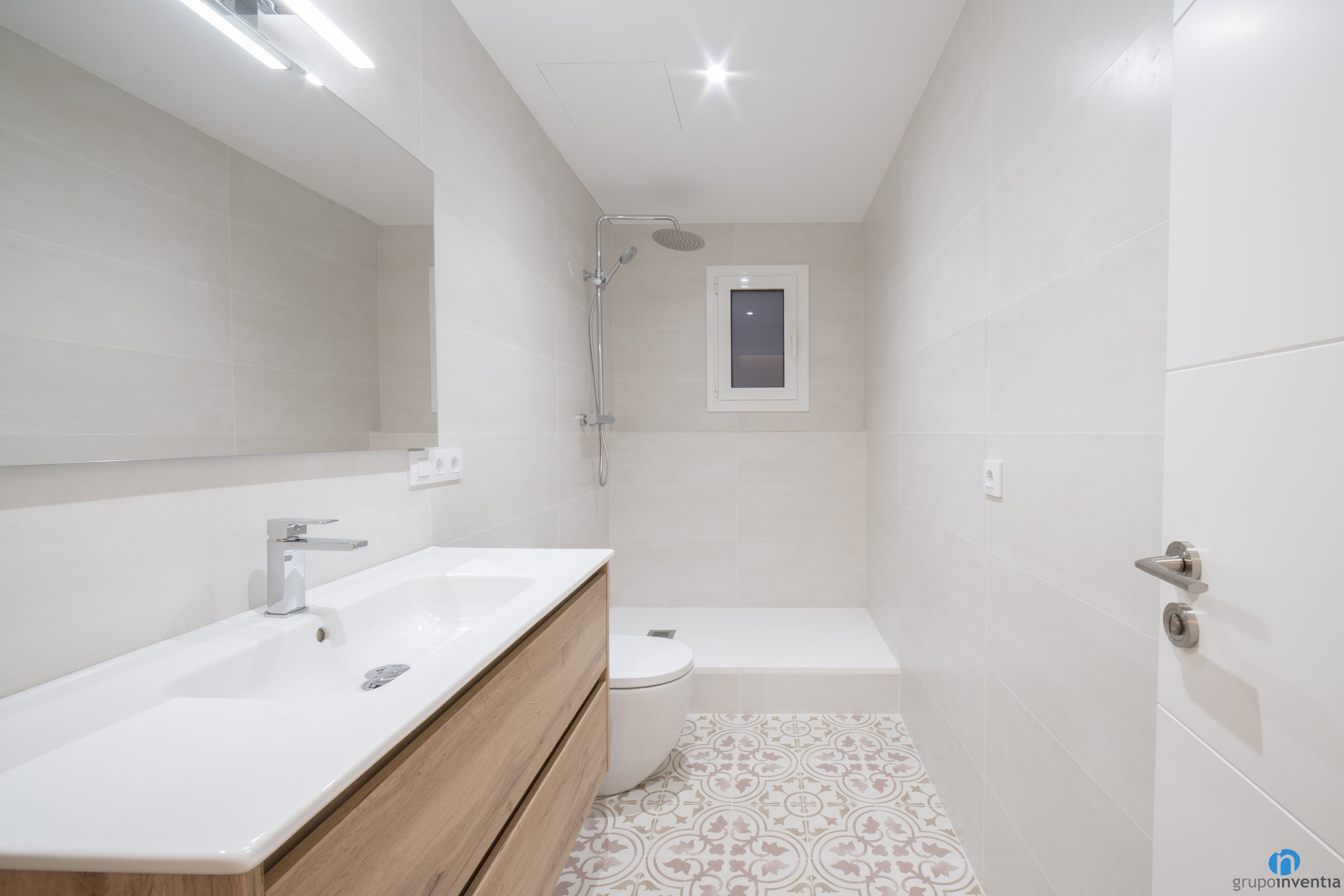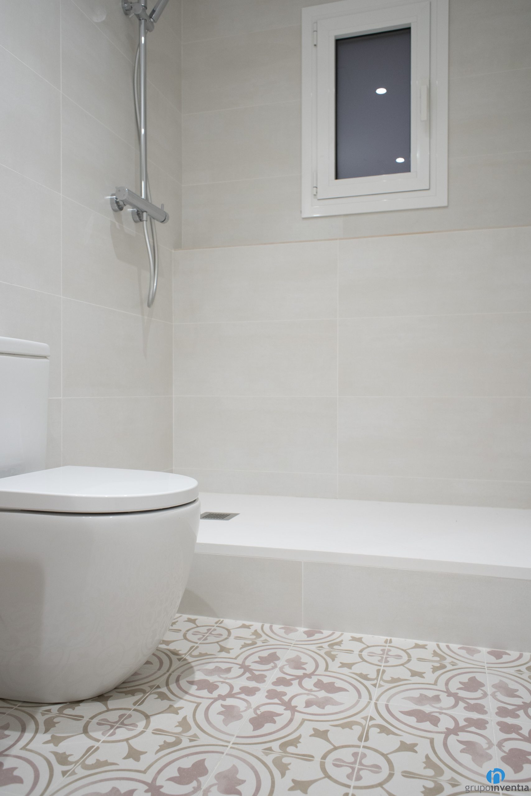 The two bathrooms of this renovation in Barcelona have complete and functional sanitary equipment. Each has a toilet with built-in storage furniture. They also have a toilet and a shower tray. We opted for a functional and accessible water area, ready to be used at all times.
