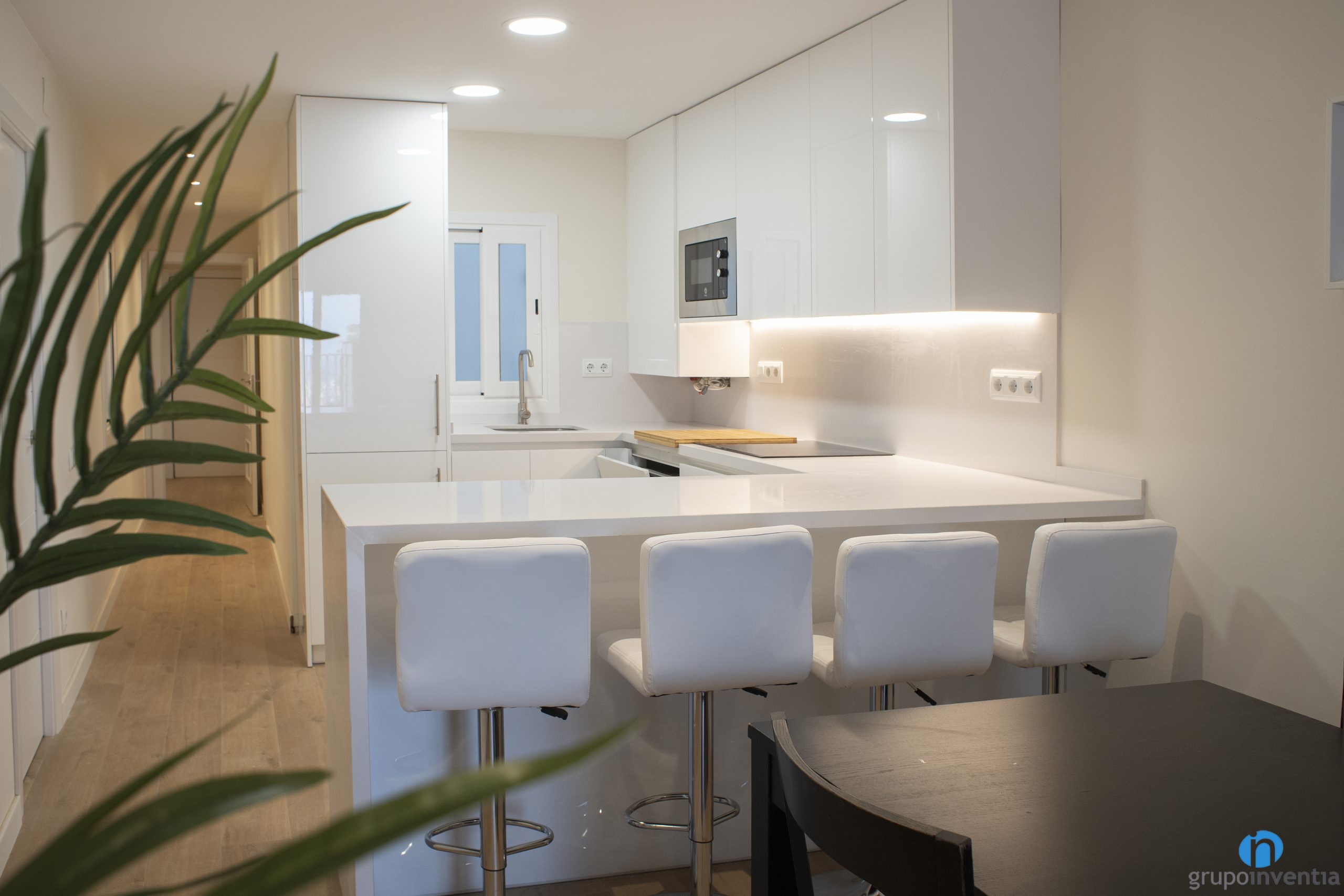Another of the key spaces in this renovation is the kitchen and on this occasion both its image and its equipment have been improved. This is an open kitchen renovation with a U-shaped layout. This way it offers excellent mobility throughout the area occupied by the kitchen.
