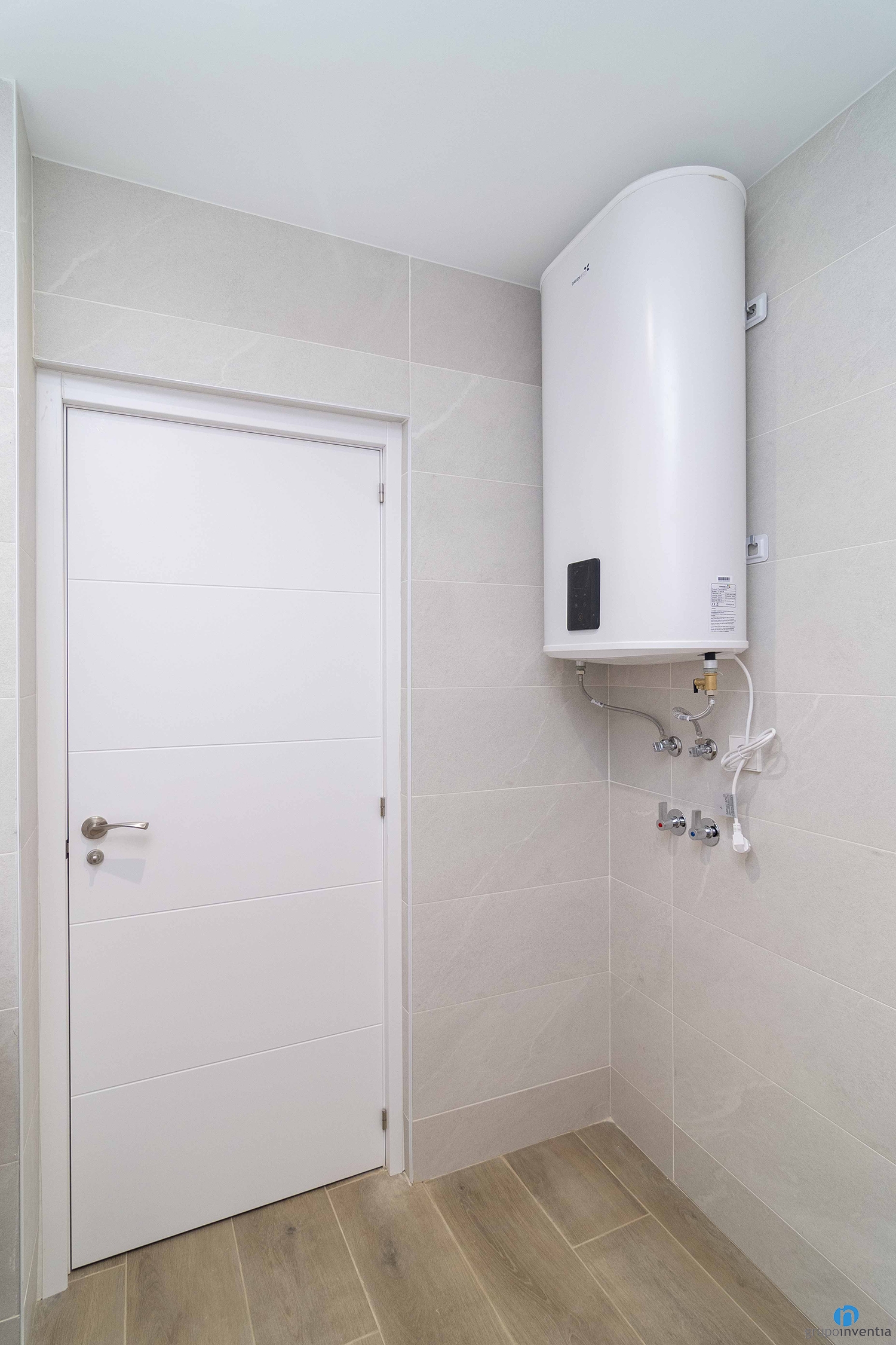 The bathroom has also been fully refurbished, creating a stylish and functional space. One of the key improvements was the installation of a double sink unit with storage, ideal for daily use and extra organization. A toilet with a classic look was also added, providing a distinctive and elegant touch.