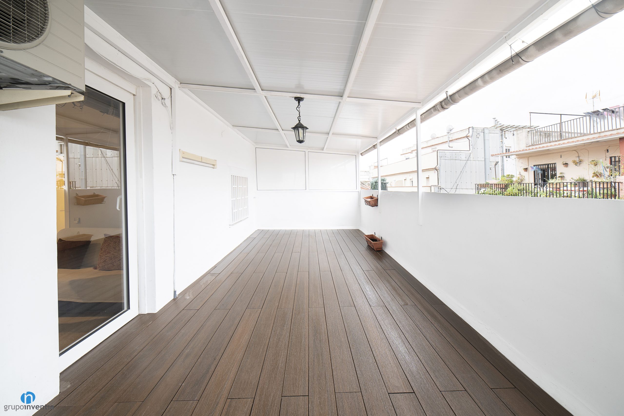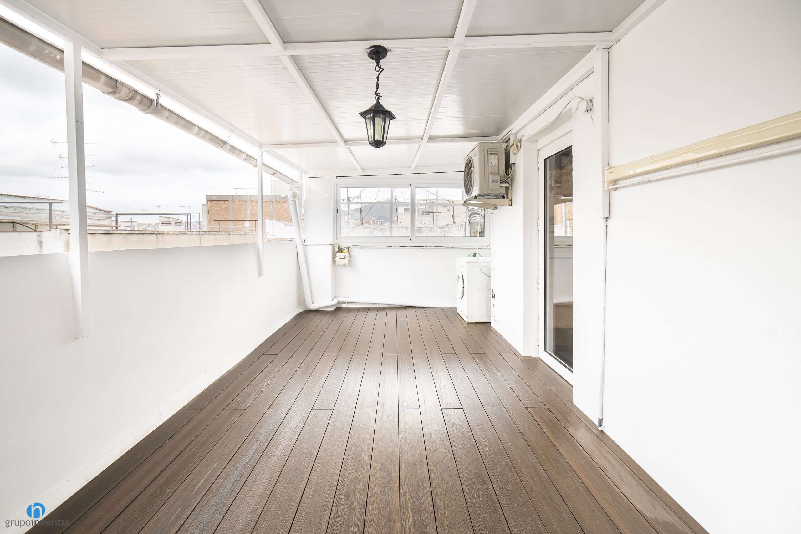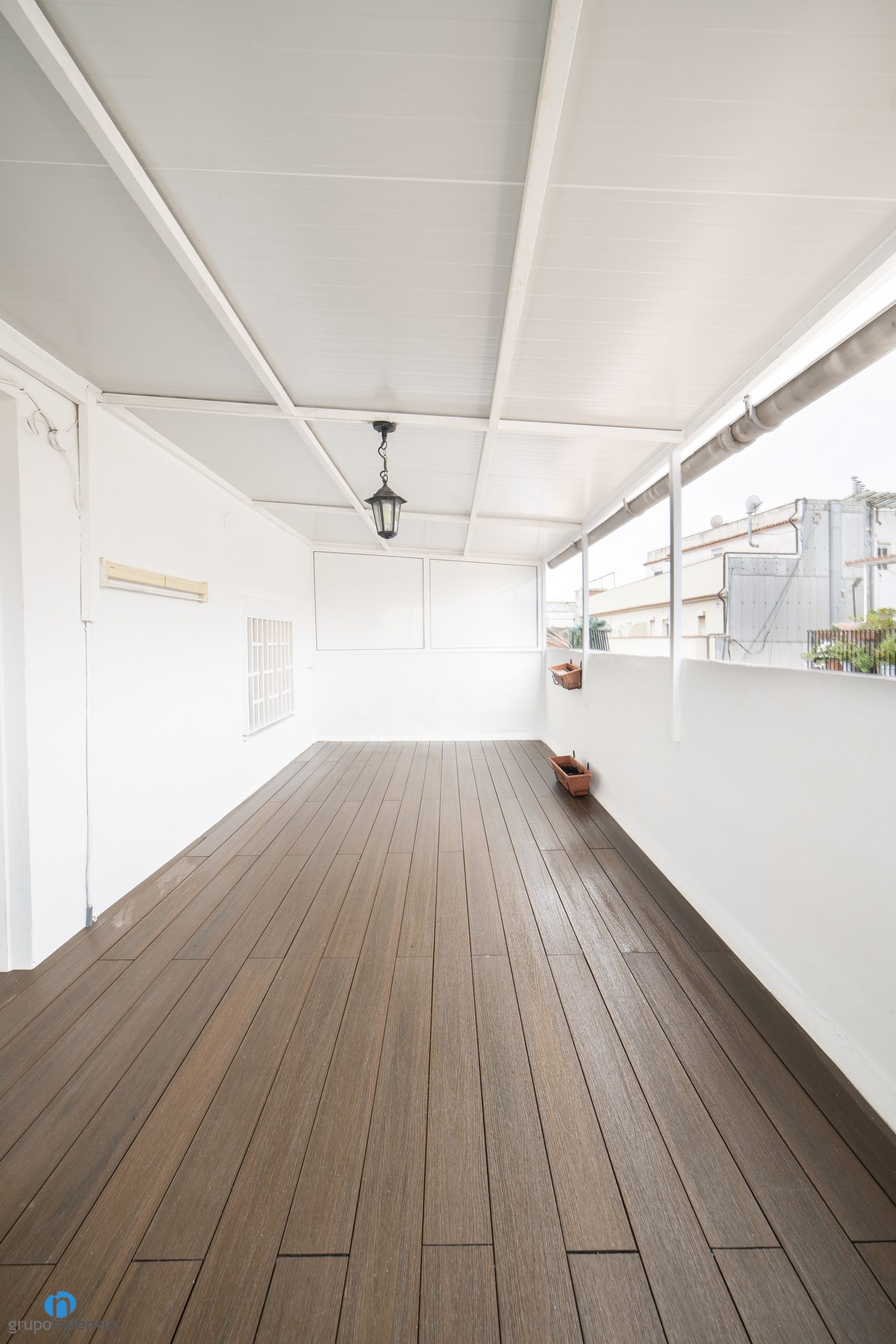 For the new color of the walls has opted for white. In this way it is possible to generate an even brighter and visually spacious space. Another detail to improve in this terrace renovation was the pavement. As it was an outdoor space, it was necessary to have a resistant surface that would fit visually. A floor in dark shades of wood has been chosen that marks the terrace very well and gives it a lot of personality.