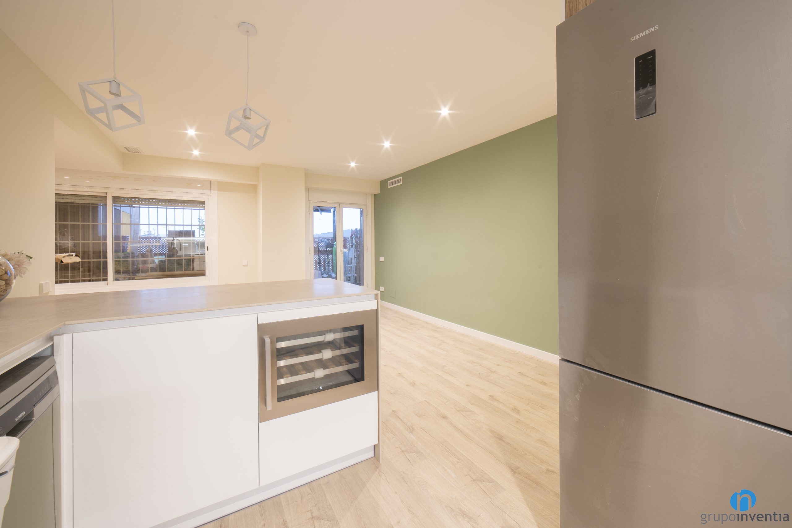 Habilitando unos taburetes también funciona como un espacio ideal para desayunos y comidas rápidas. Esta reforma de cocina también la hemos equipado por completo, integrado en el mobiliario todos los electrodomésticos. Ahora dispone de una nevera, un horno, un microondas, un lavavajillas y de una vinoteca.