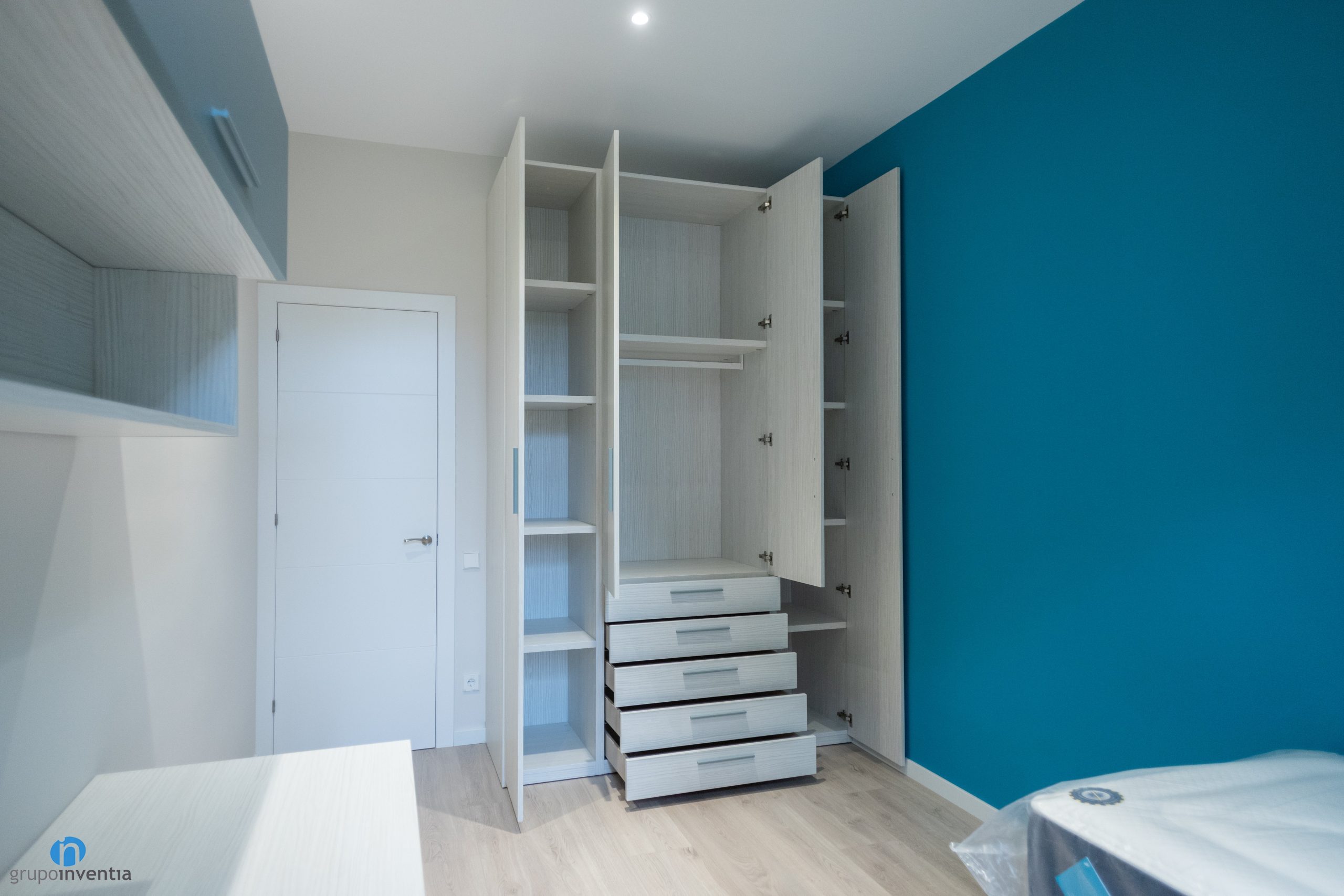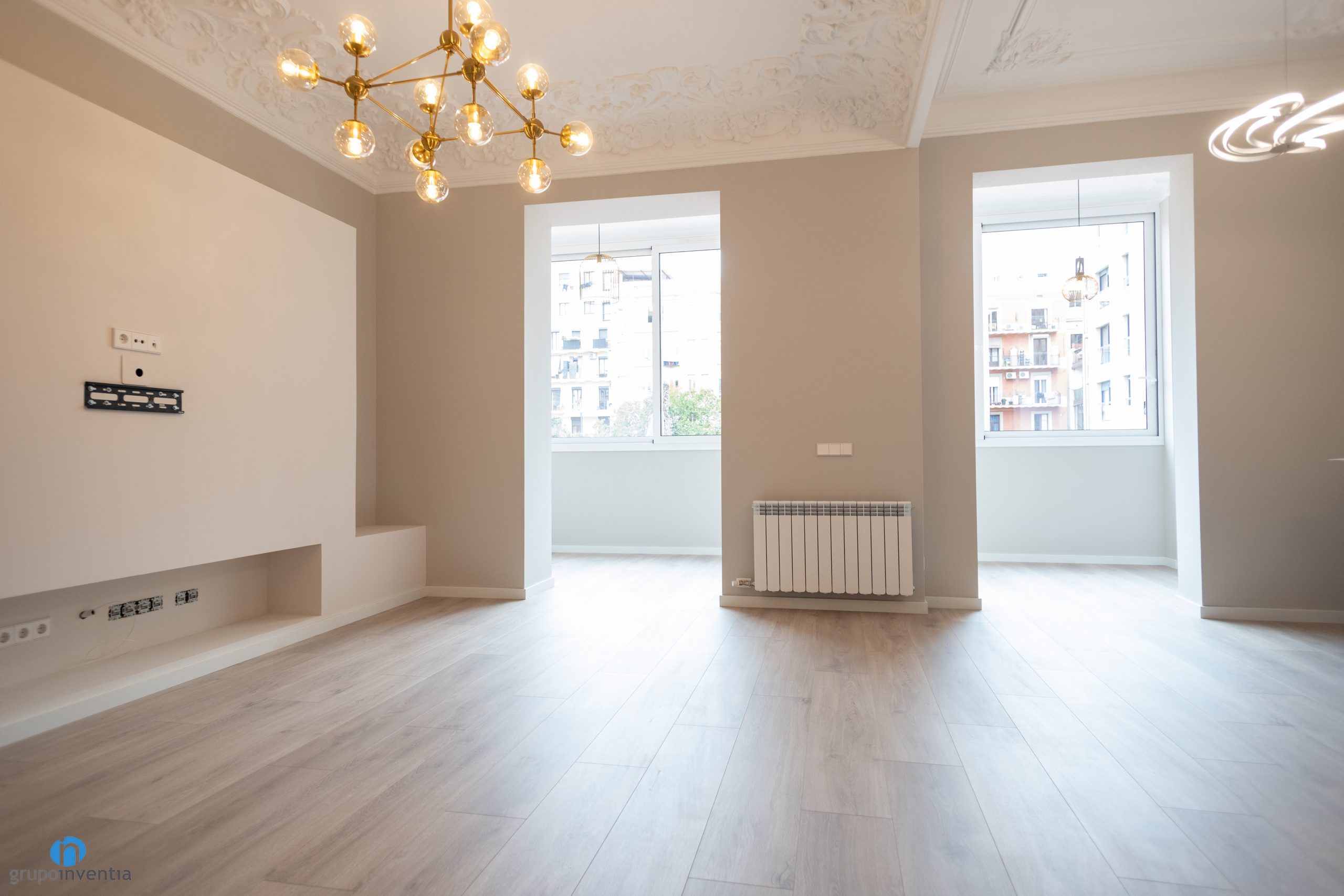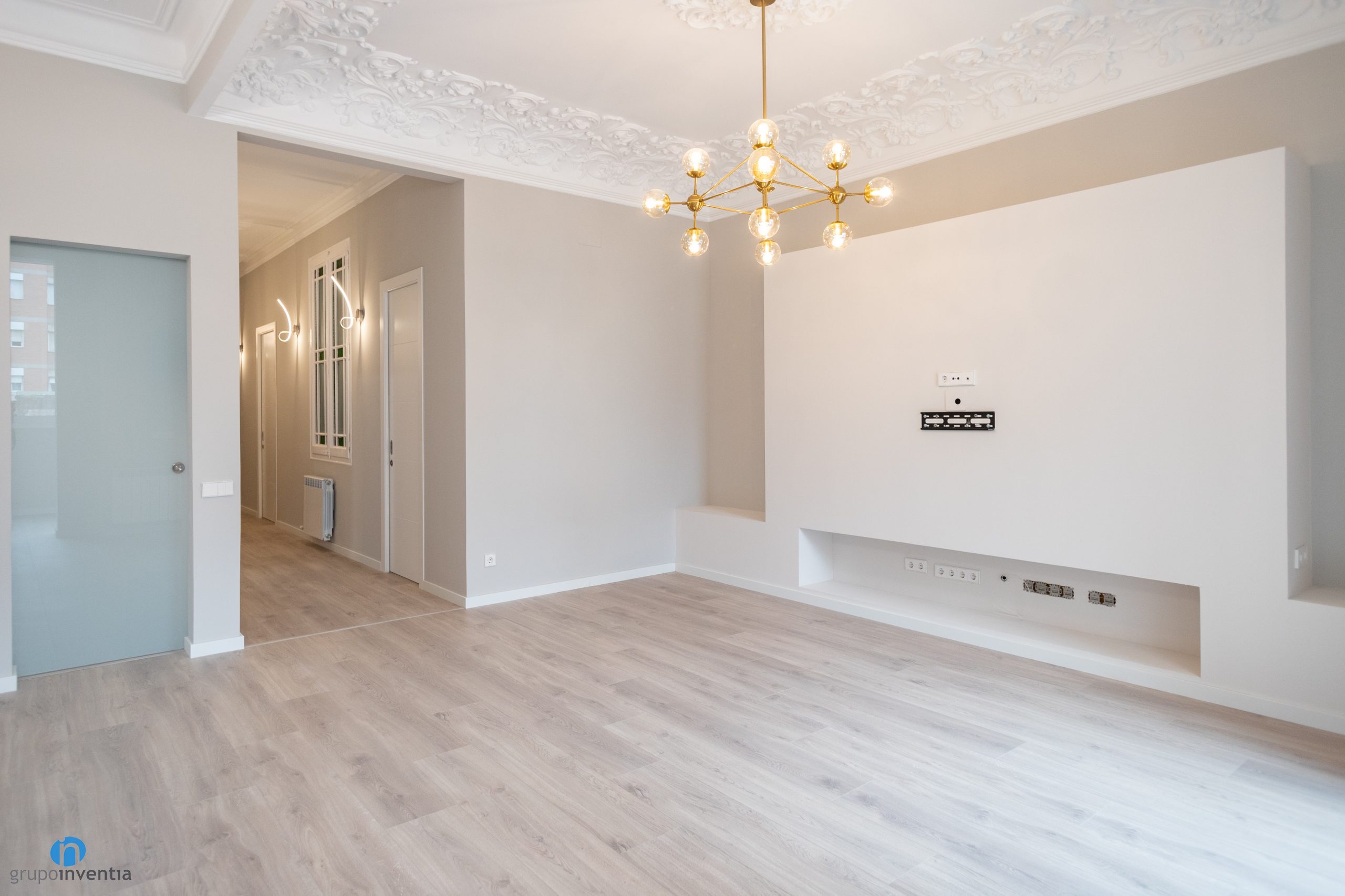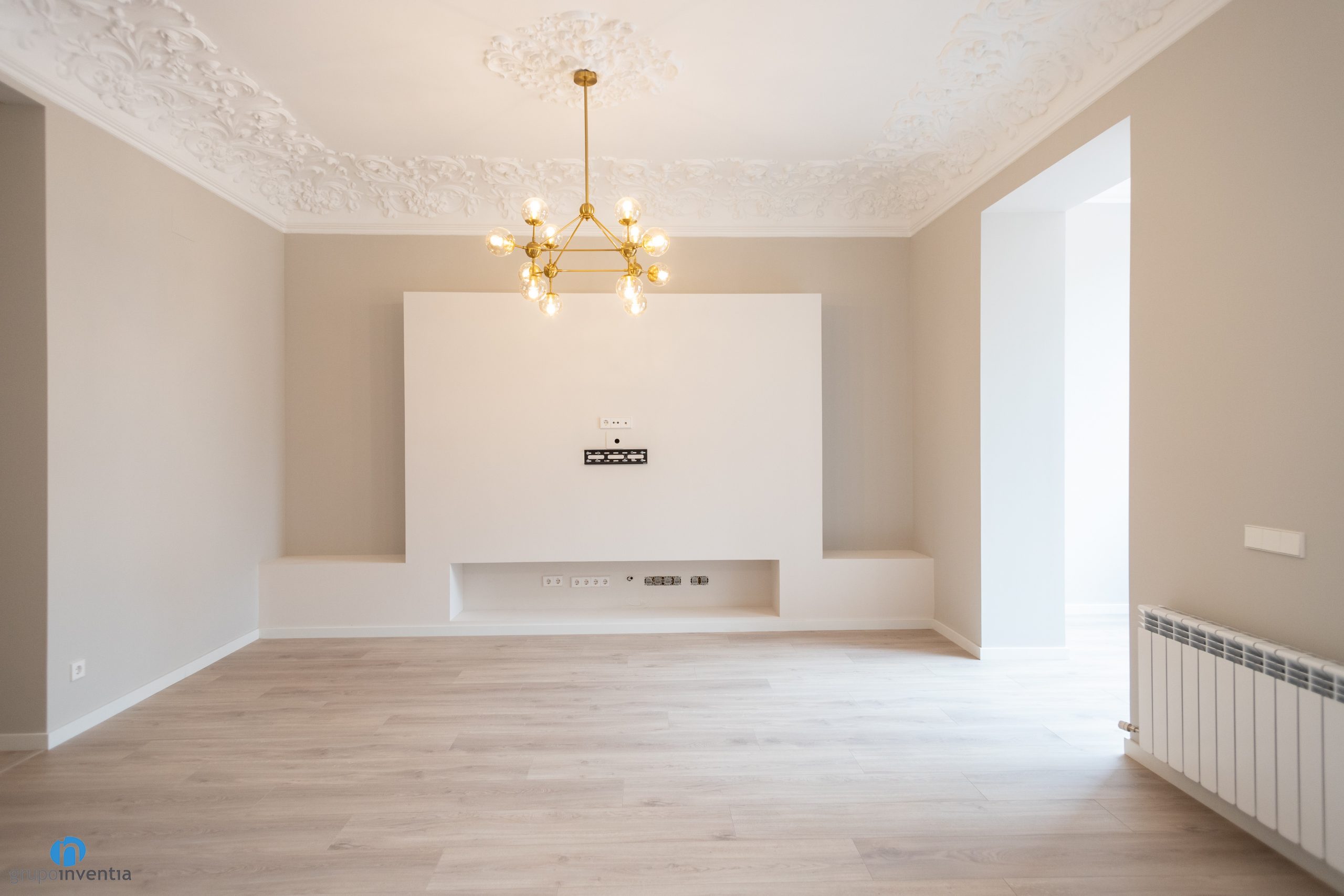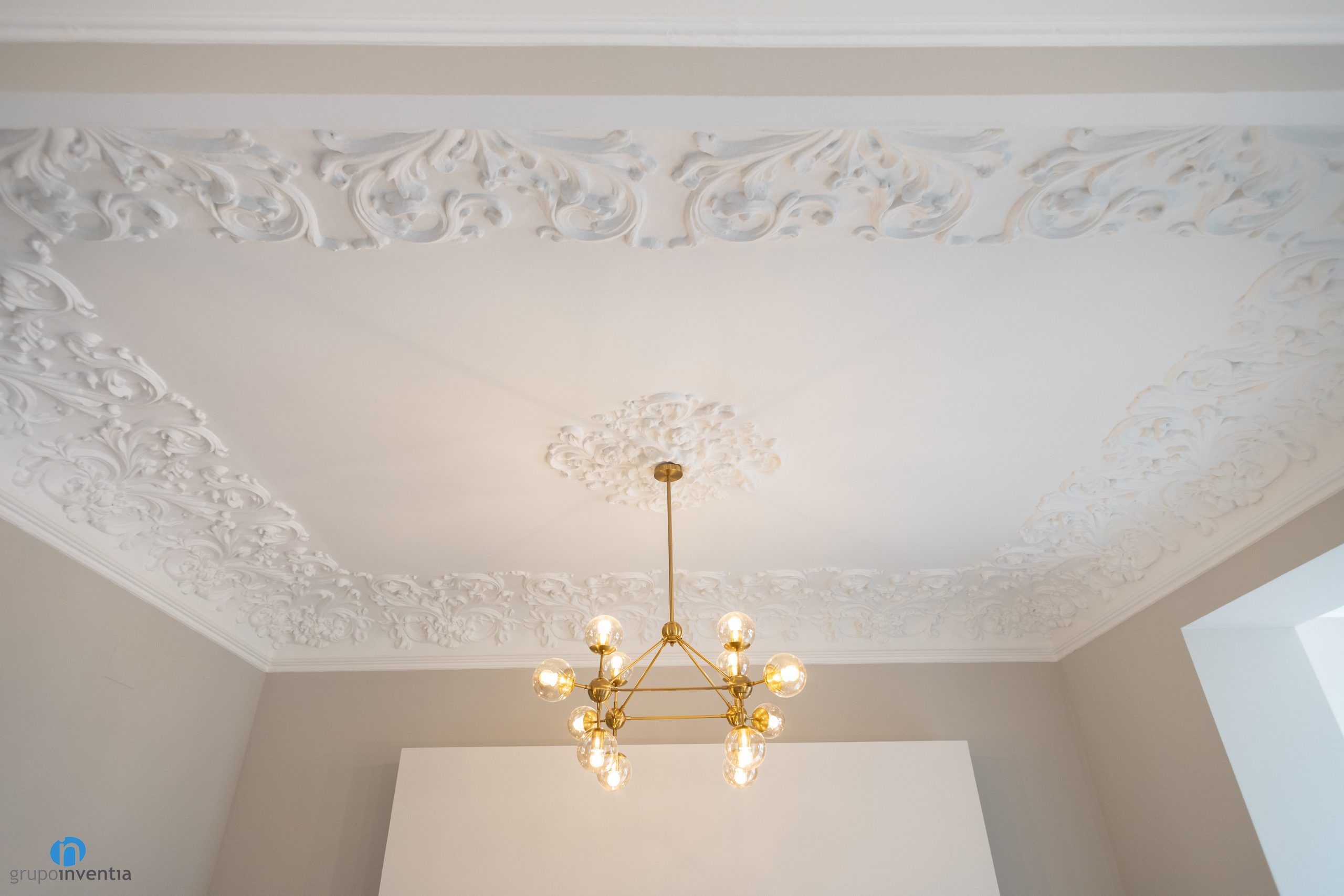En este último aspecto destacan las molduras del techo, que se ha pintado de blanco, y lucen en su imagen original. Por su parte también se ha renovado el pavimento y se ha instalado un parquet en tonos medios de madera en espacios como el salón y los dormitorios. Estos últimos también han quedado amueblados por completo.