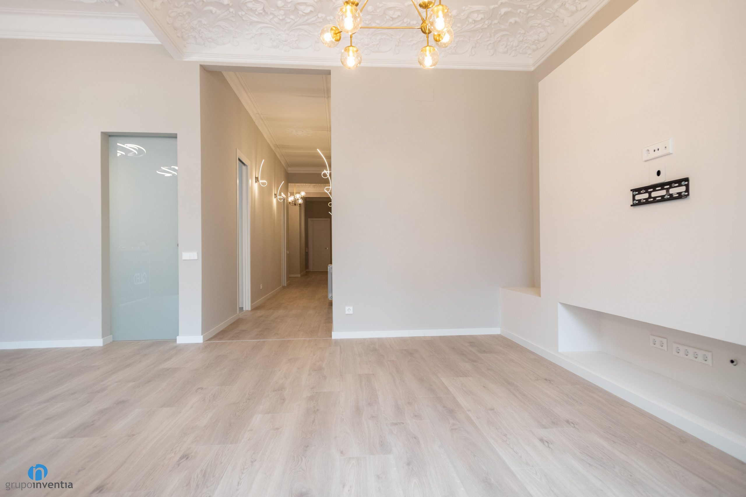 Uno de los aspectos a mejorar en esta reforma integral en Barcelona era el interiorismo de todos los espacios. En esta ocasión se ha trabajado en base a un estilo contemporáneo. Las paredes se han pintado de color beige y permiten que la luz natural se expanda a cada rincón. También se han mantenido elementos originales como algunas puertas y ventanas.