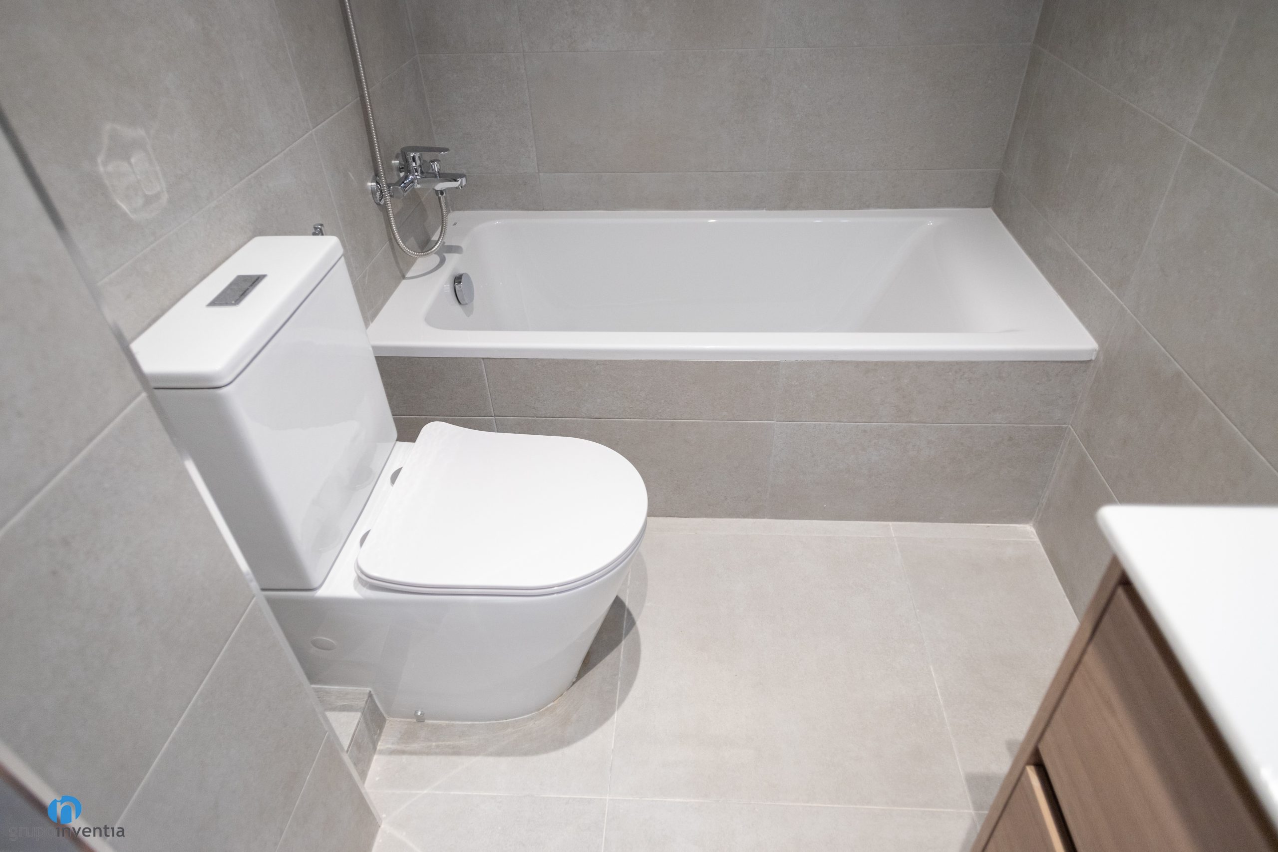Por último tenemos za zona de aguas, en la que se ha mantenido el espacio para la bañera. En este caso se ha renovado la bañera y ha generado un espacio perfecto tanto para las exigencias del día a día como para los momentos más relajados. En líneas generales se ha conseguido un baño muy funcional y con elementos que garantizan las mejores prestaciones.