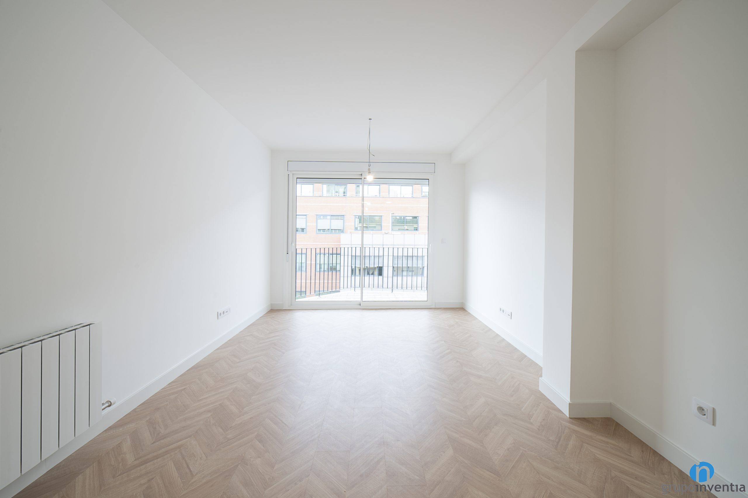 Hemos pintado las paredes de color blanco para aprovechar las entradas de luz natural que tiene este piso. De este modo la luz procedente del exterior puede fluir hasta todos los rincones de la casa. Le acompaña un suelo de parquet en tonos de madera natural y colocado en forma de espiga.