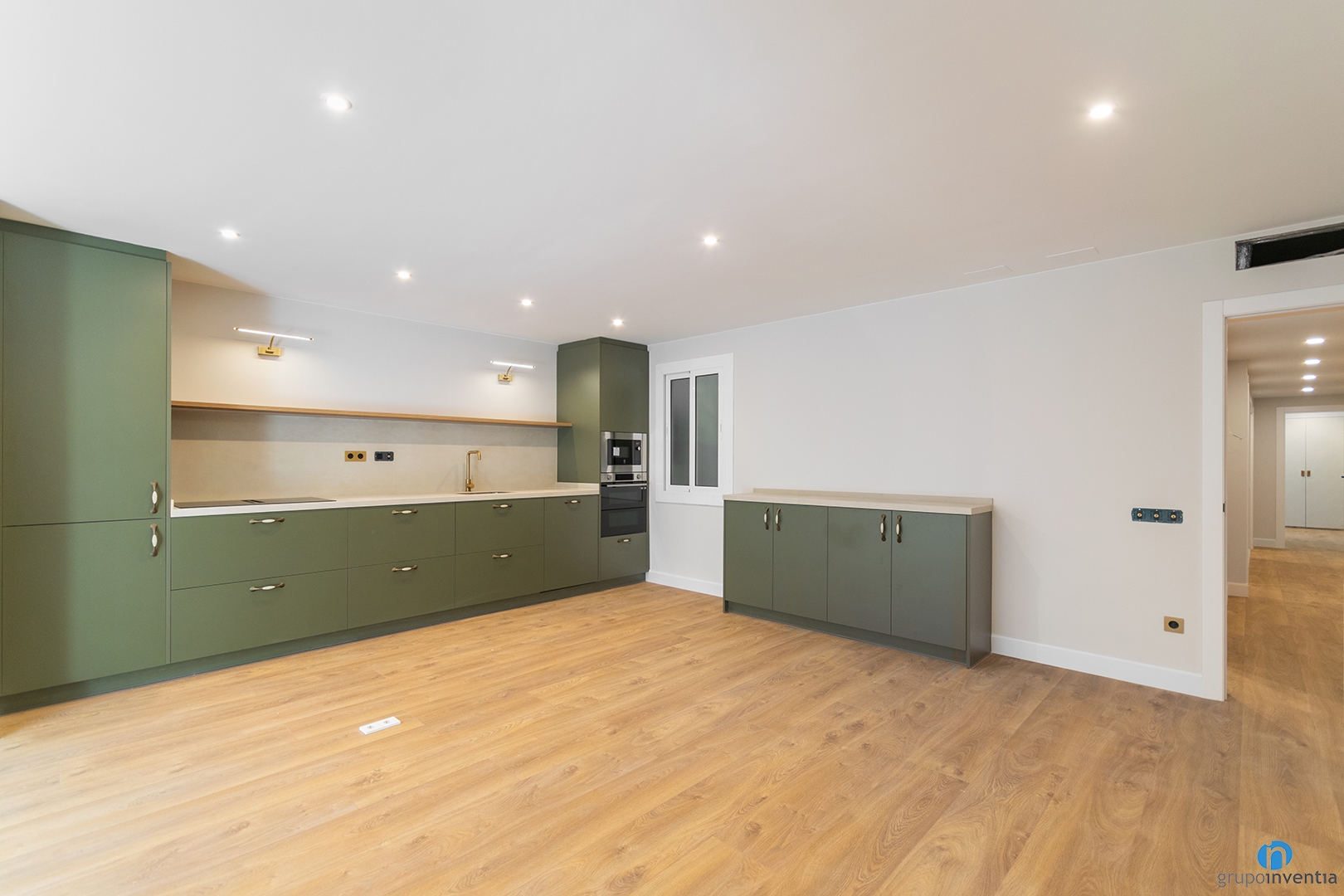 Las paredes se han pintado con un tono neutro suave que potencia la luz natural. También hemos instalado un suelo de parquet en tonos claros de madera. Esta combinación es ideal para crear ambientes cálidos y elegantes. Con estas elecciones, esta reforma en Hospitalet ofrece una imagen moderna. Además, mejora notablemente la sensación de amplitud en toda la vivienda.