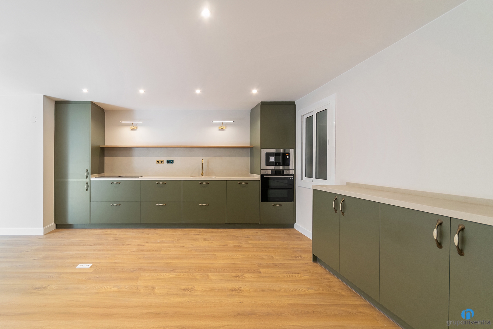 Para el diseño de esta reforma de cocina en Hospitalet hemos escogido muebles en tono verde. Este acabado encaja perfectamente con el estilo contemporáneo aplicado en toda la vivienda.