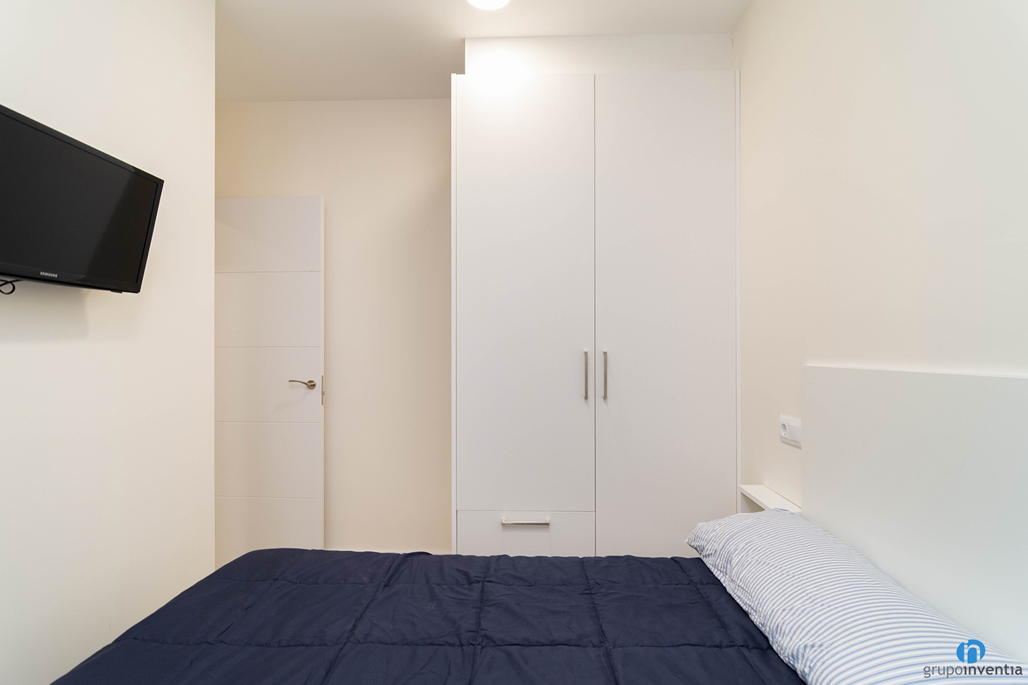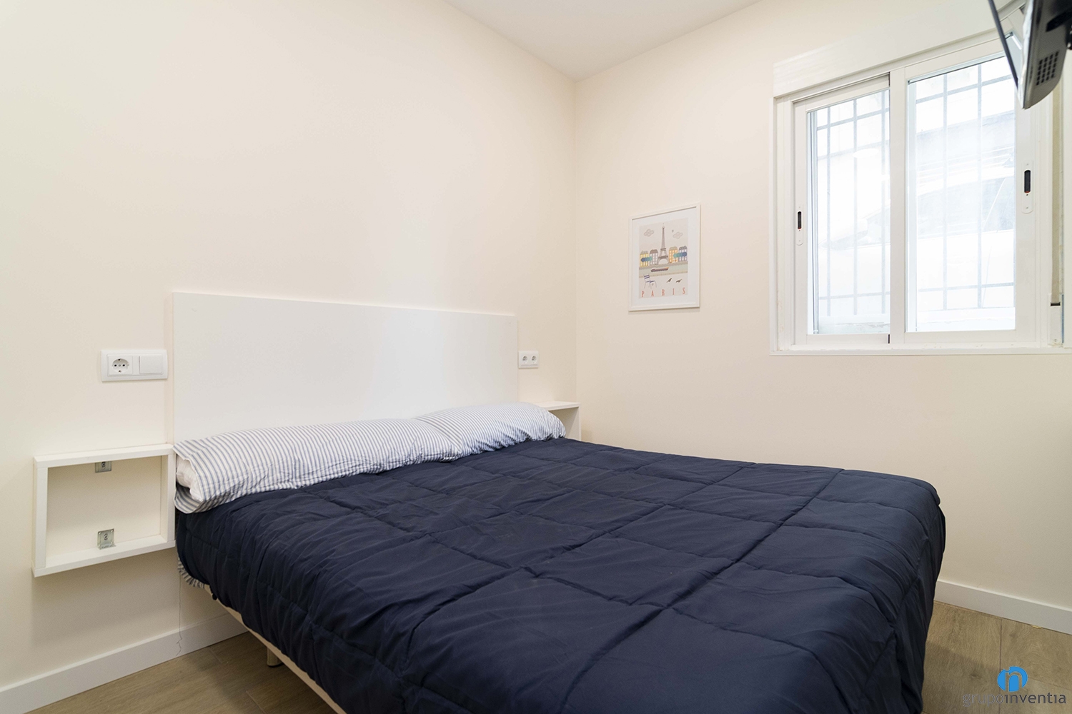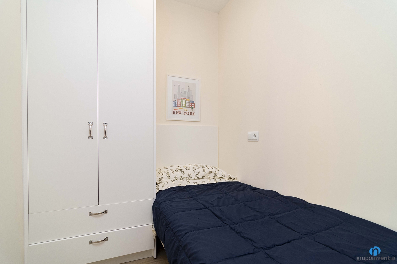 También nos hemos encargado de colocar el nuevo suelo de parquet en tono de madera natural. Gracias a este detalle conseguimos generar calidez en espacios como los dormitorios. Cada habitación está amueblada con una cama, un armario y una zona de estudio.