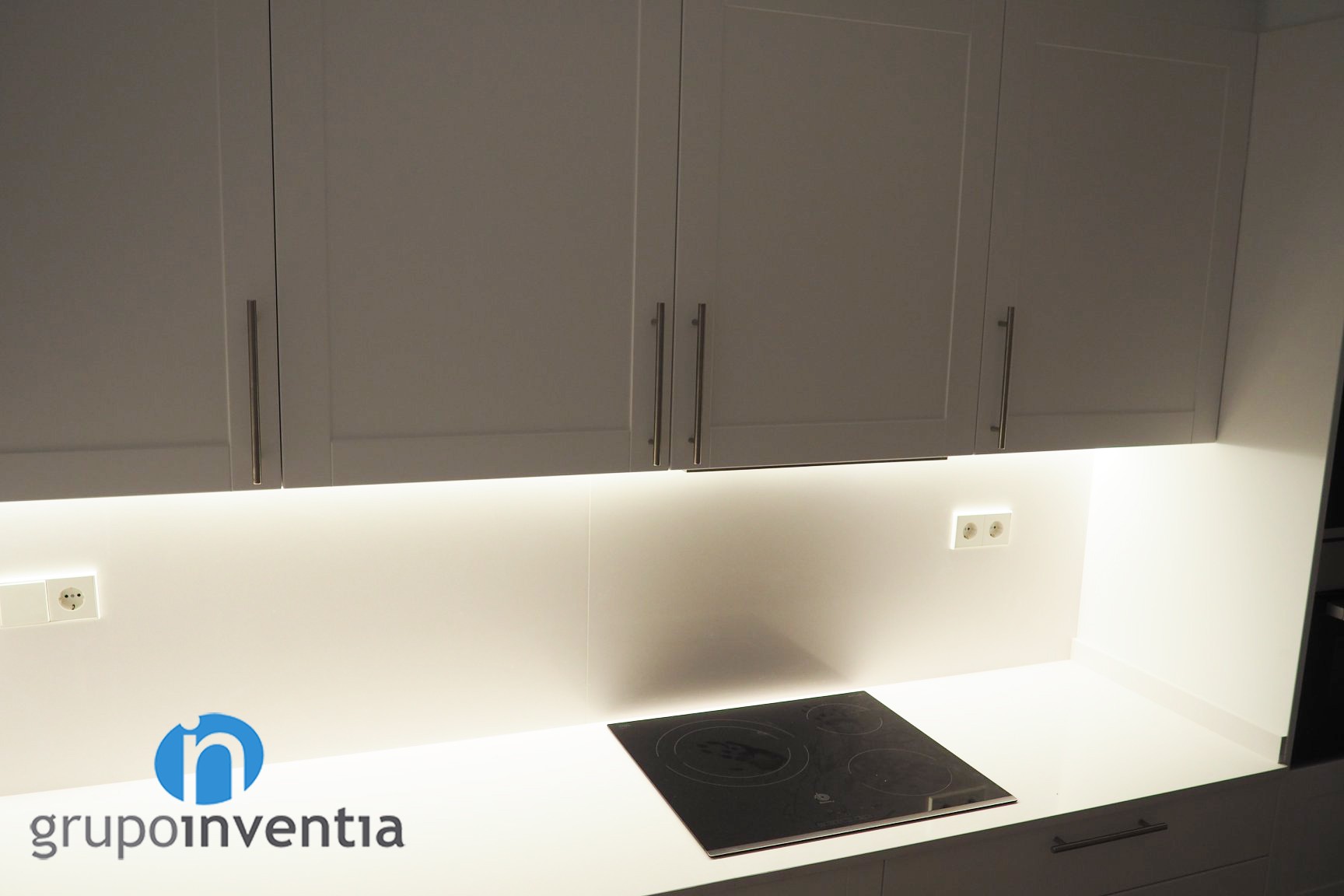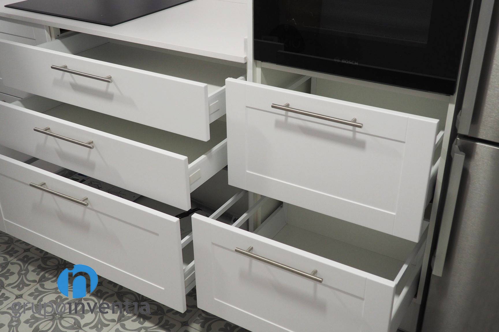 En este caso la reforma de cocina se ubica en una estancia propia y amplia, características que hicieron decantarse por una distribución de cocina en L. Ésta cuenta con todos los electrodomésticos necesarios para ofrecer las mejores prestaciones y dispone de una gran capacidad de almacenaje. Tanto en la zona inferior como superior cuenta con armarios y cajones.