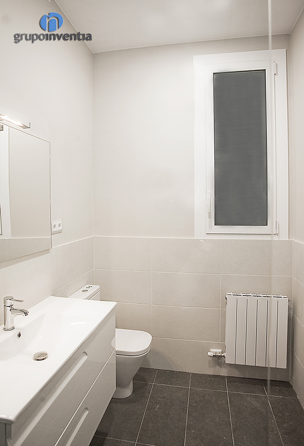 En el aseo también se han llevado a cabo tareas de rehabilitación. En este caso la estancia se ha equipado con un lavabo con mueble incorporado y un inodoro. Por su parte, las paredes se han alicatado hasta media altura con azulejos tipo metro y se ha pintado el resto con un suave tono beige.