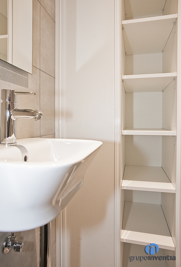En estos cuartos de baño las paredes se alicataron por completo con azulejos de colores neutros, consiguiendo crear un ambiente de comodidad y visualmente amplio.