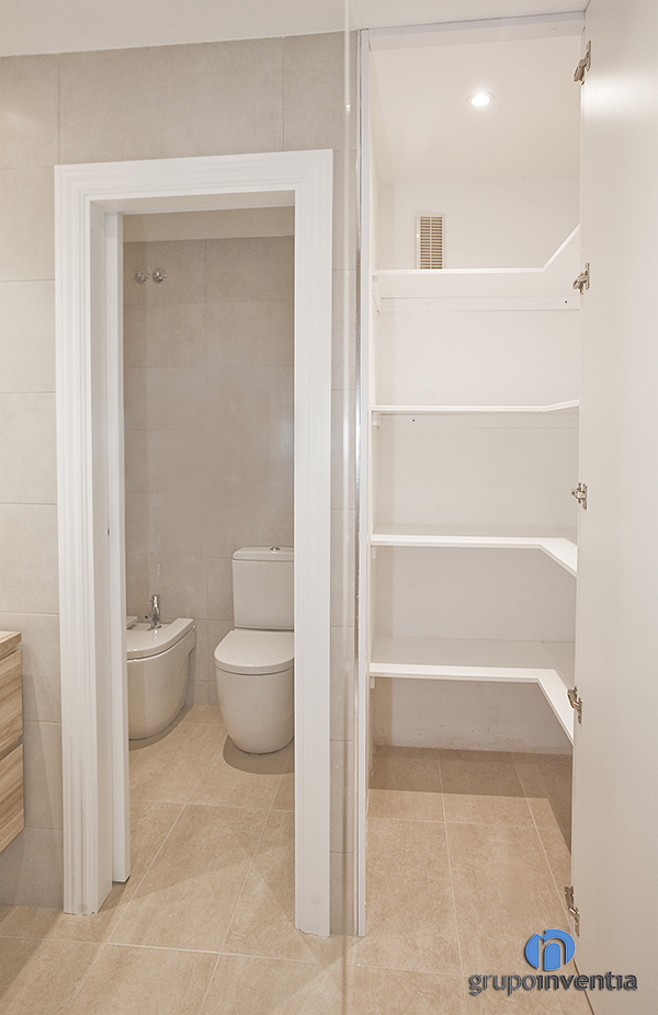 El baño principal se equipó por completo y cuenta con un lavabo, una pareja de inodoro y bidet, y una amplia ducha. Por su parte, el aseo cuenta con un lavabo y un inodoro, convirtiéndose en una estancia práctica y funcional para el día a día.