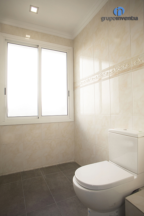El inmueble contaba con un cuarto de baño que se rehabilitó y equipó por completo, disponiendo así de todos los elementos sanitarios para ofrecer las mejores prestaciones. De este modo, la reforma de baño cuenta con un lavabo con cajonera incorporada, un espacio perfecto para almacenar productos de higiene, una ducha protegida por mamparas de puertas correderas y un inodoro.
