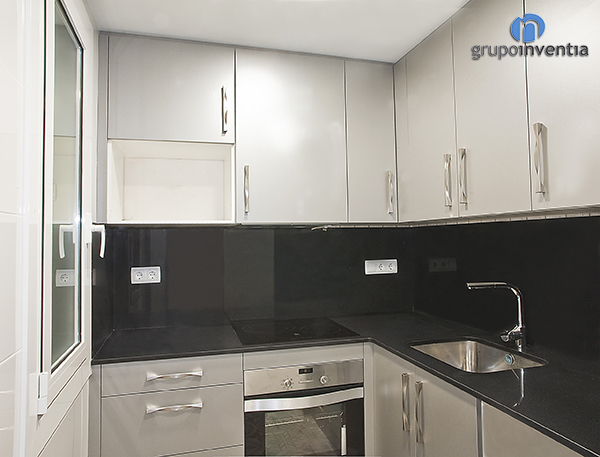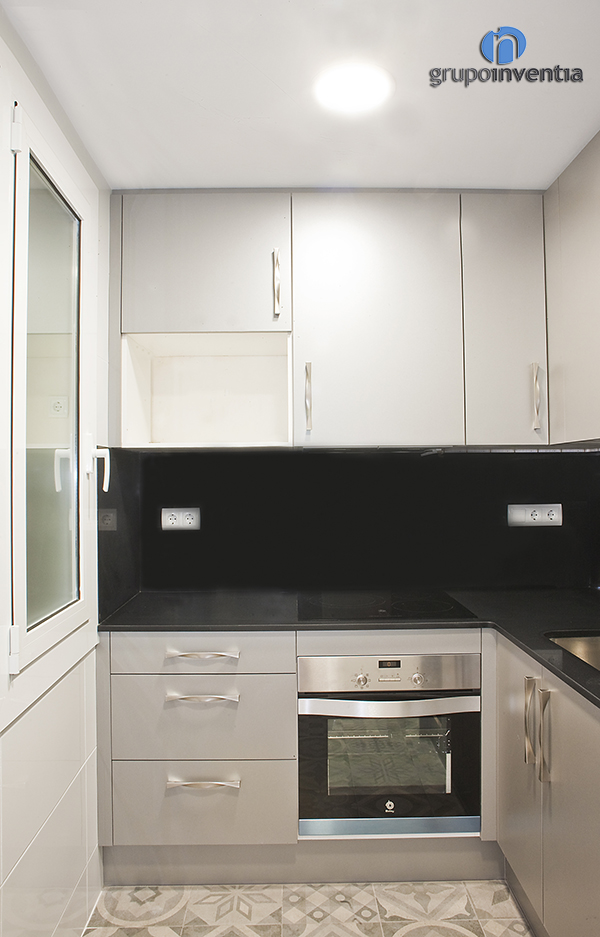 El tramo de encimera de la derecha se equipó con un fregadero individual, mientras que en el de la parte central se instaló una placa vitrocerámica. Justo debajo de esta se encastro el horno. Además del nuevo equipamiento, esta reforma de cocina cuenta con capacidad de almacenaje tanto en la parte inferior como superior de la encimera.