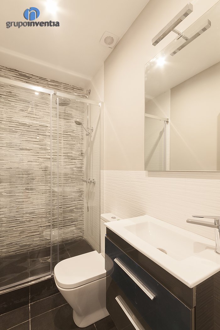 Con la reforma de baño se consiguió una estancia completamente equipada y muy funcional. En el se instalaron un lavabo con cajonera incorporada, perfecta para almacenar productos de higiene, un inodoro y una ducha protegida con una mampara de puertas correderas.