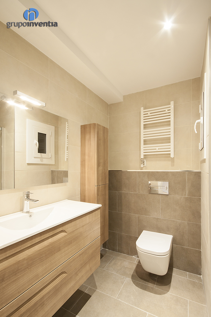La reforma de baño dio lugar a una estancia muy acogedora y amplia que cuenta con los elementos sanitarios imprescindibles para ofrecer las mejores prestaciones. Entre ellos se encuentran un lavabo con cajonera incorporada, un inodoro suspendido, que otorga un cierto toque de diseño, y una amplia ducha protegida con una mampara de puertas correderas que resguarda a la estancia de salpicaduras de agua.
