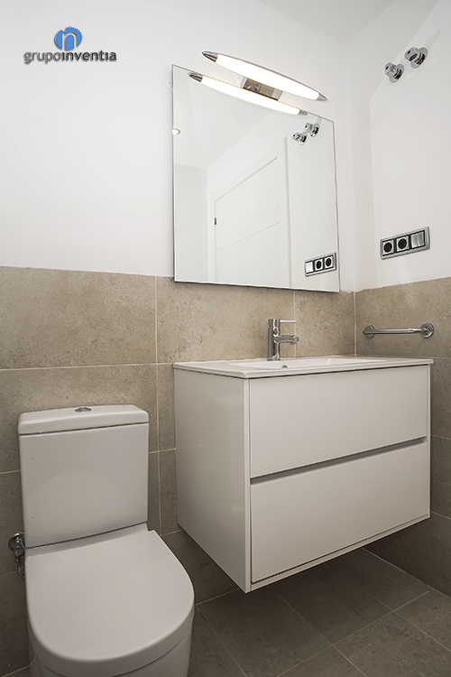 En la reforma de baños se utilizaron diseño en base a tonos neutros con el objetivo de conseguir estancias cálidas y agradables. En ambos casos, las paredes se alicataron a media altura con azulejos de color beige. En cuanto al equipamiento sanitario, ambos cuartos de baño cuentan con un lavabo con cajonera incorporada, un inodoro y una práctica ducha.