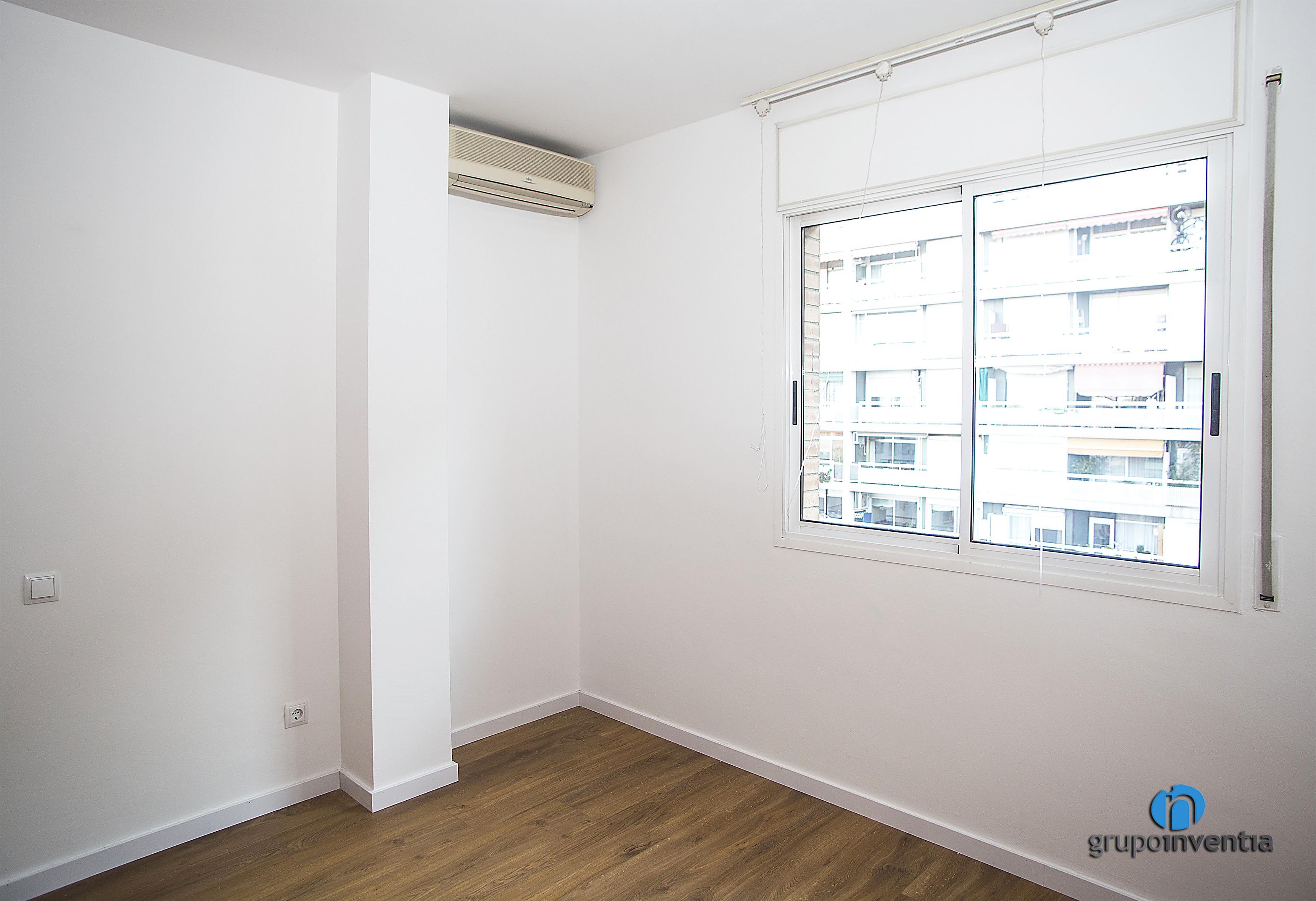 En esta reforma integral destacan las estancias amplias y con mucha sensación de luminosidad, algo que conseguimos al utilizar tonalidades neutras para pintar las paredes y combinarlas con un parquet laminado en tonos medios de madera.