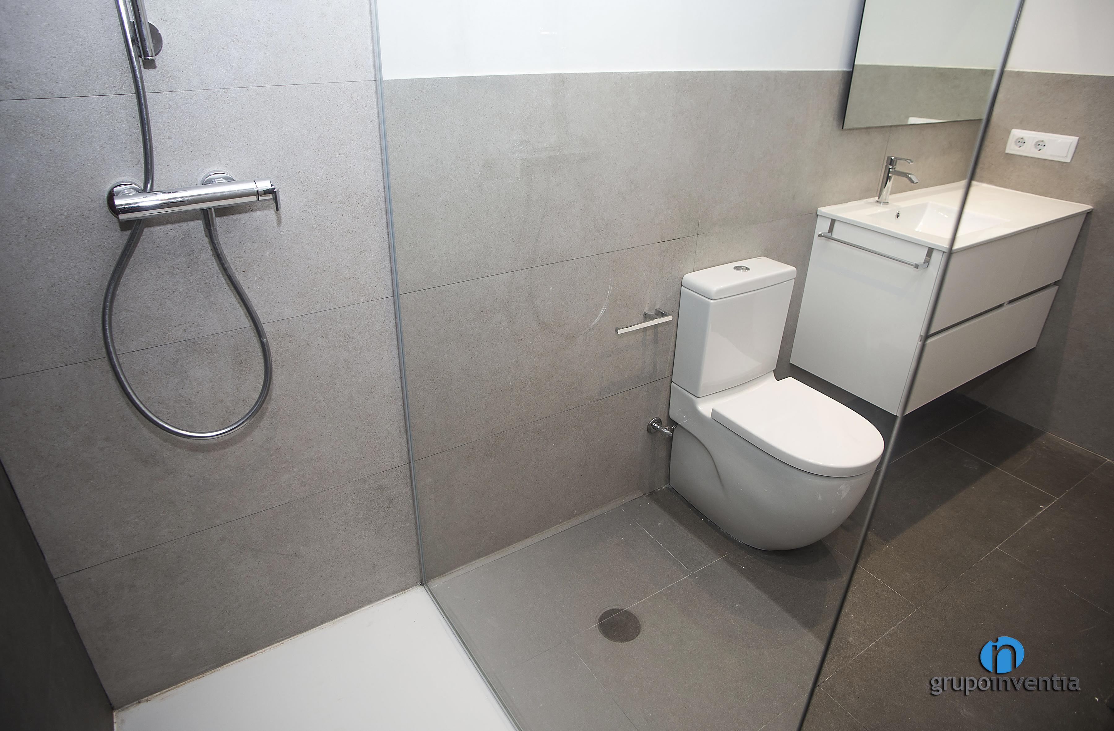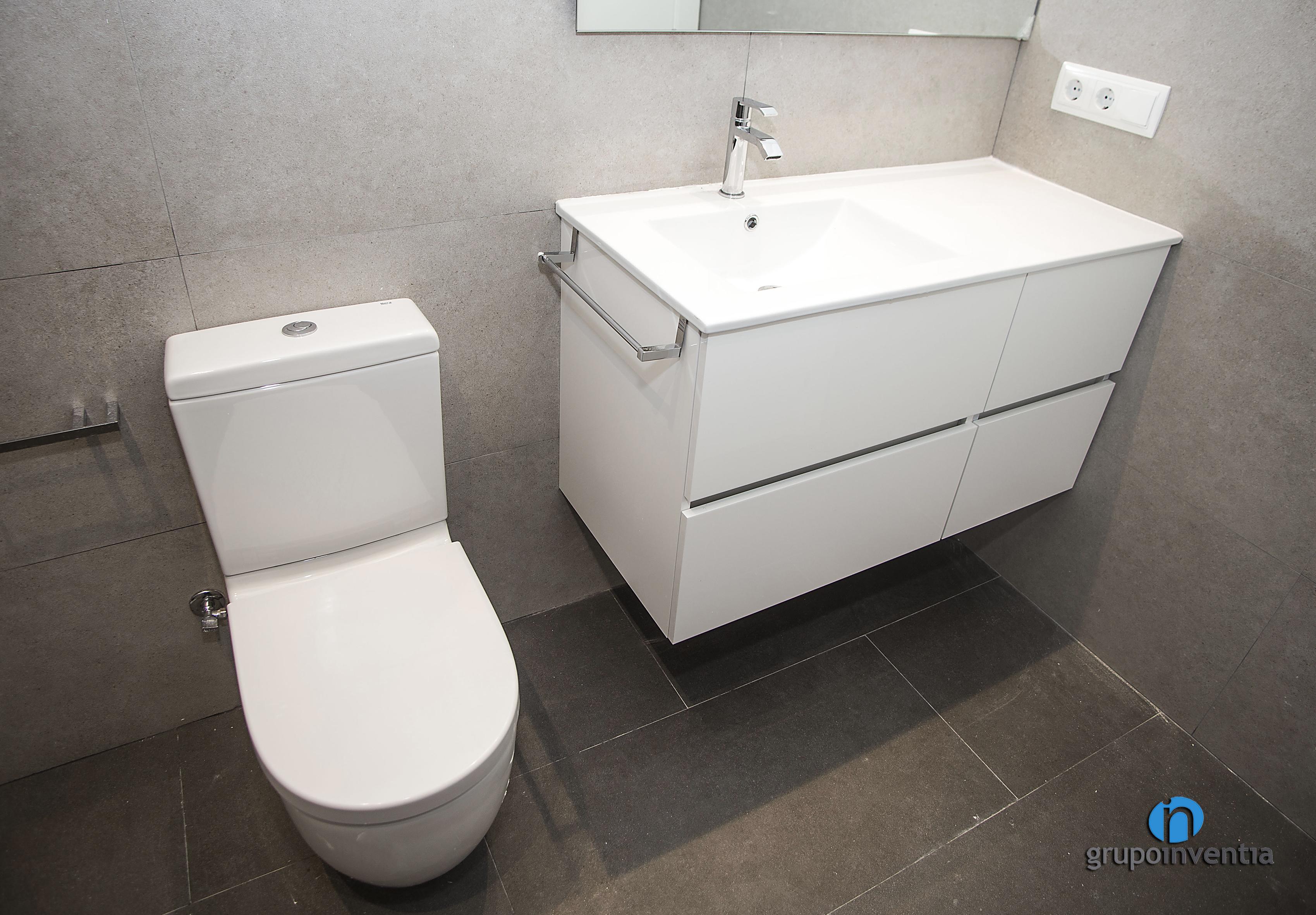 Una vez finalizada, la reforma de baño presenta una imagen muy agradable. Las paredes se alicataron hasta media altura con azulejos de color beige y el resto se pintó de blanco. Ésto, combinado con un pavimento de gres beige y un mobiliario de baño en color blanco, genera mayor sensación de amplitud en la estancia.