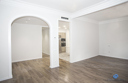 En líneas generales buscamos dotar a la vivienda de estancias amplias y luminosas, aprovechando las entradas de luz natural. Este agradable ambiente se potenció al combinar tonalidades neutras a la hora de pintar las paredes con un pavimento de parquet laminado que ofrece mucha calidez.