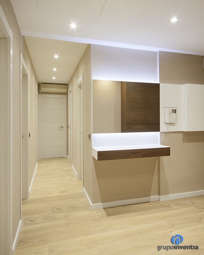 En Grupo Inventia hemos finalizado la reforma integral y de mobiliario que estábamos llevando a cabo en la calle Múrcia de Barcelona. Además de mejorar el diseño interior y el equipamiento de todas las estancias, como por ejemplo la cocina, hemos amueblado varios espacios de la casa como el recibidor o el salón comedor.