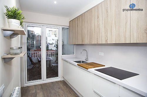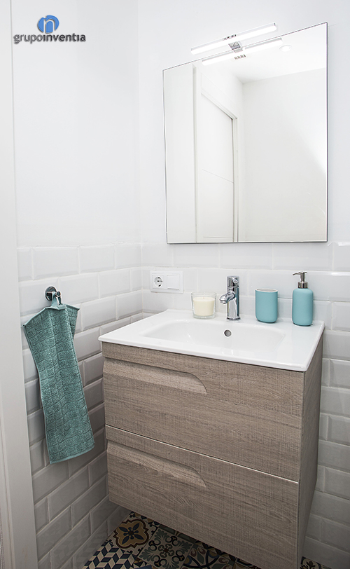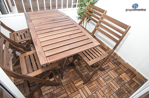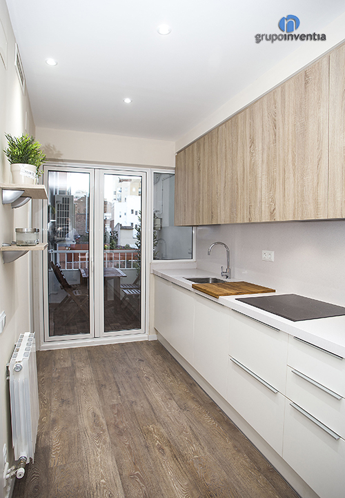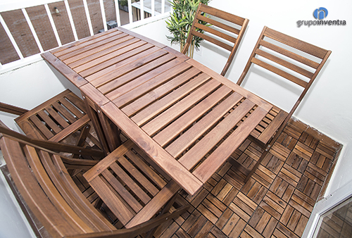 Tanto la cocina y como el cuarto de baño ya estaban muy completas tras la reforma integral, sin embargo, ahora se han colocado diferentes utensilios necesarios en ambas estancias. Como detalle, desde la cocina se accede a la terraza, que también se ha amueblado con una mesa y unas sillas de madera. Un espacio único para las noches de verano.