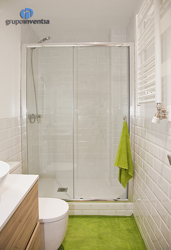 Los cuartos de baño ya contaban con el equipamiento sanitario imprescindible para ofrecer las mejores prestaciones, pero se completaron con elementos decorativos y textiles de colores vivos. De este modo se crea un contraste muy bonito entre el blanco del alicatado de pared y los vivos colores naranja y verde de los diferentes elementos.