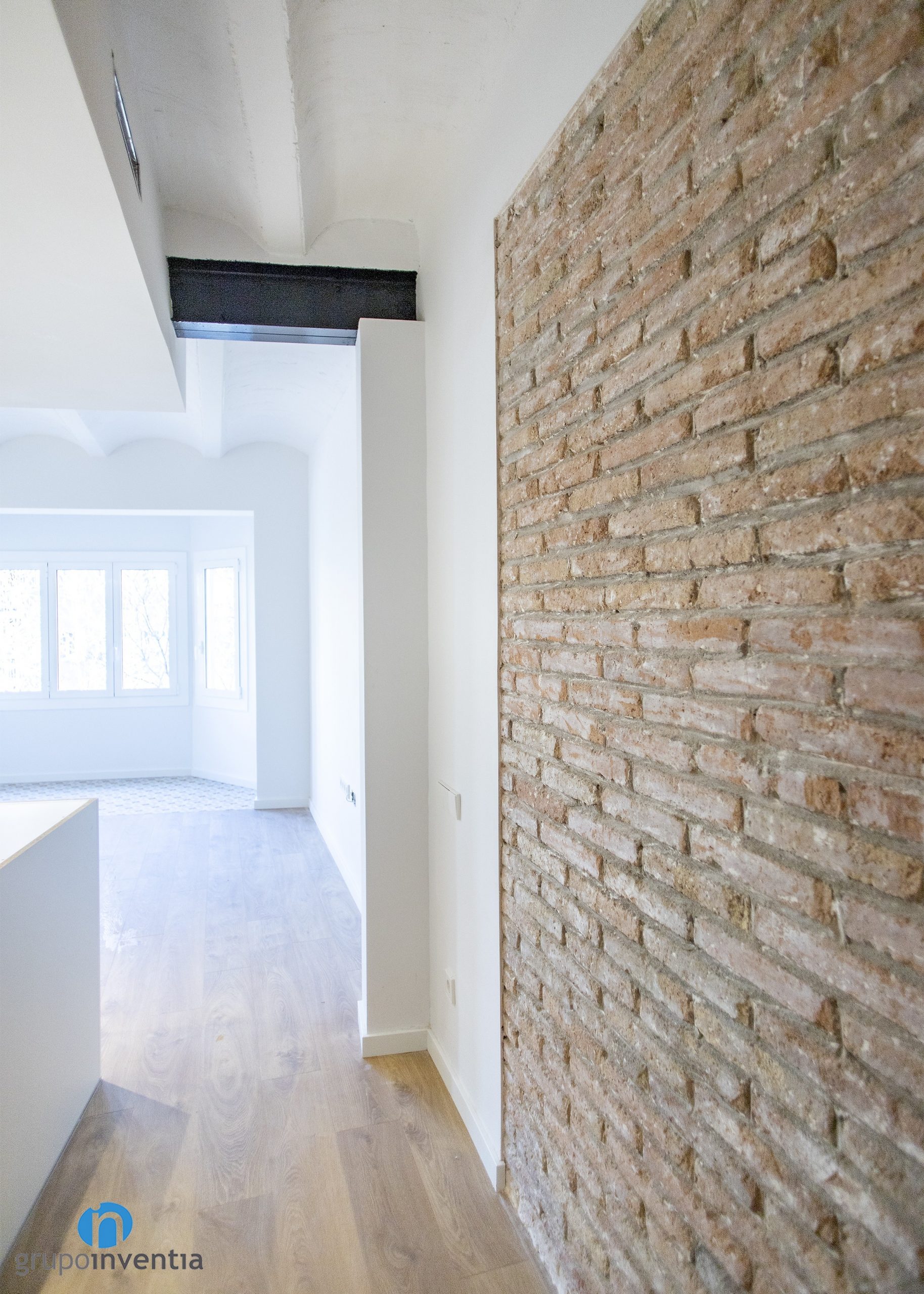 Además de otros elementos nuevos como las puertas correderas o un suelo tipo hidráulico a los pies de la ventana del salón, también se han restaurado y mantenido elementos originales. En este aspecto destaca una pared de ladrillo visto que va desde la entrada hasta el inicio de la cocina y el salón.