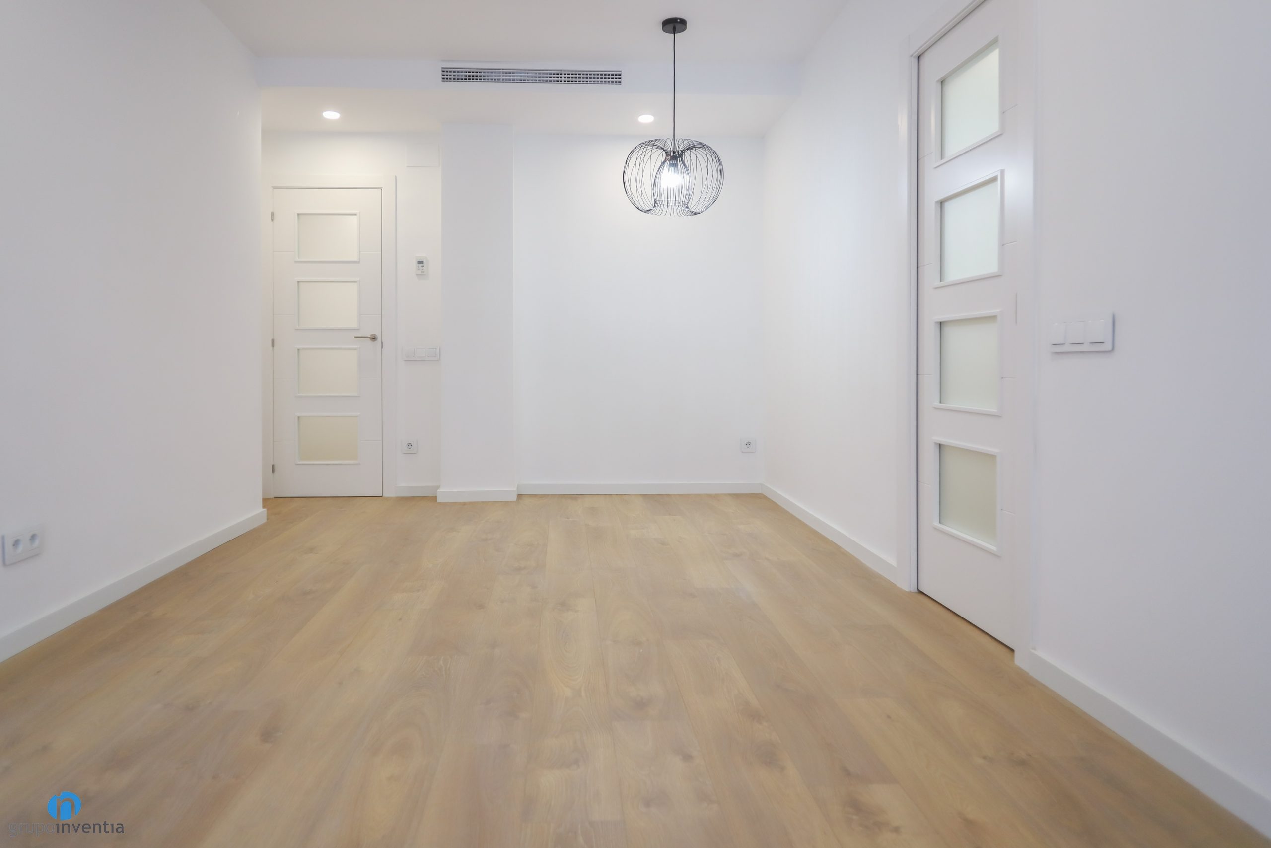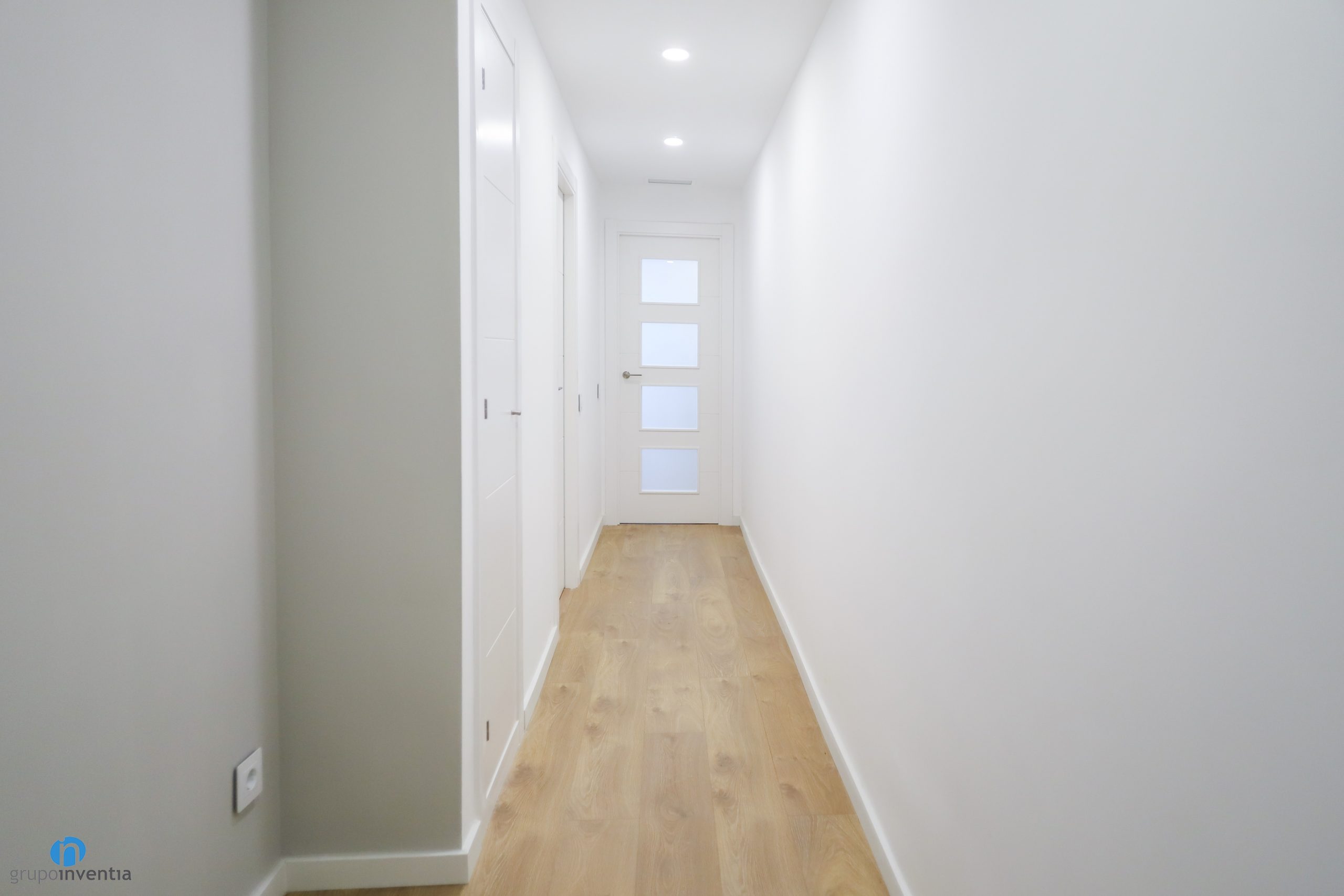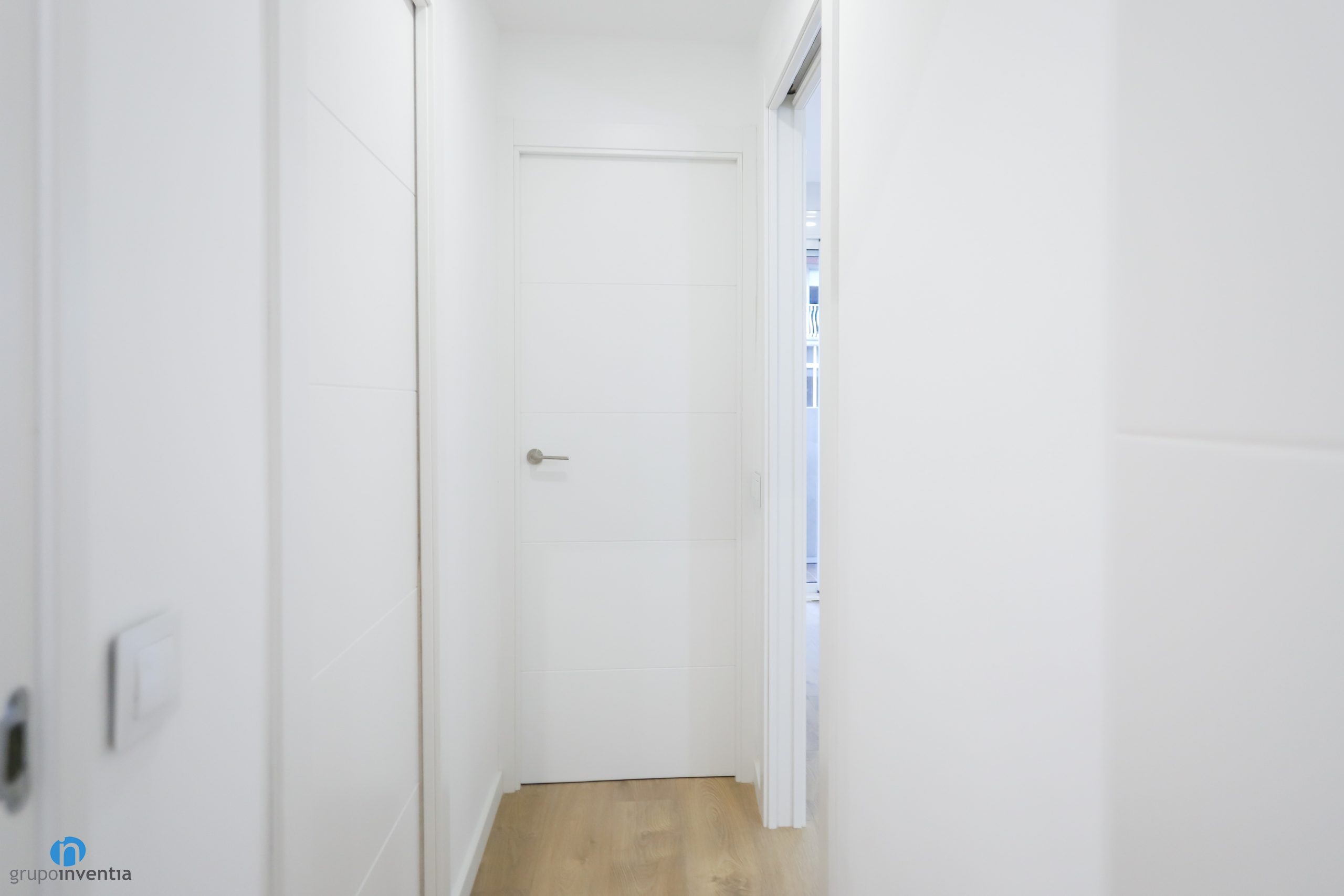 A juego con ello se han colocado las nuevas puertas de color blanco. En Grupo Inventia disponemos de un extenso catálogo con diferentes modelos de puertas. Podrás escoger entre varios estilos y acabados, entre ellas las que se han incluido en este proyecto de interiorismo. Se han combinado tanto puertas de bisagra como puertas correderas, un recuso excelente para aprovechar al máximo el espacio de casa estancia. A su vez los nuevos zócalos también se marcan en color blanco y generan una imagen homogénea perfecta.