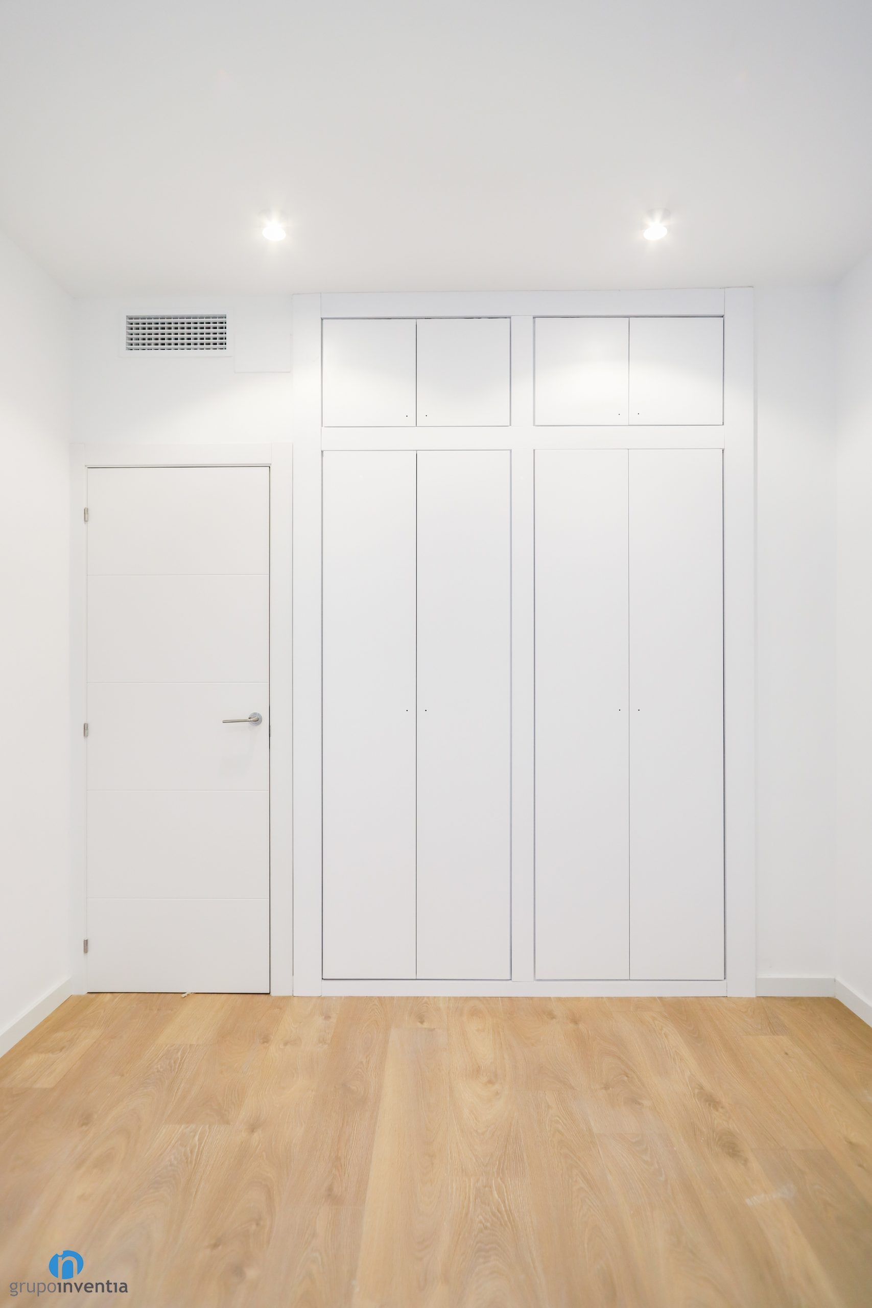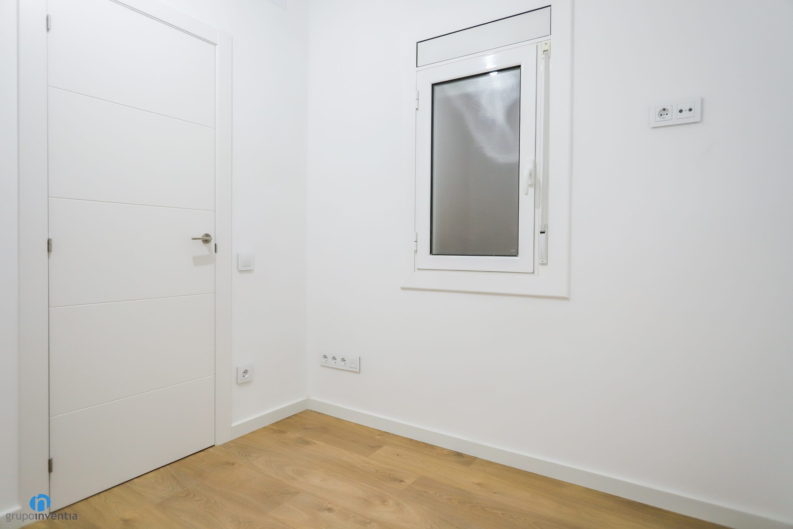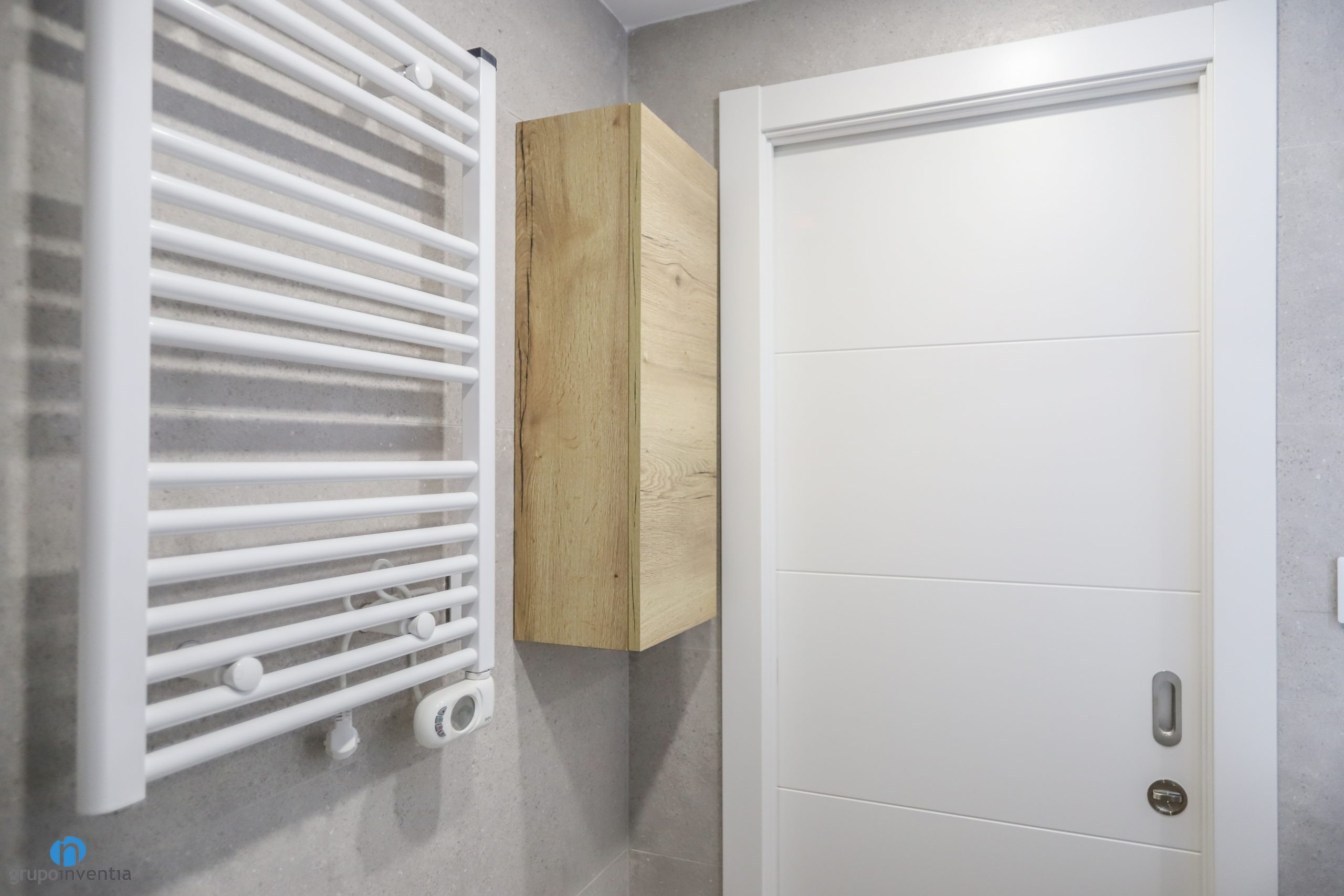 A juego con ello se han colocado las nuevas puertas de color blanco. En Grupo Inventia disponemos de un extenso catálogo con diferentes modelos de puertas. Podrás escoger entre varios estilos y acabados, entre ellas las que se han incluido en este proyecto de interiorismo. Se han combinado tanto puertas de bisagra como puertas correderas, un recuso excelente para aprovechar al máximo el espacio de casa estancia. A su vez los nuevos zócalos también se marcan en color blanco y generan una imagen homogénea perfecta.