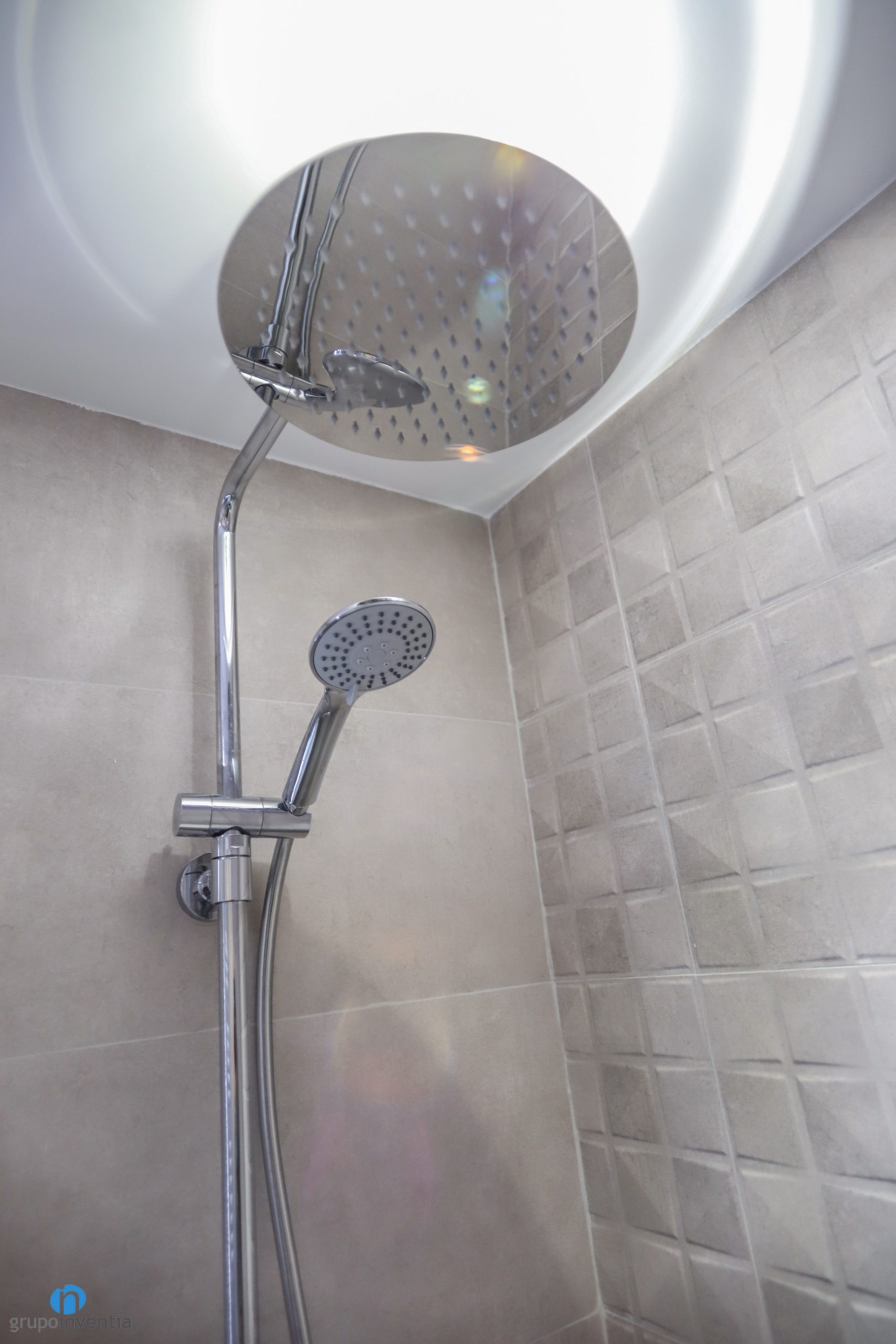 Además de todo el proyecto de interiorismo que hemos detallado nuestros profesionales también se han encargado de reformar dos cuartos de baño. Uno de los nuevos elementos son las nuevas puertas que ya hemos mencionado. En el caso de las reformas de baño se han utilizado puertas correderas, un estilo práctico y funcional.