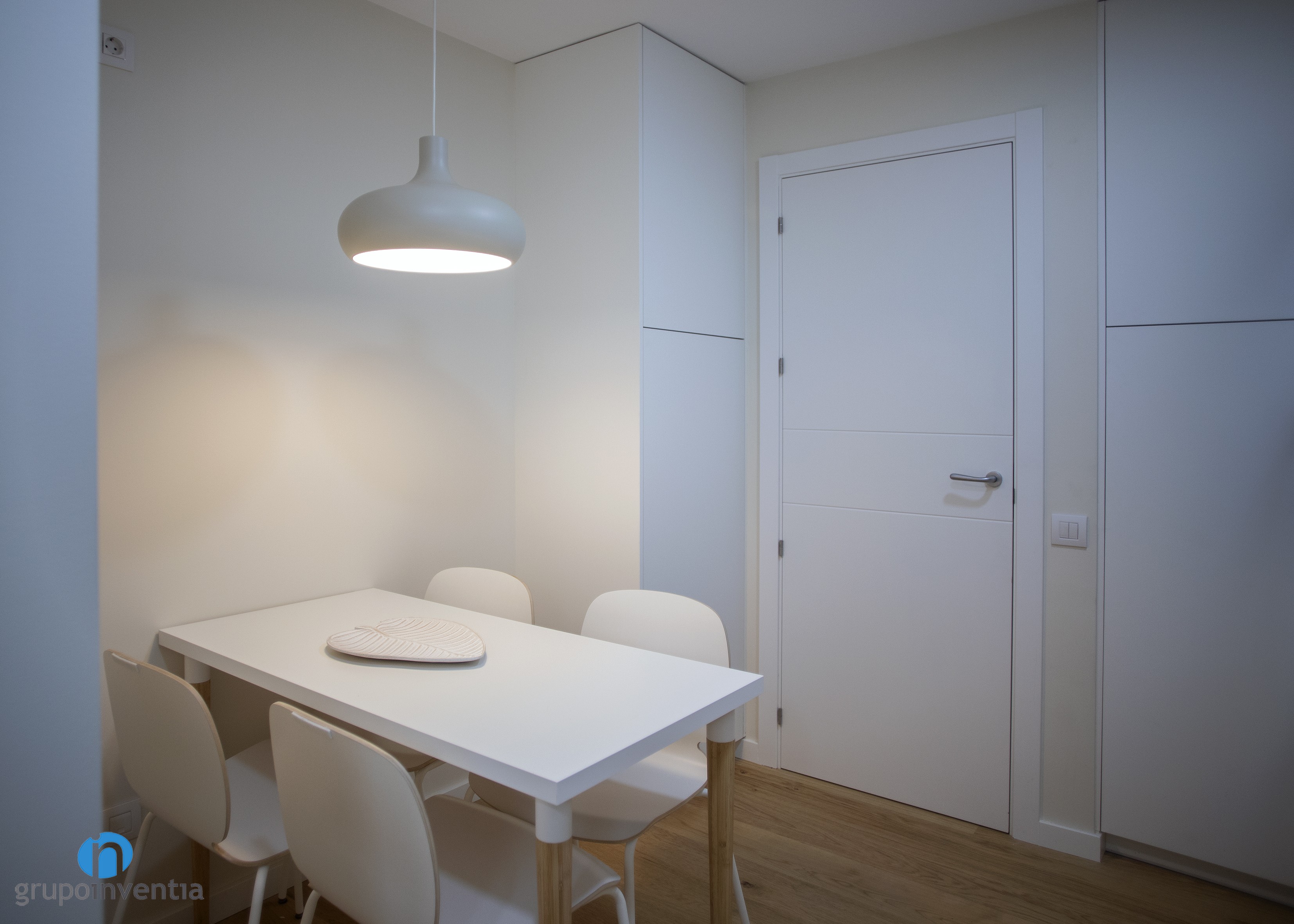 Nada más acceder a la cocina, que ocupa su propia estancia, nos encontramos un espacio dedicado a zona office, equipada con una mesa y varias sillas. De este modo se consigue un espacio perfecto para realizar cualquiera de las ingestas diarias e incluso para recibir a las visitas.