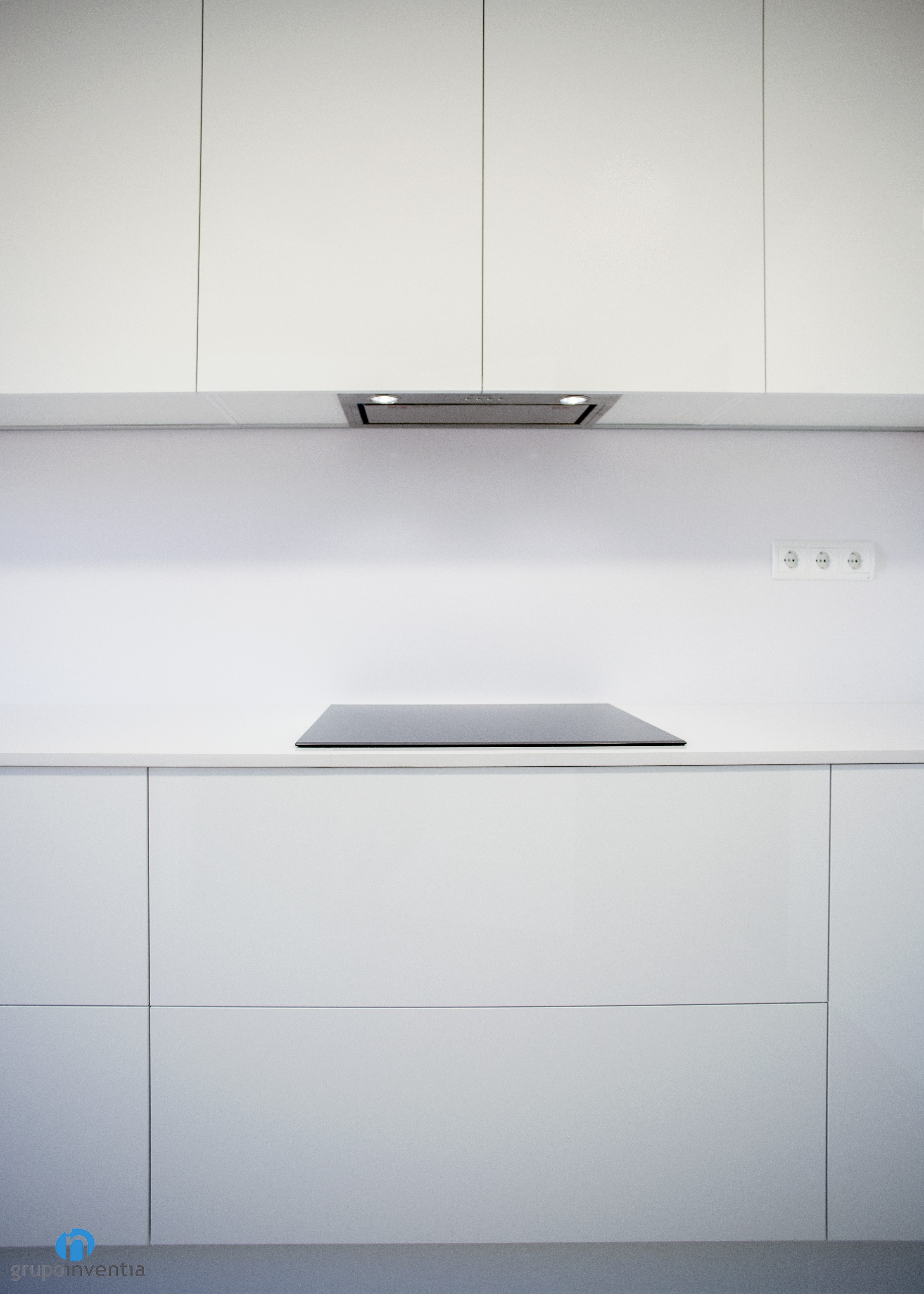 Para la nueva imagen de esta reforma de cocina se optó por conseguir una estancia neutra y que generara sensación de amplitud y luminosidad. El color principal de la estancia es el blanco, utilizado en el mueble de cocina, encimeras y salpicadero.