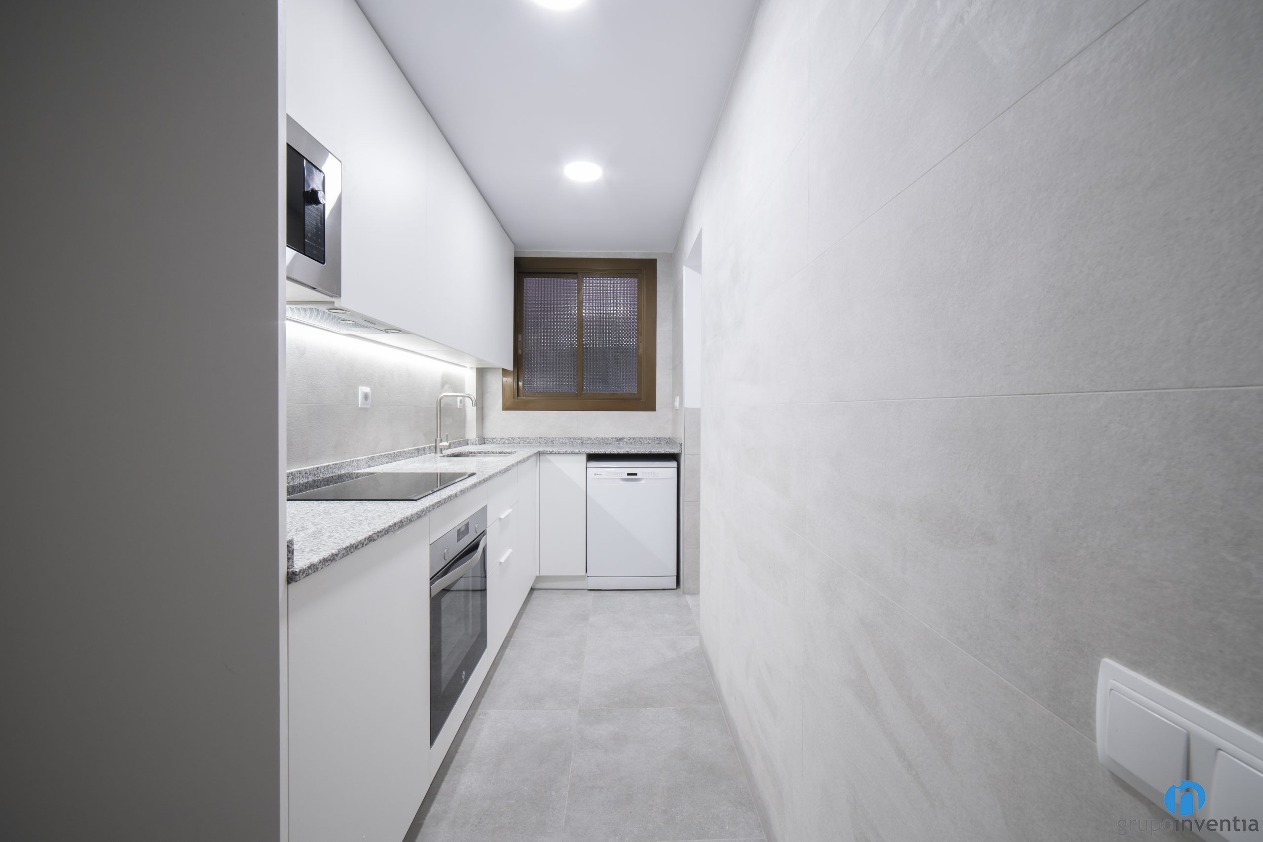 Nos hemos encargado de llevar a cabo una completa reforma de cocina. Ahora dispone de todo lo necesario para ofrecer las mejores prestaciones a diario. La cocina está situada en una estancia independiente y cuenta con una distribución ene forma de L. Además de la cocina en sí, también cuenta con un espacio de galería para colocar la lavadora.