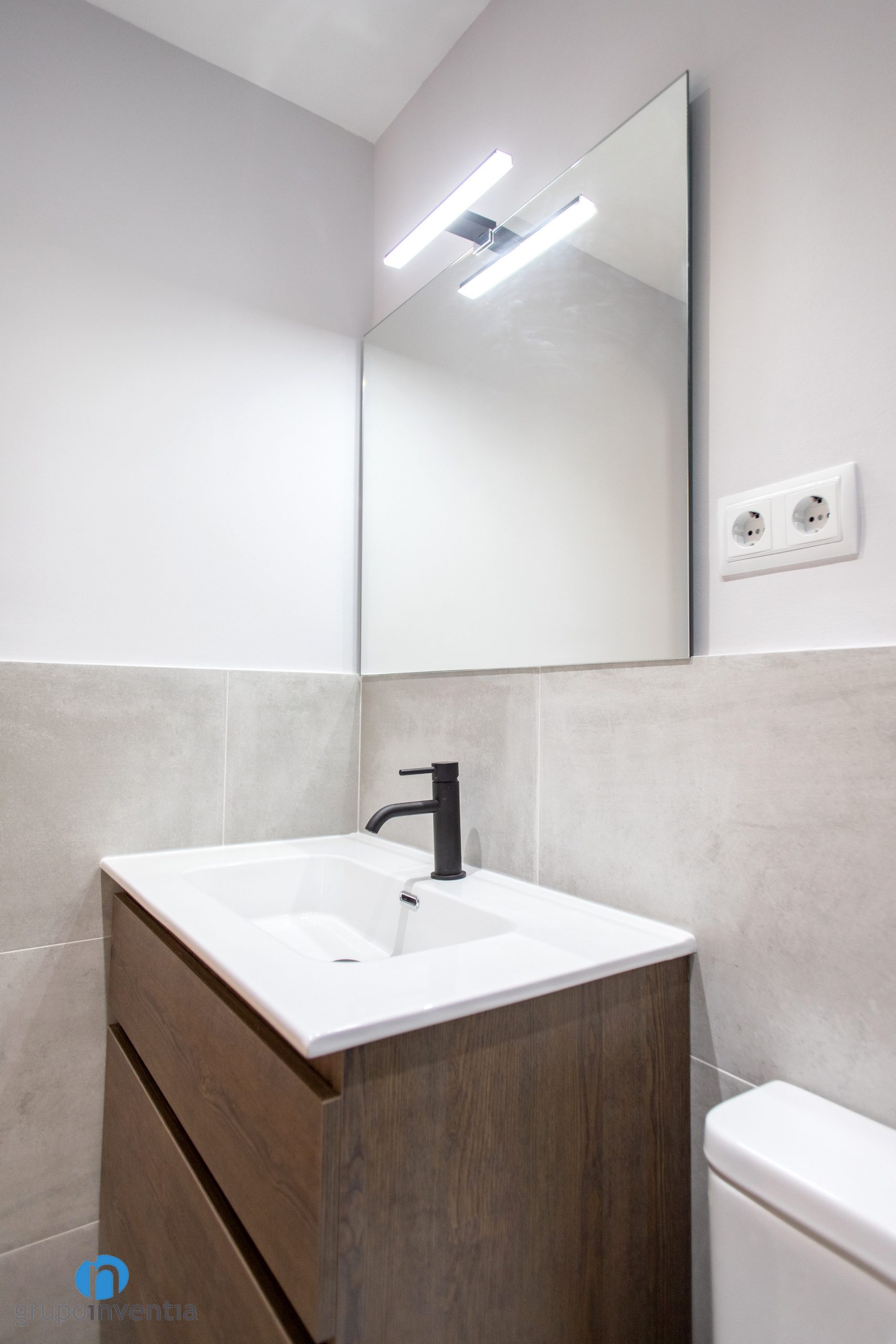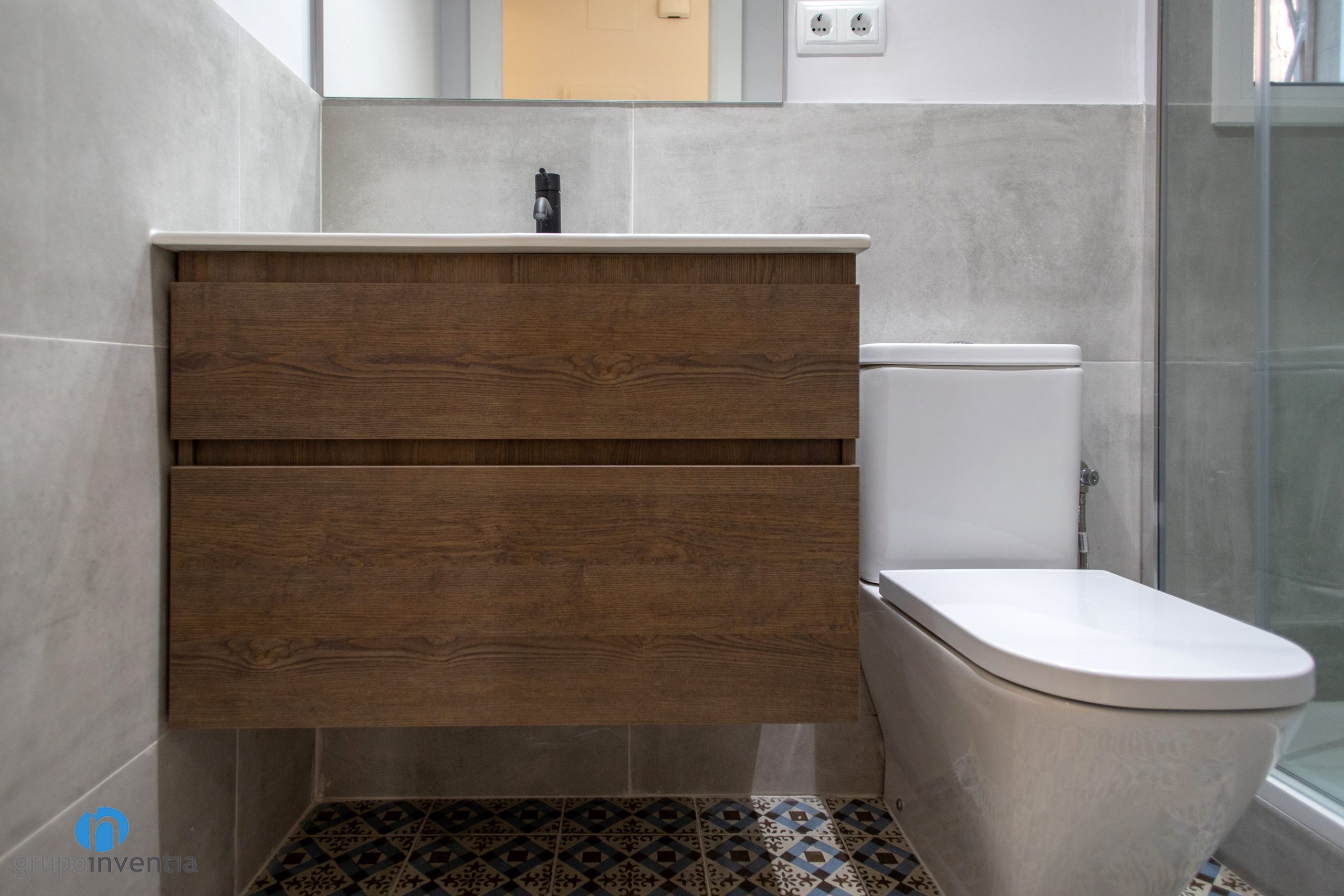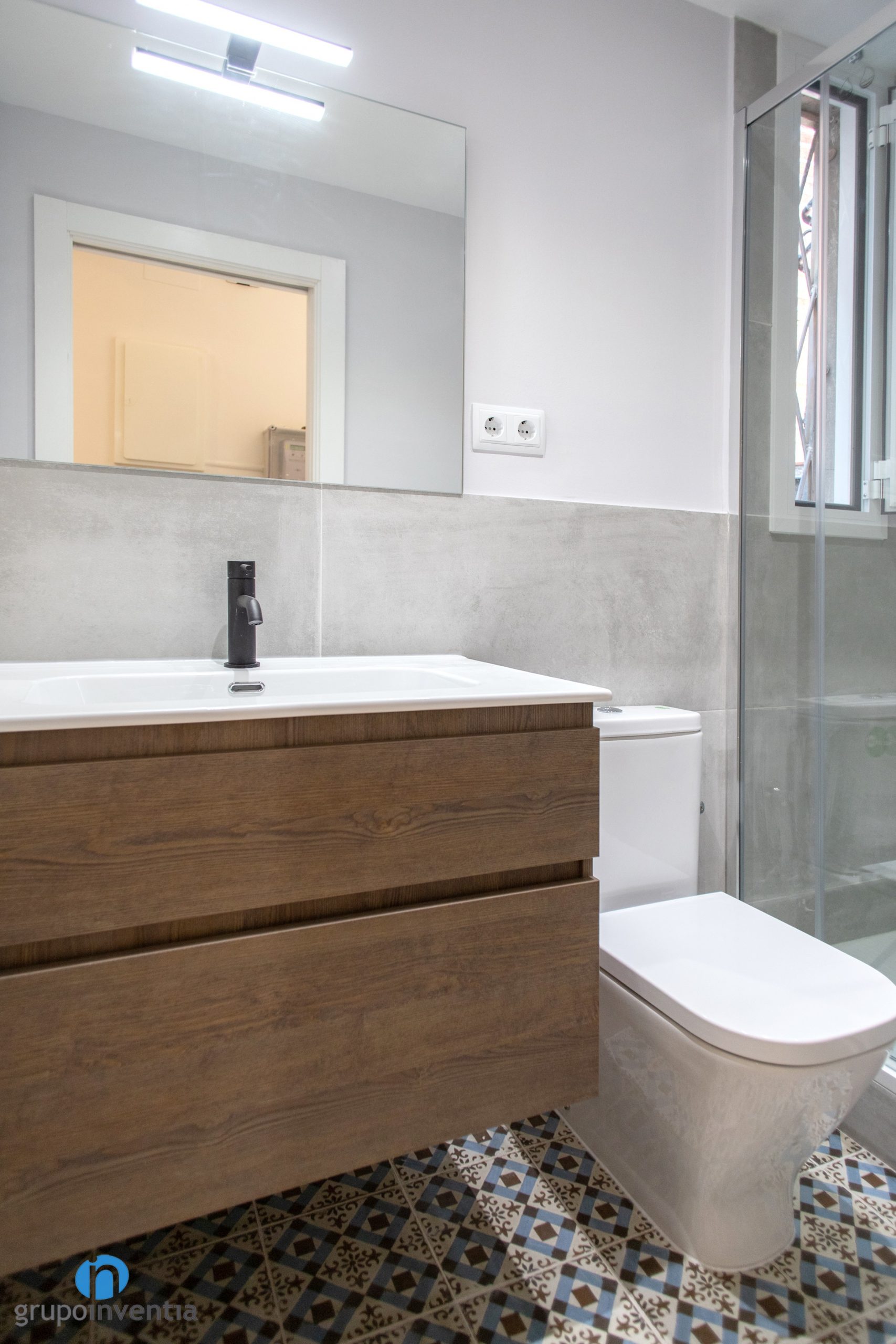 La reforma integral de esta vivienda ha implicado una renovación completa del cuarto de baño. En cuanto a las piezas sanitarias, ahora cuenta con un lavabo con mueble de almacenaje incorporado, un inodoro y un plato de ducha. La reforma de baño ha dado lugar a un espacio que ofrece las mejores prestaciones y funcionalidad en su uso.
