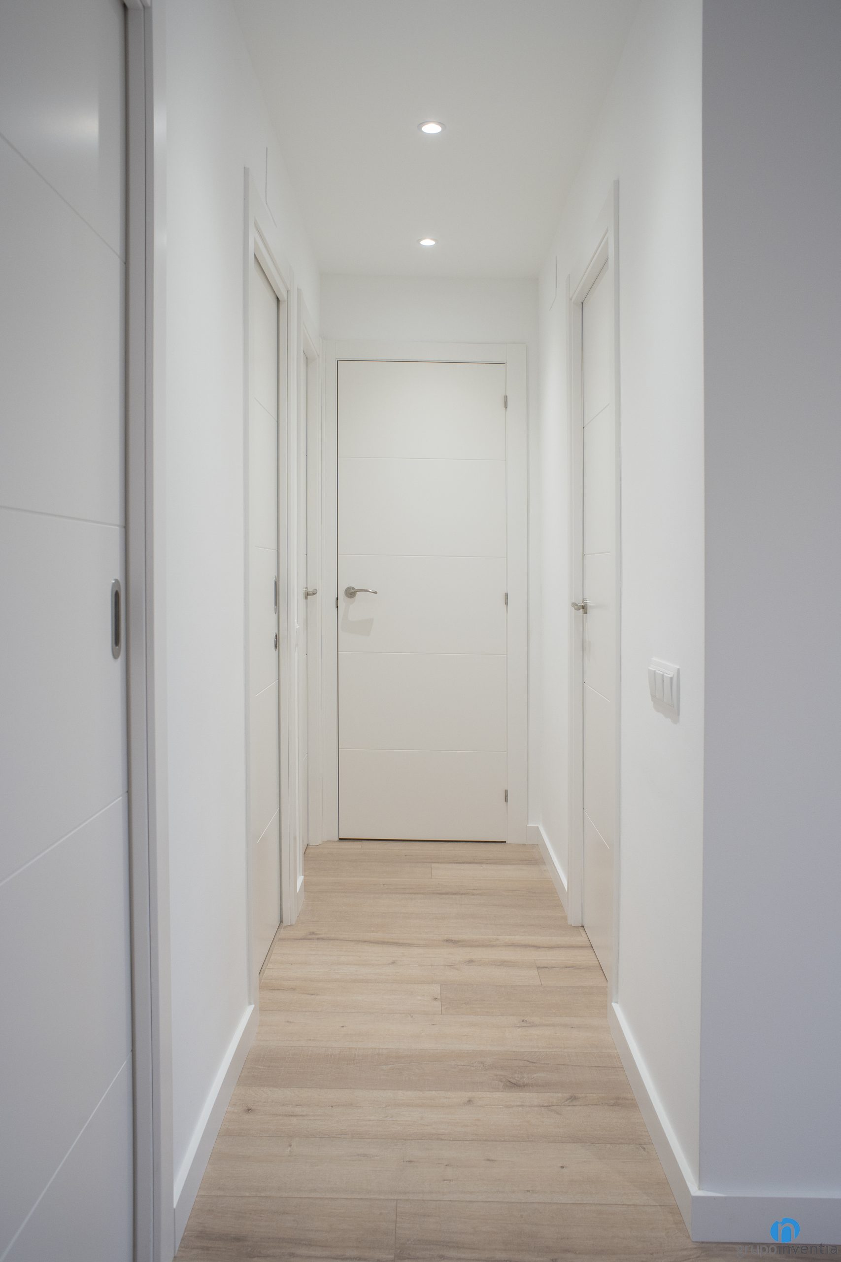 Se ha optado por un trabajo clásico y fiable que garantiza espacios luminosos y visualmente amplios. Las paredes de este piso se han pintado de blanco, el mismo color utilizado en los nuevos marcos y puertas. De este modo se aprovechan al máximo las entradas de luz natural, ya que puede llegar a todos los rincones.