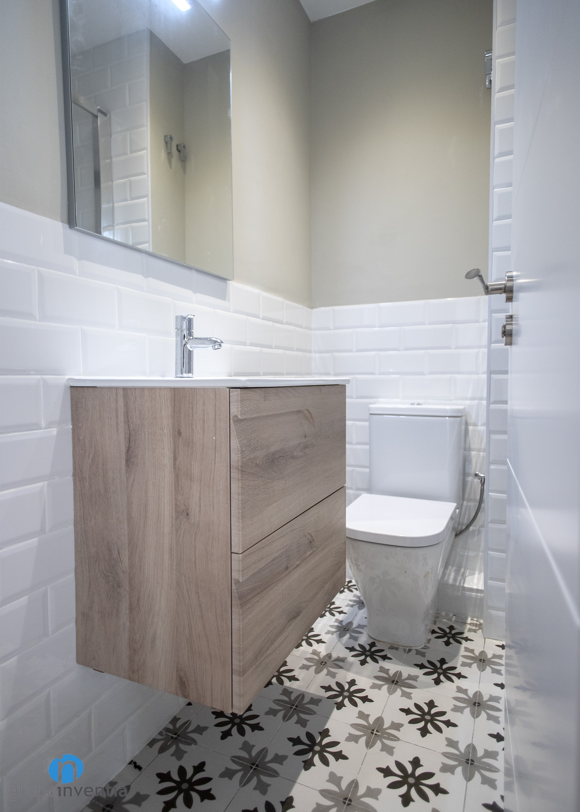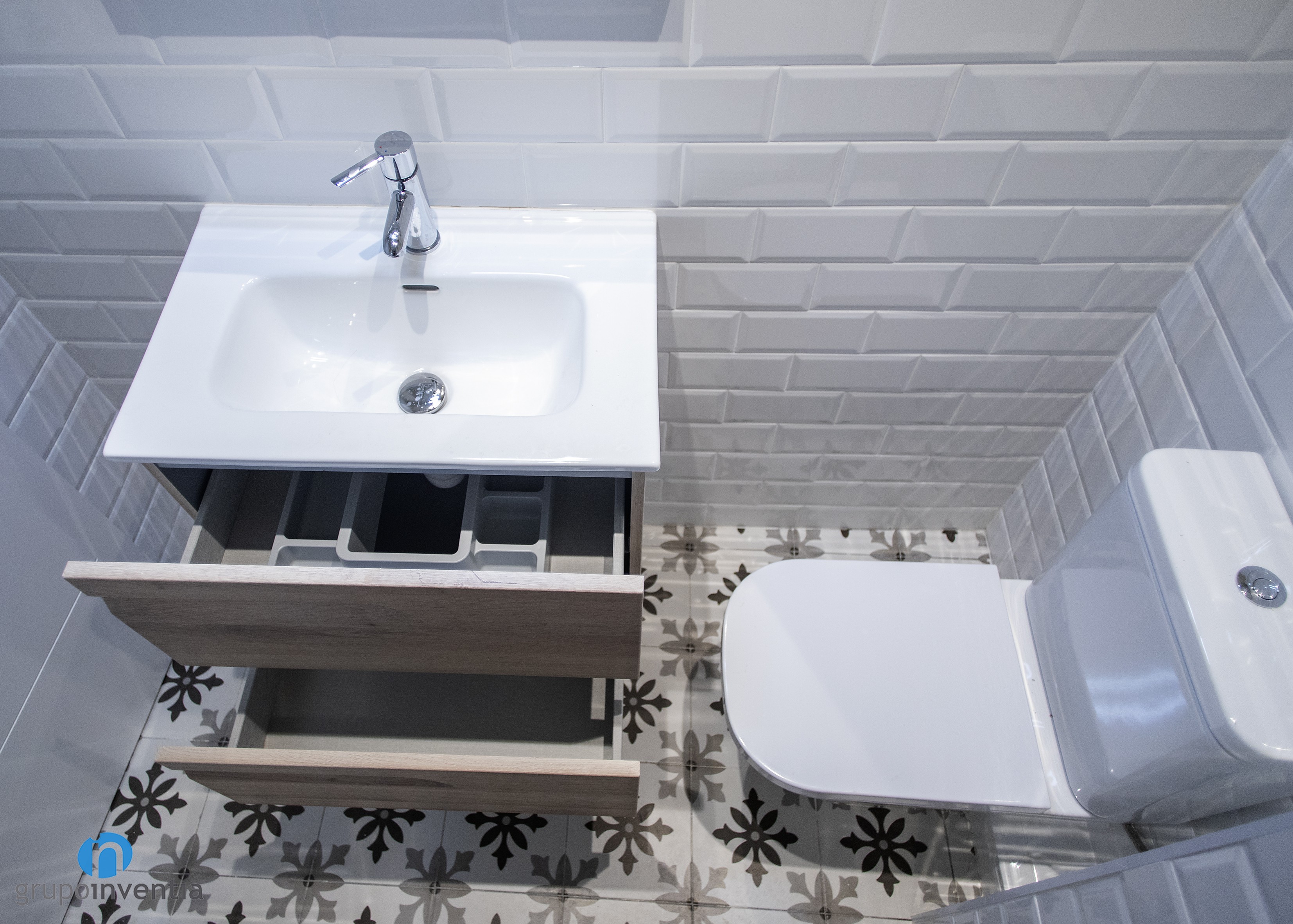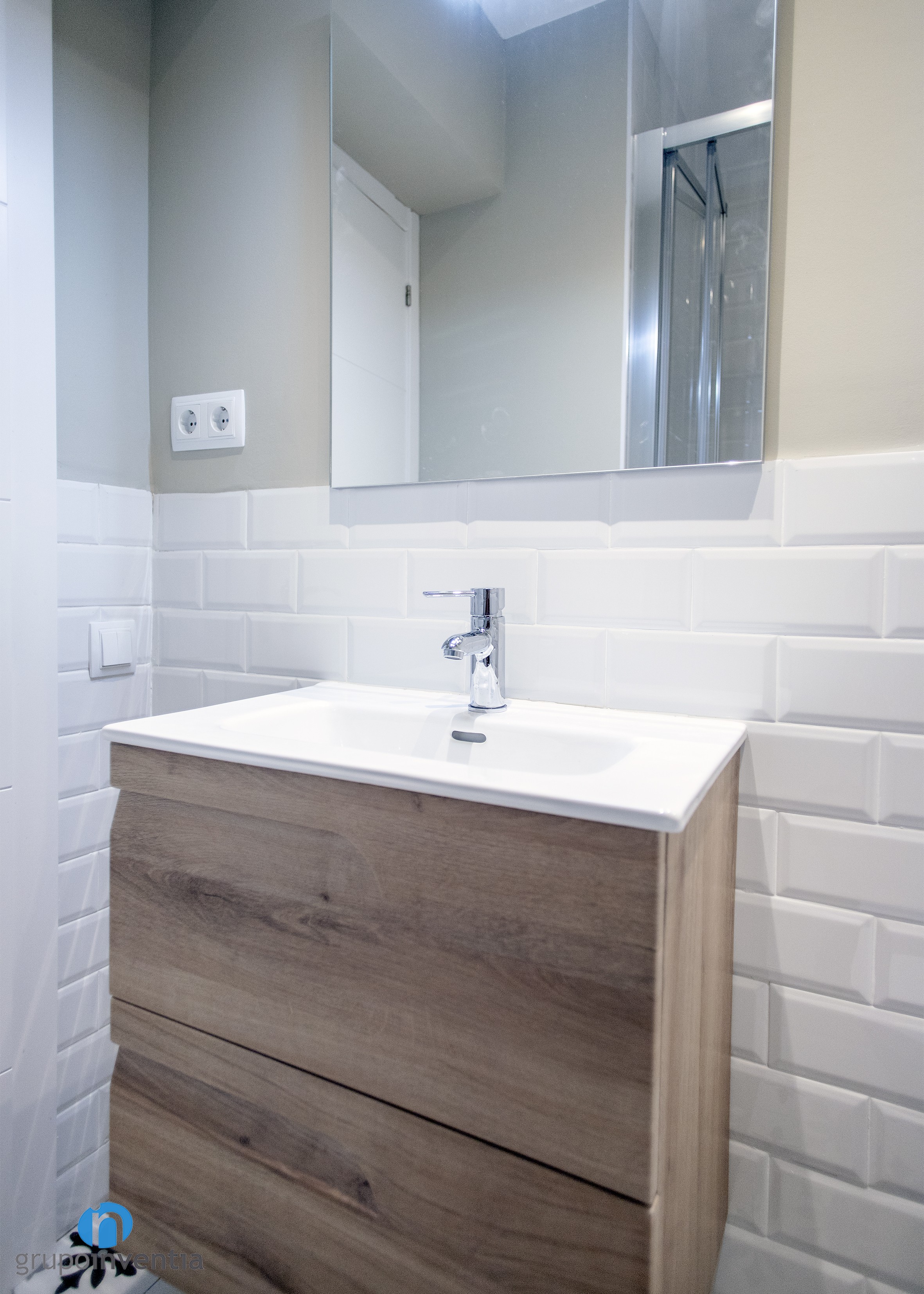 La vivienda contaba con dos cuartos de baño y, pese a la diferencia de tamaño entre ambos, cuentan con los mismos elementos sanitarios. Cada reforma de baño se equipó con un lavabo con mueble de almacenaje incorporado, un inodoro y una ducha. En líneas generales se trata de dos estancias listas para ofrecer las mejores prestaciones.