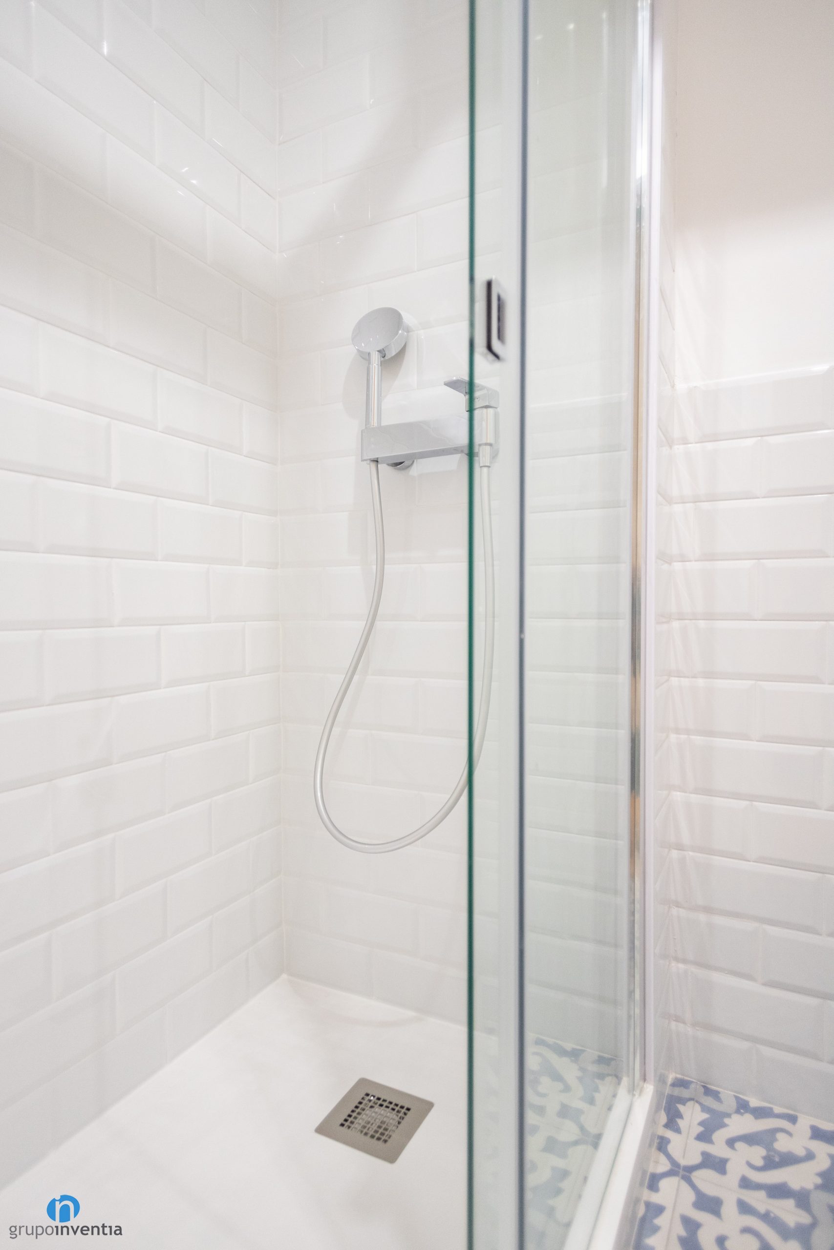 La nueva imagen de los dos cuartos de baño responde al estilo general de toda la vivienda. Aquí también se ha seguido un estilo contemporáneo para conseguir espacios luminosos y amplios. Las paredes se han alicatado con azulejos biselados de color blanco y se ha instalado un suelo tipo hidráulico. En líneas generales unas reformas de baño que responden a las necesidades actuales.