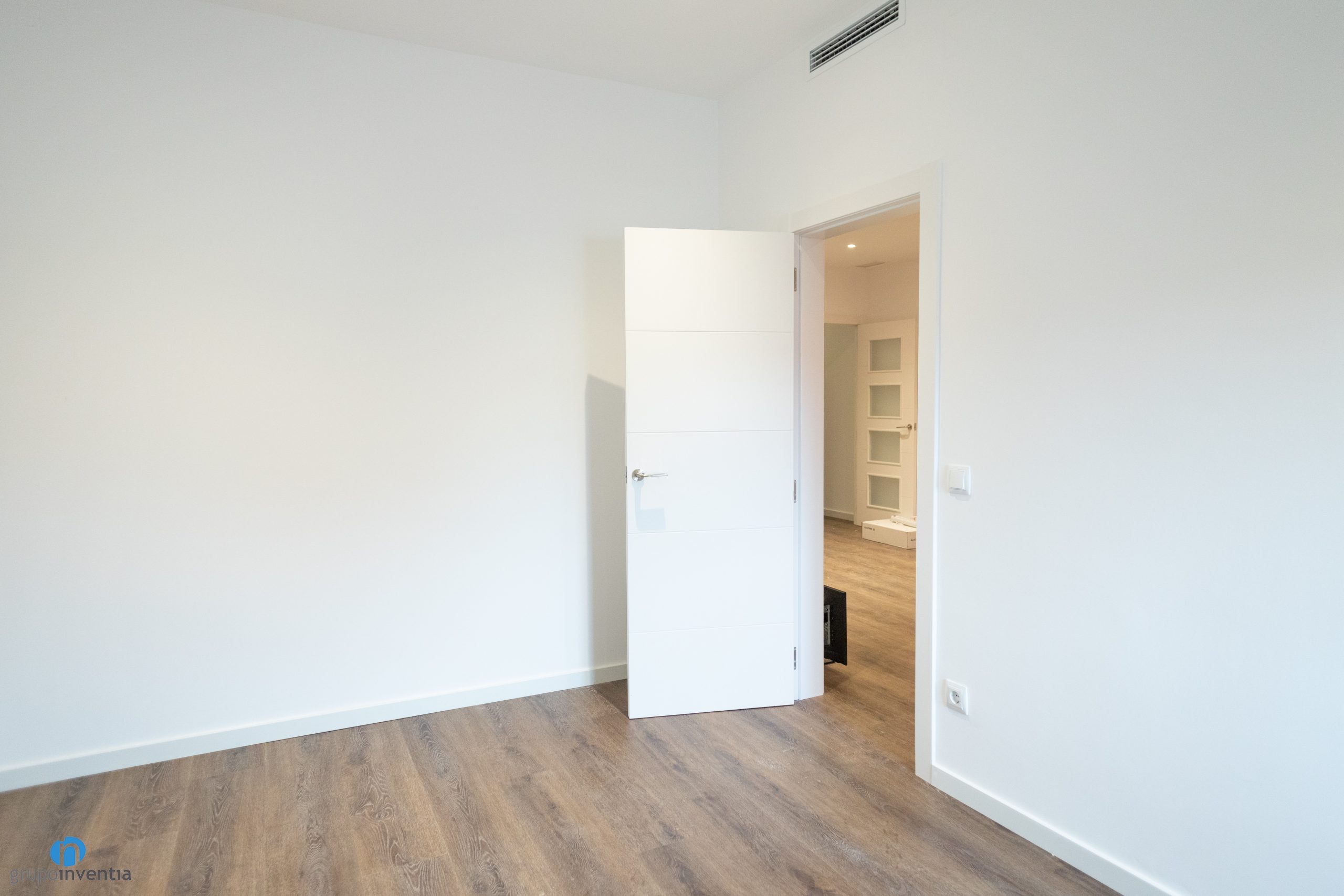 A su vez elementos como las nuevas puertas o los zócalos también se presentan en color blanco. Una imagen neutra y acogedora que ofrece amplias facilidades a la hora de decorarla. Otra de las mejoras que se han realizado en esta reforma integral es el cambio de pavimento. Ahora la superficie de la vivienda luce un suelo con acabados de madera en tonos medios. La guinda del pastel para conseguir un hogar luminoso, acogedor y cálido.