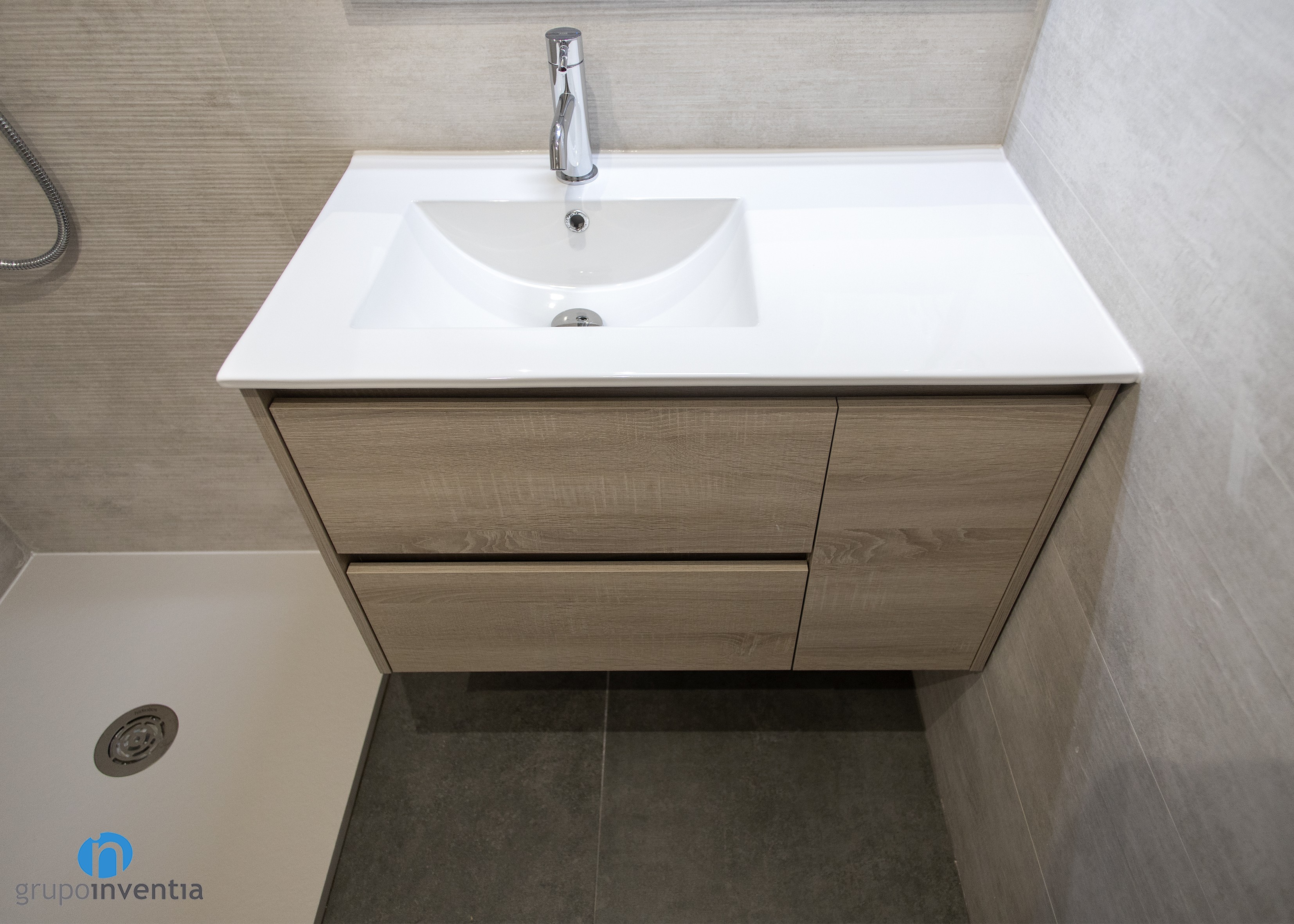Ambas reformas de baño se equiparon por completo. Ahora las estancias están listas para ofrecer las mejores prestaciones en su uso. De este modo, el nuevo equipamiento sanitario se compone de un lavabo con mueble de almacenaje incorporado en su zona inferior, un inodoro y una ducha.