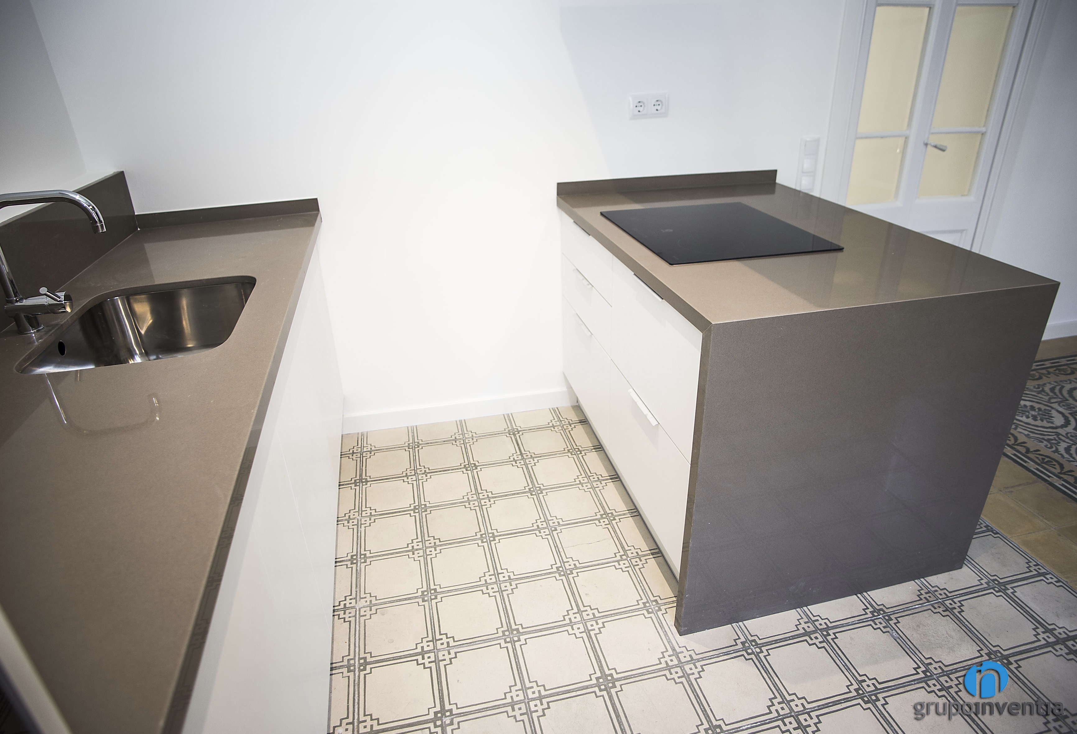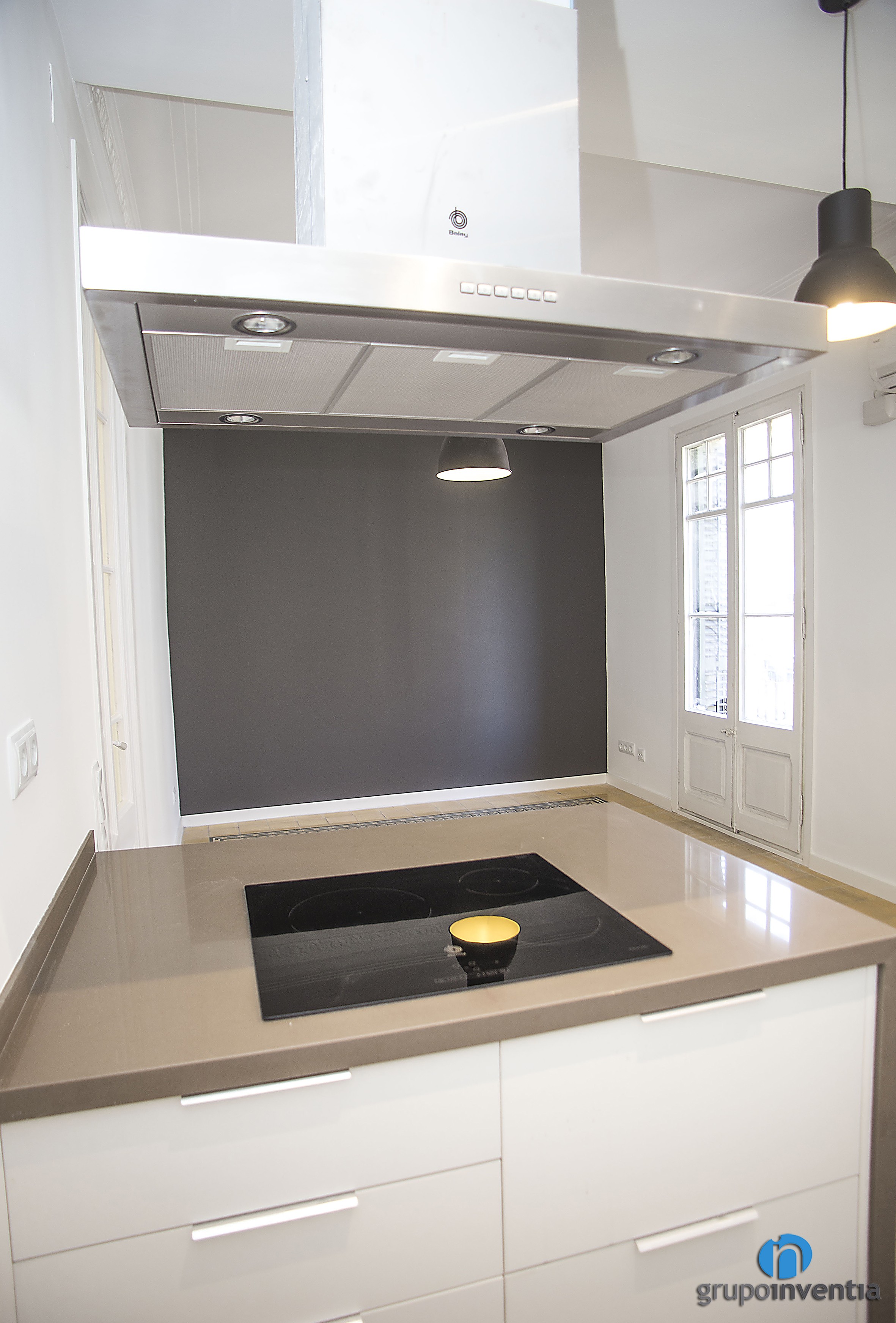 Justo delante se colocó una nueva encimera, equipada con una placa vitrocerámica y que puede utilizarse como barra de cocina. Se trata de una opción muy cómoda para realizar pequeñas ingestas sin necesidad de desplazarse a la mesa.