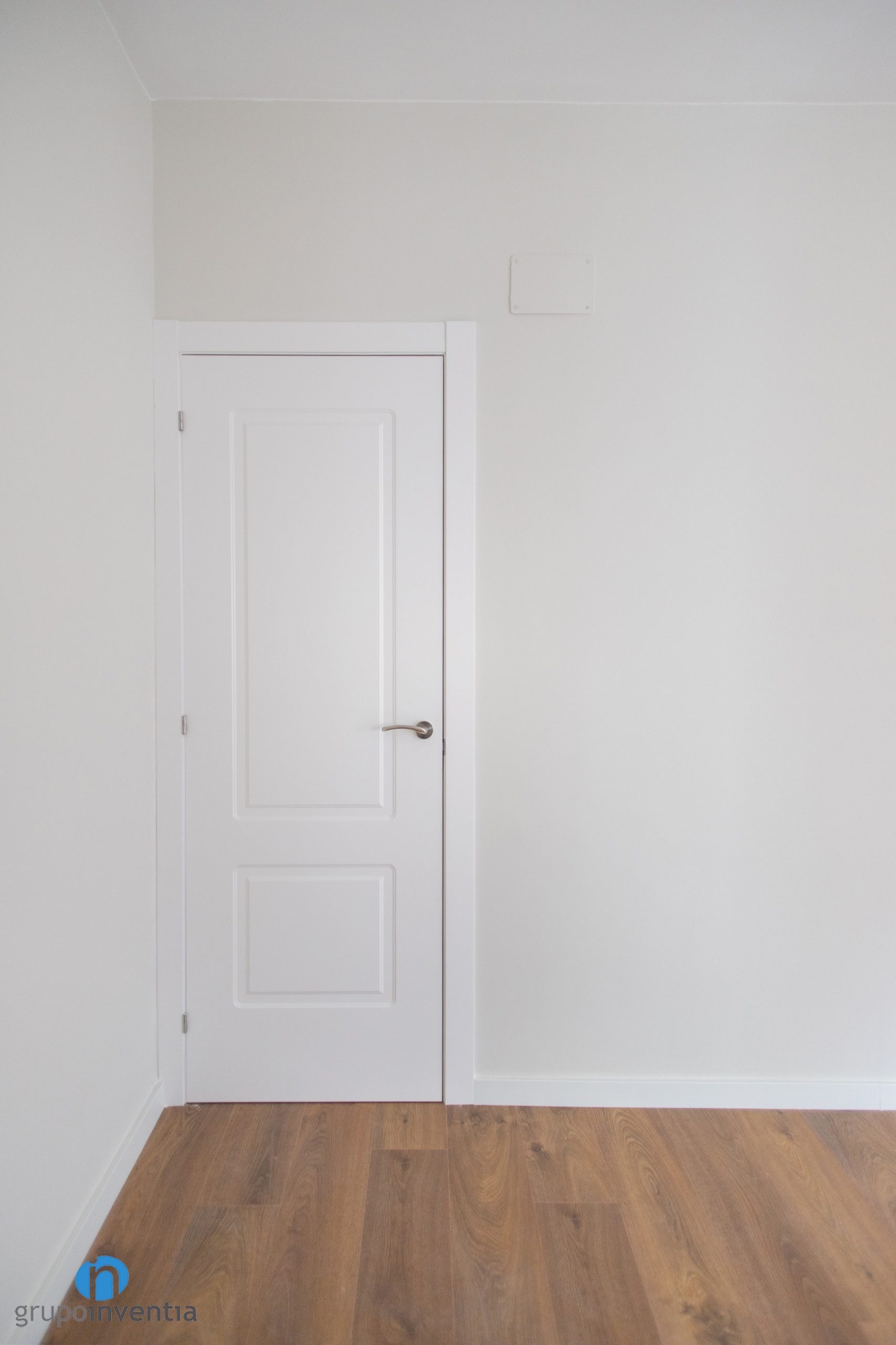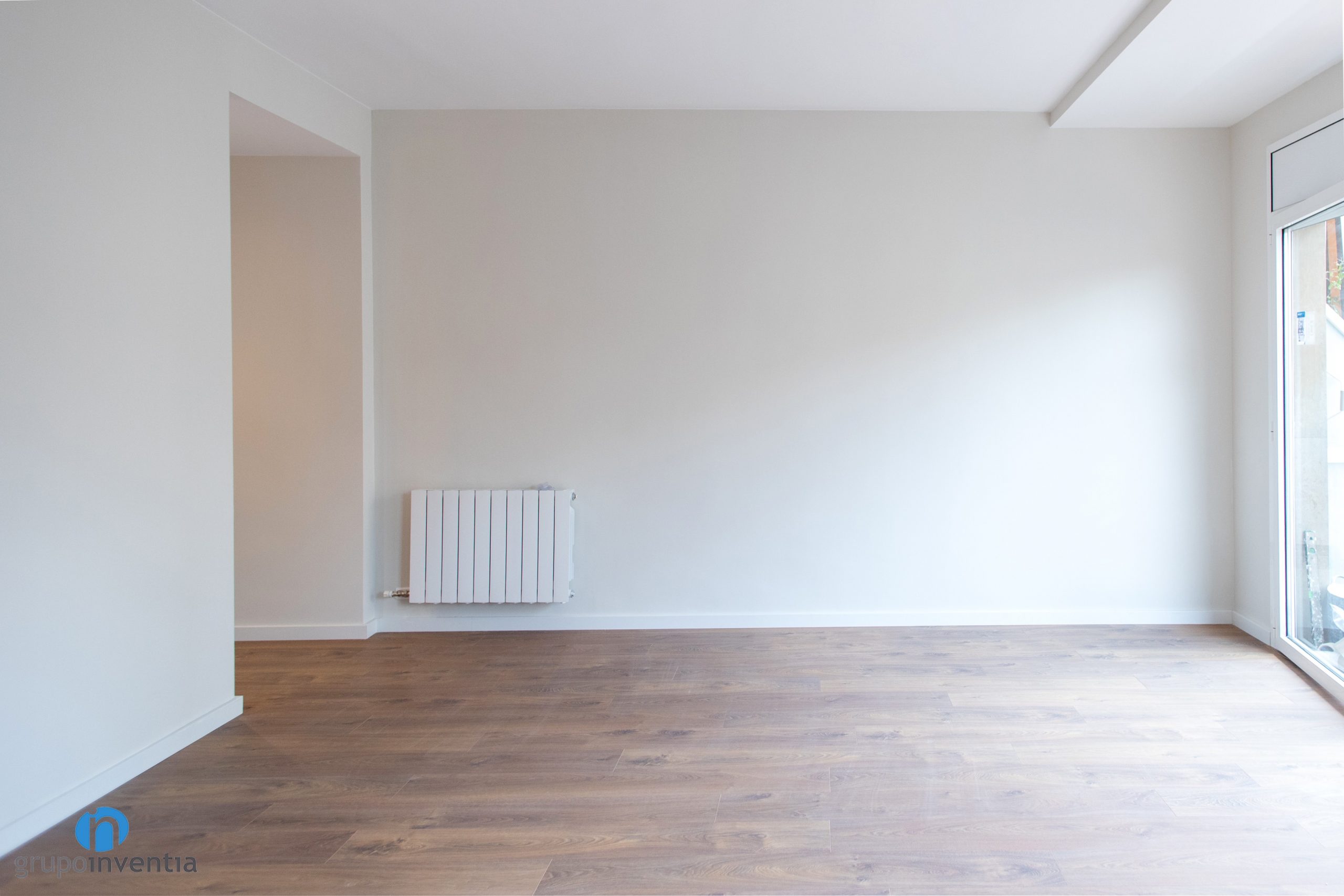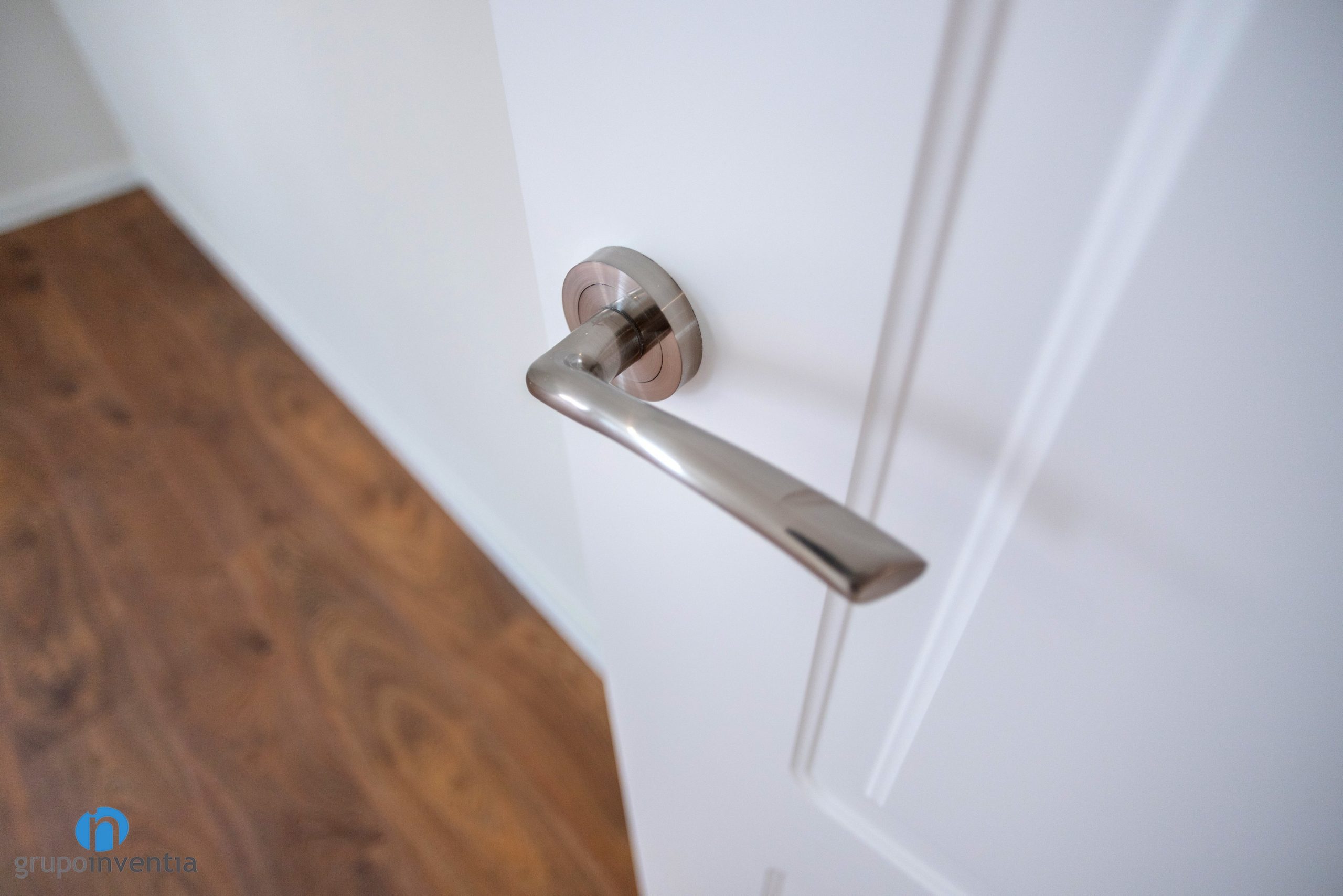 Las paredes del salón, dormitorios, pasillo, etc. se han pintado con una tonalidad suave de beige. Este color genera un ambiente agradable y acogedor. A su vez permite introducir otros acabados, como las puertas de color blanco que se han colocado. La imagen general se completa con un suelo de parquet en tonos medios de madera. Una opción perfecta a nivel visual.