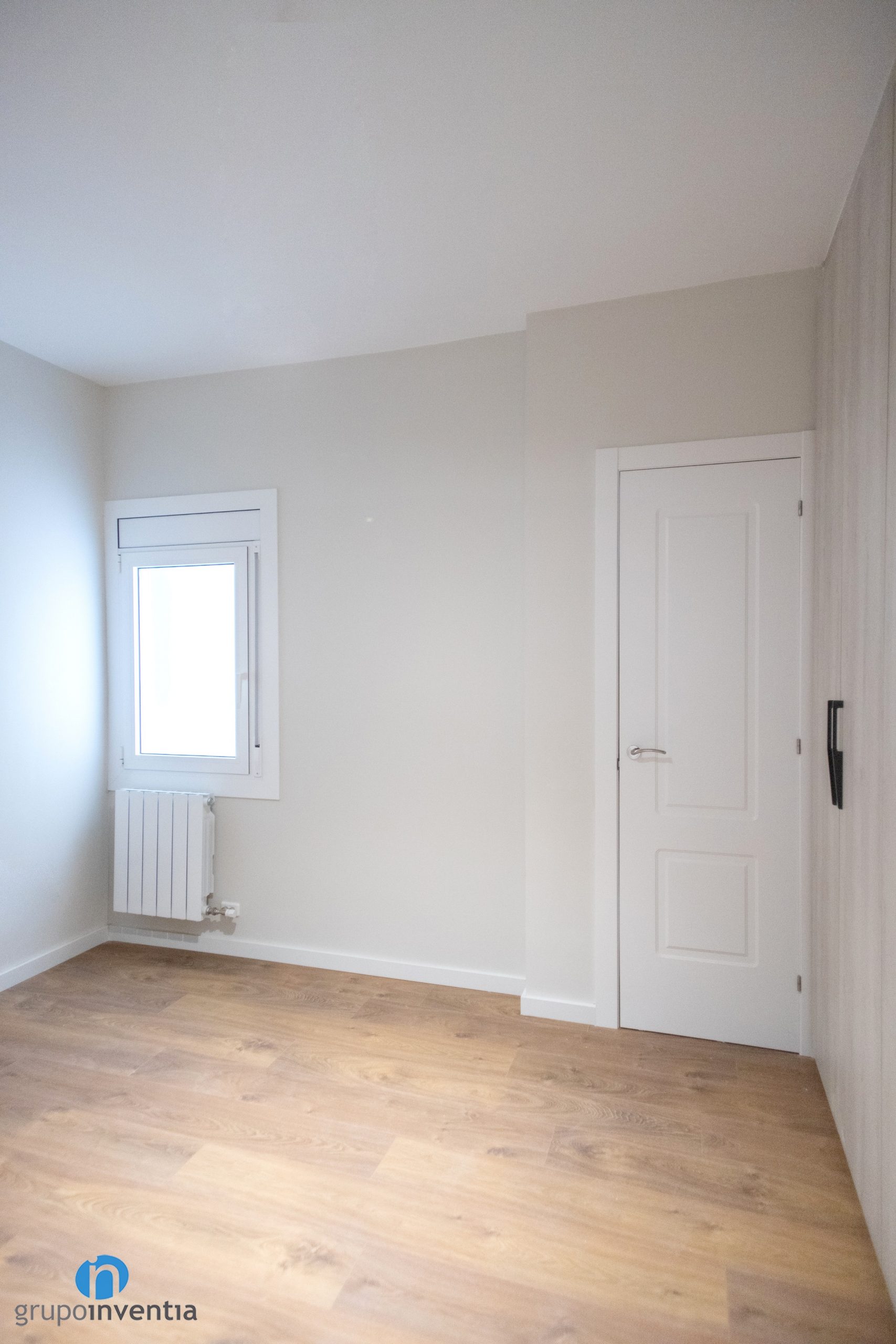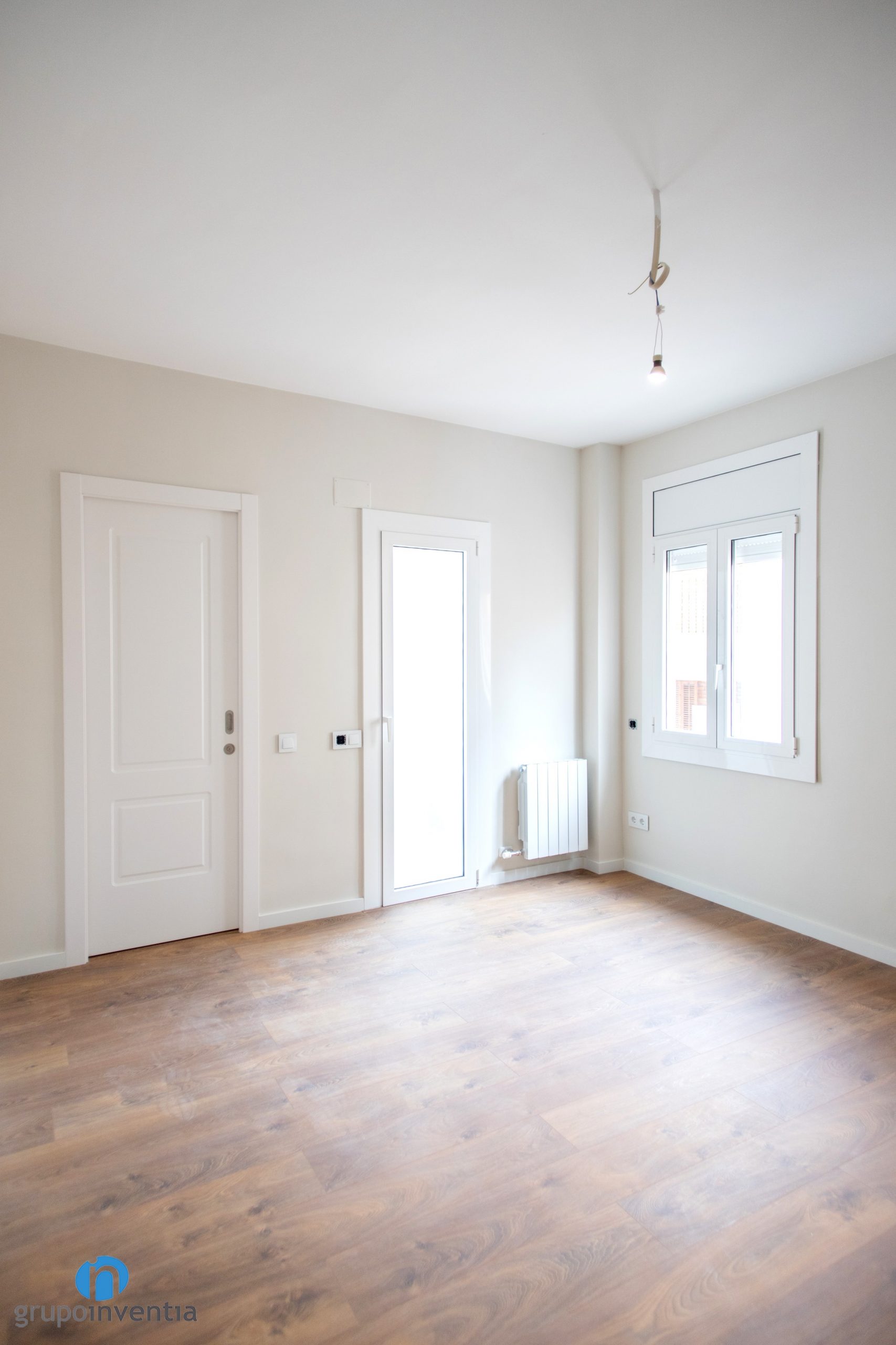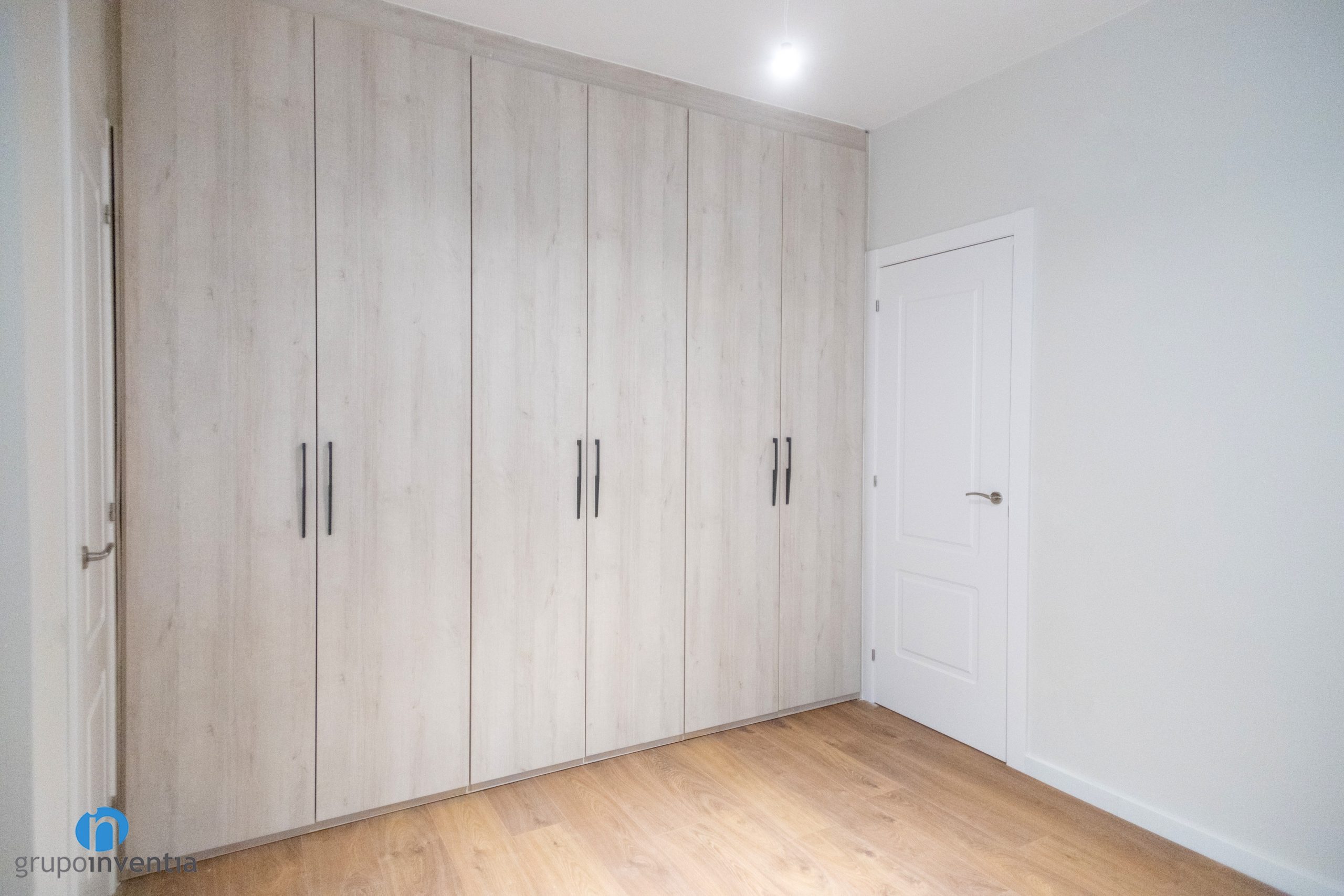Las paredes del salón, dormitorios, pasillo, etc. se han pintado con una tonalidad suave de beige. Este color genera un ambiente agradable y acogedor. A su vez permite introducir otros acabados, como las puertas de color blanco que se han colocado. La imagen general se completa con un suelo de parquet en tonos medios de madera. Una opción perfecta a nivel visual.