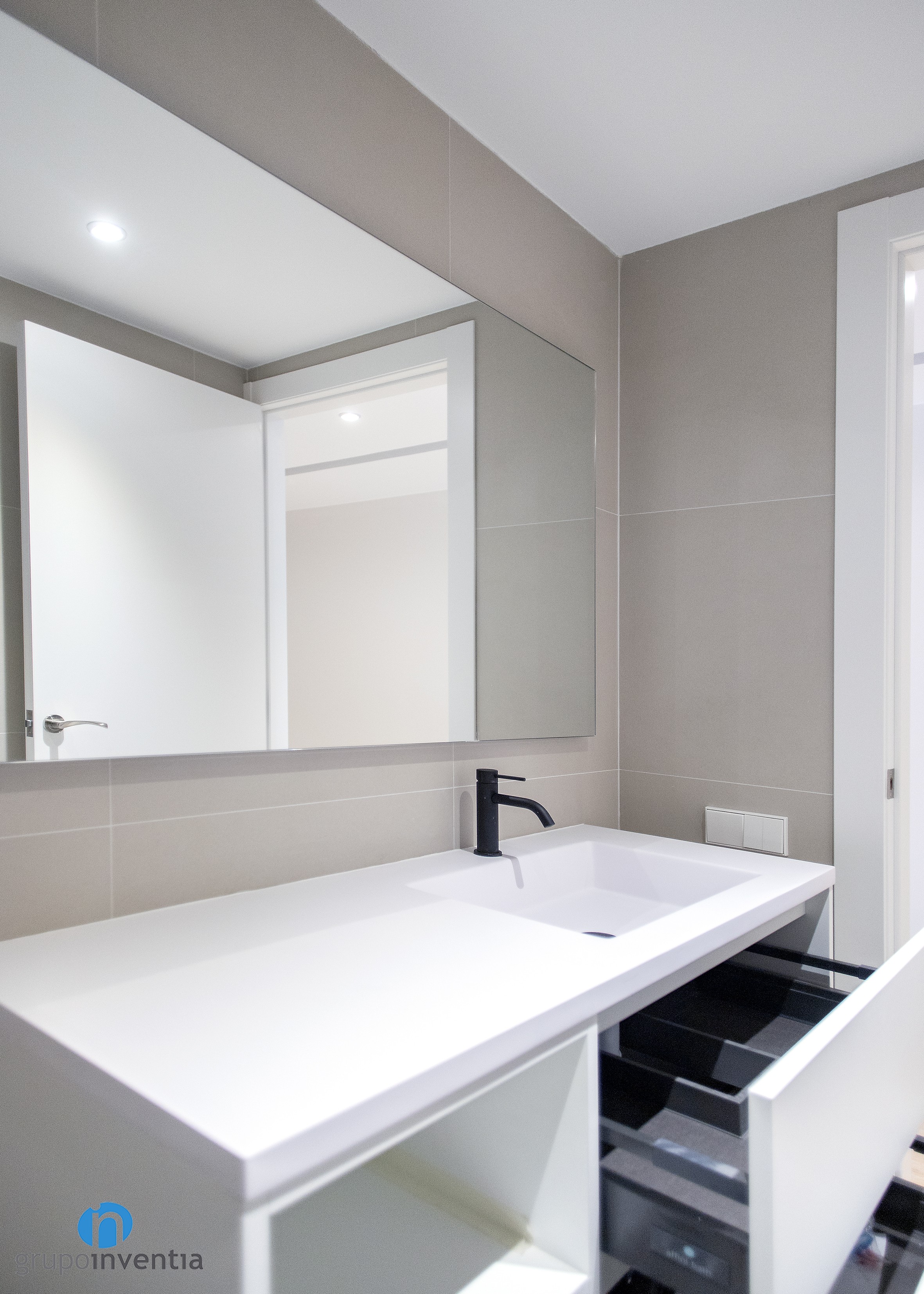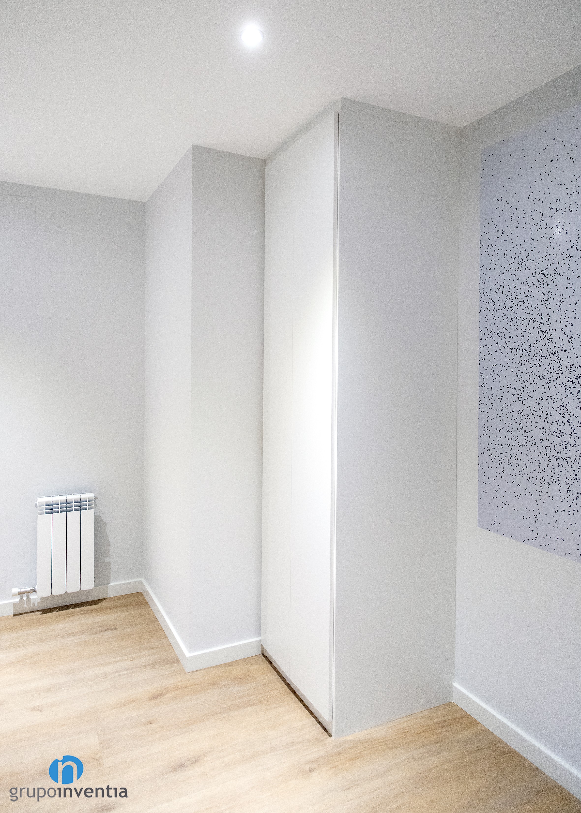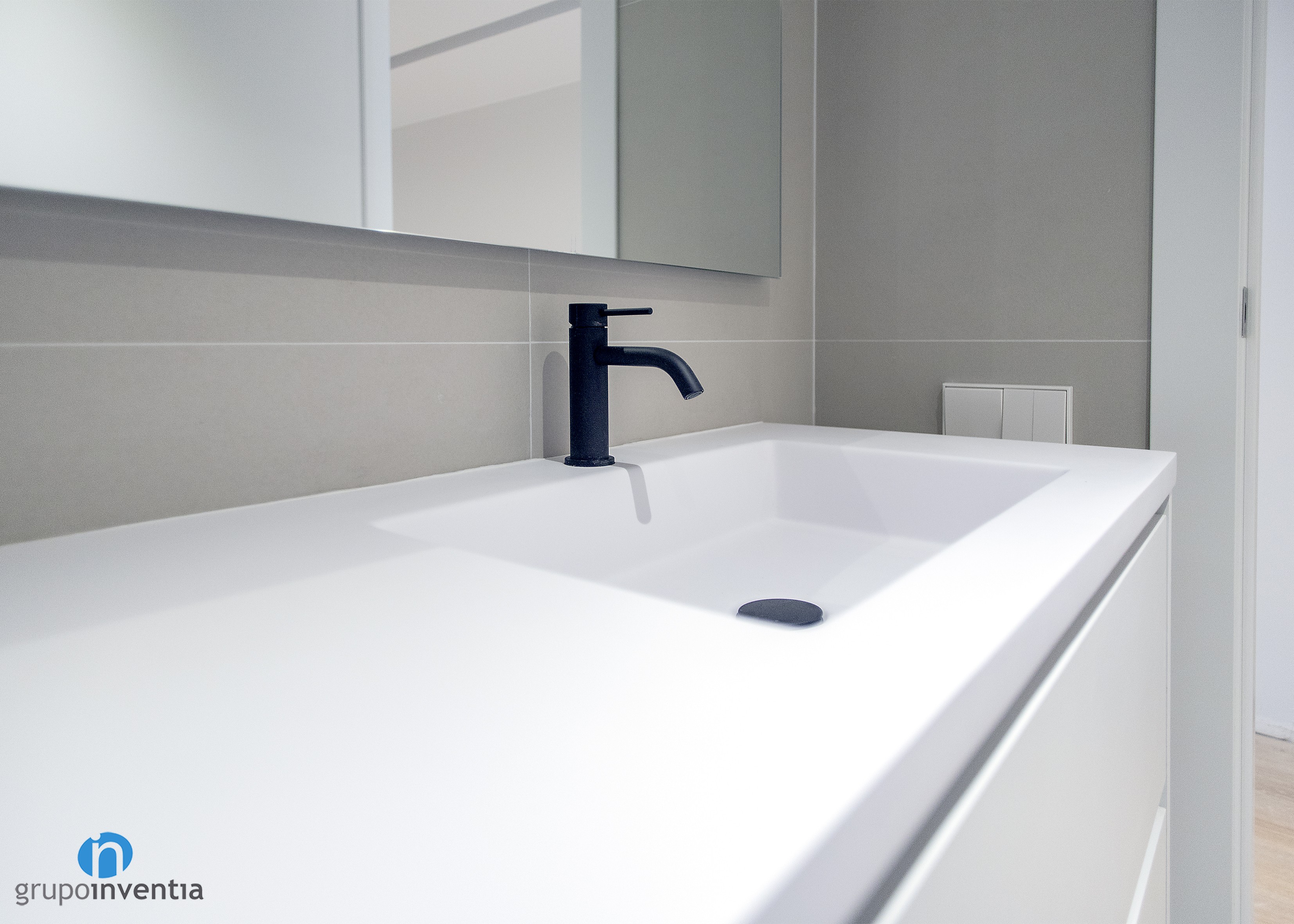 Como hemos mencionado, tras el trabajo realizado por el equipo de Grupo Inventia, la vivienda luce un estilo contemporáneo y moderno en todas las estancias. El objetivo era el de conseguir espacios acogedores y que generaran amplitud y luminosidad. Para pintar las paredes se apostó por un suave tono de gris, perfecto para combinar con el color blanco del techo y zócalos.